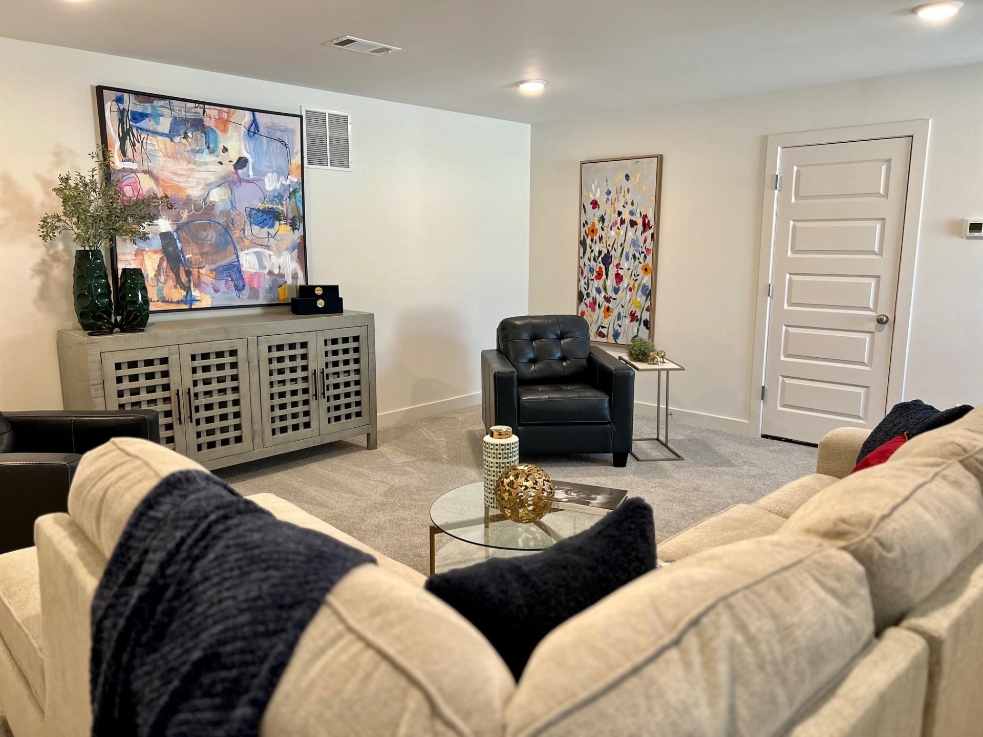 Sloane Floor Plan - Model Home (not for sale)! Executive Series features include 8 ft tall interior door ways downstairs, stained oak tread stairway treads with painted risers, freestanding soaker tub, exclusive King Spa Shower, alley loads have large covered side patio w/ irrigation system included & lawn maintained by HOA. Front/side load garages and large rear covered patios also available. Low Fayette County taxes!