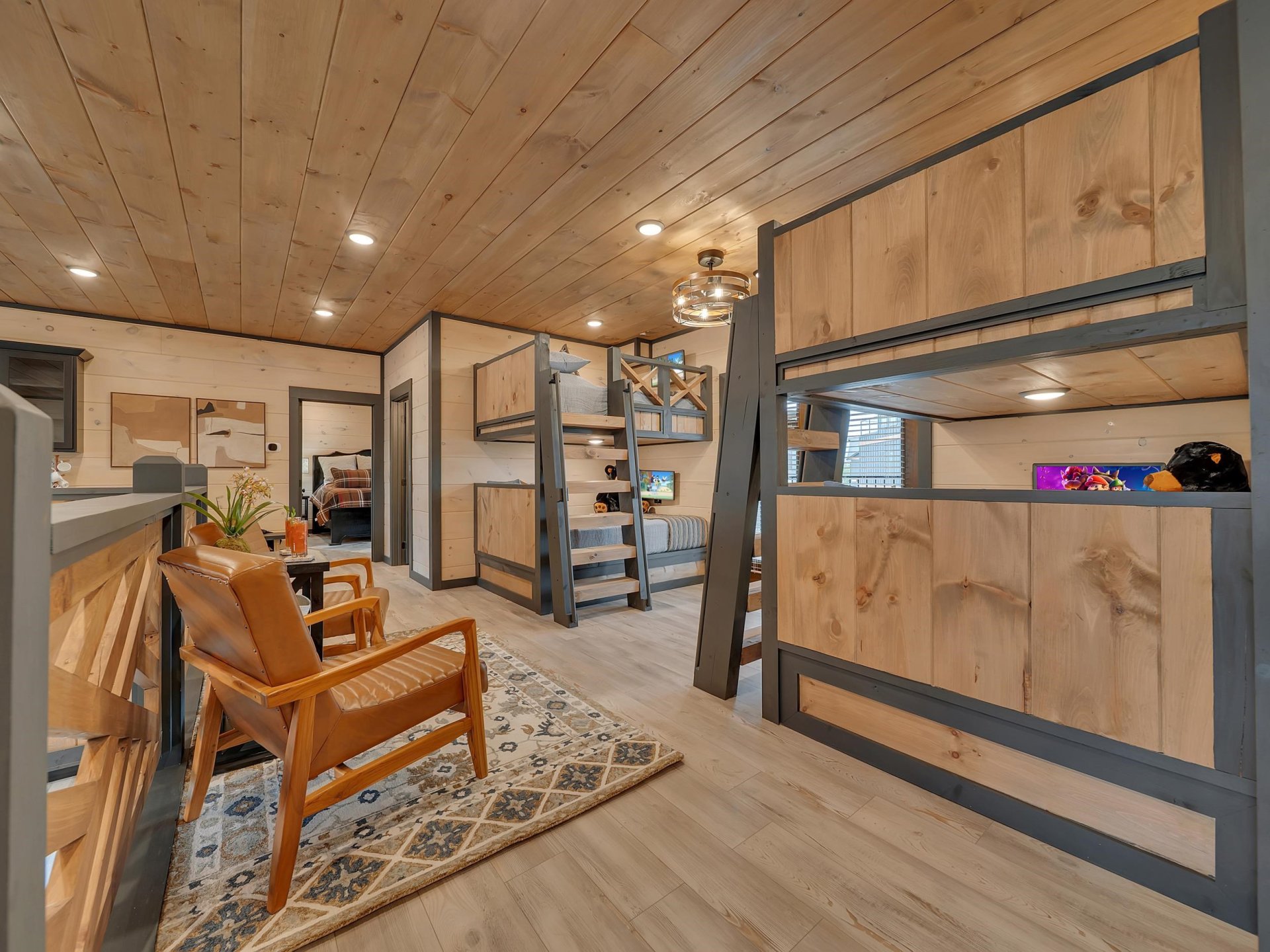 BACK on MKT at NO FAULT of SELLER. Rare opportunity for 8-Bed LUXURY Cabin with guest access to an EXCLUSIVE WATER PARK in a brand-new CABIN COMMUNITY! Schedule your private tour--purchase price of WATERPARK included within CABIN PURCHASE (and NO admission charge to overnight guests!) This property boasts of an 8-BED cabin with a PRIVATE INDOOR POOL (plus access to a waterpark!), a PRIVATE MOVIE THEATER, and GAME ROOM...with contemporary styling and designer finishes. Cabin conveys fully-furnished with a fully-stocked kitchen. Cabin is sprinklered with central fire station alarm-monitored system. NO RESTRICTIONS on self-mgmt or cabin mgmt. Turnkey ready to rent. Designed by professional design team. An ABSOLUTE MUST SEE--located ONLY 1 mile from the Parkway.