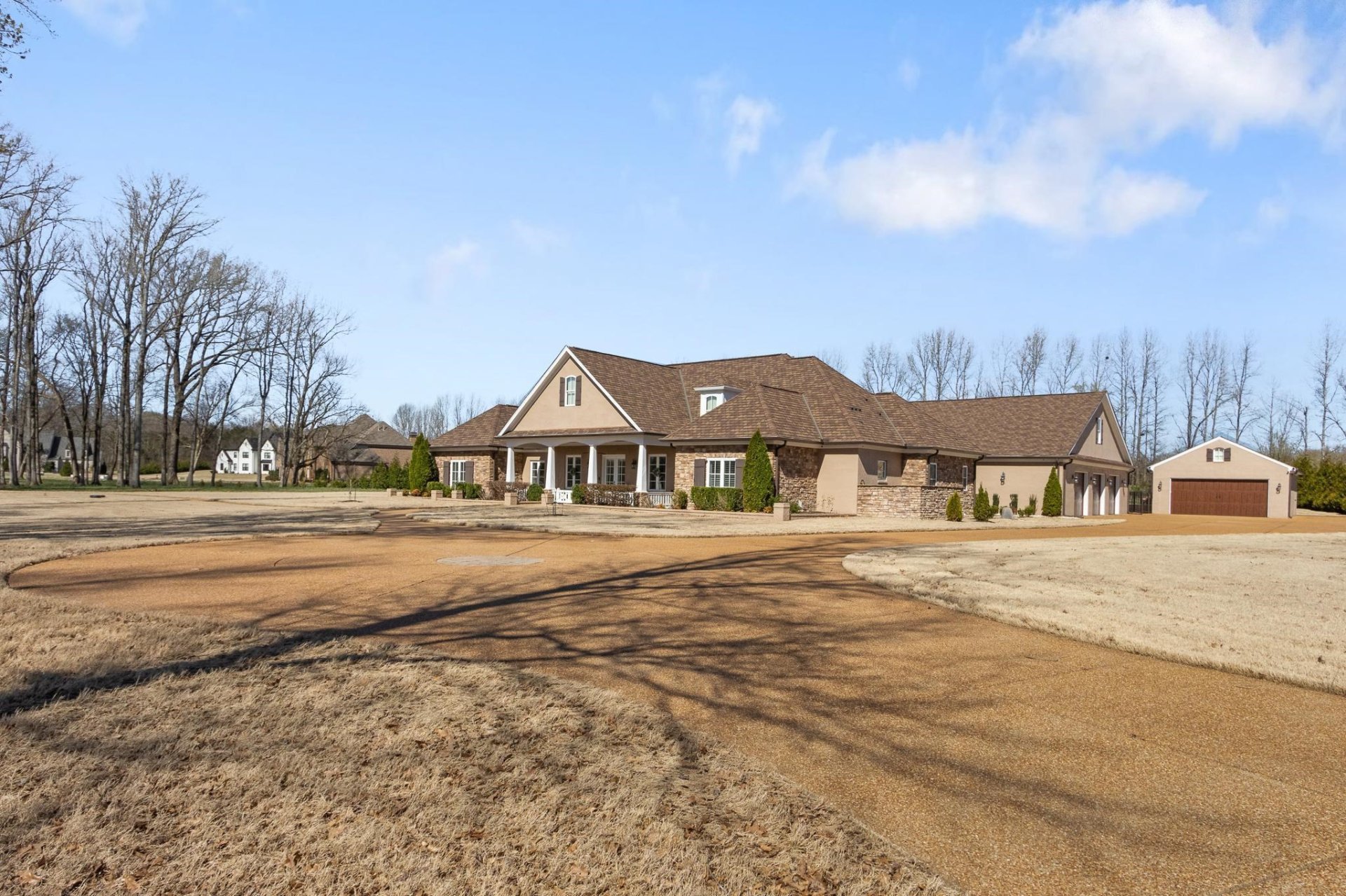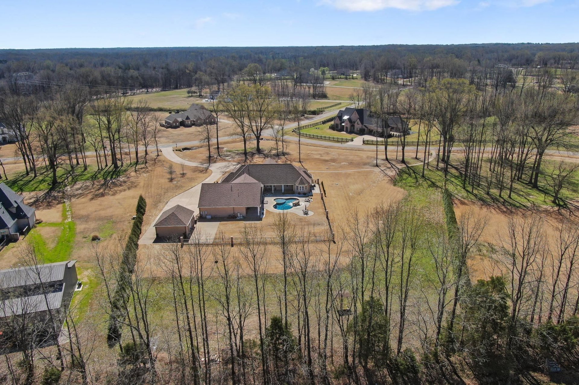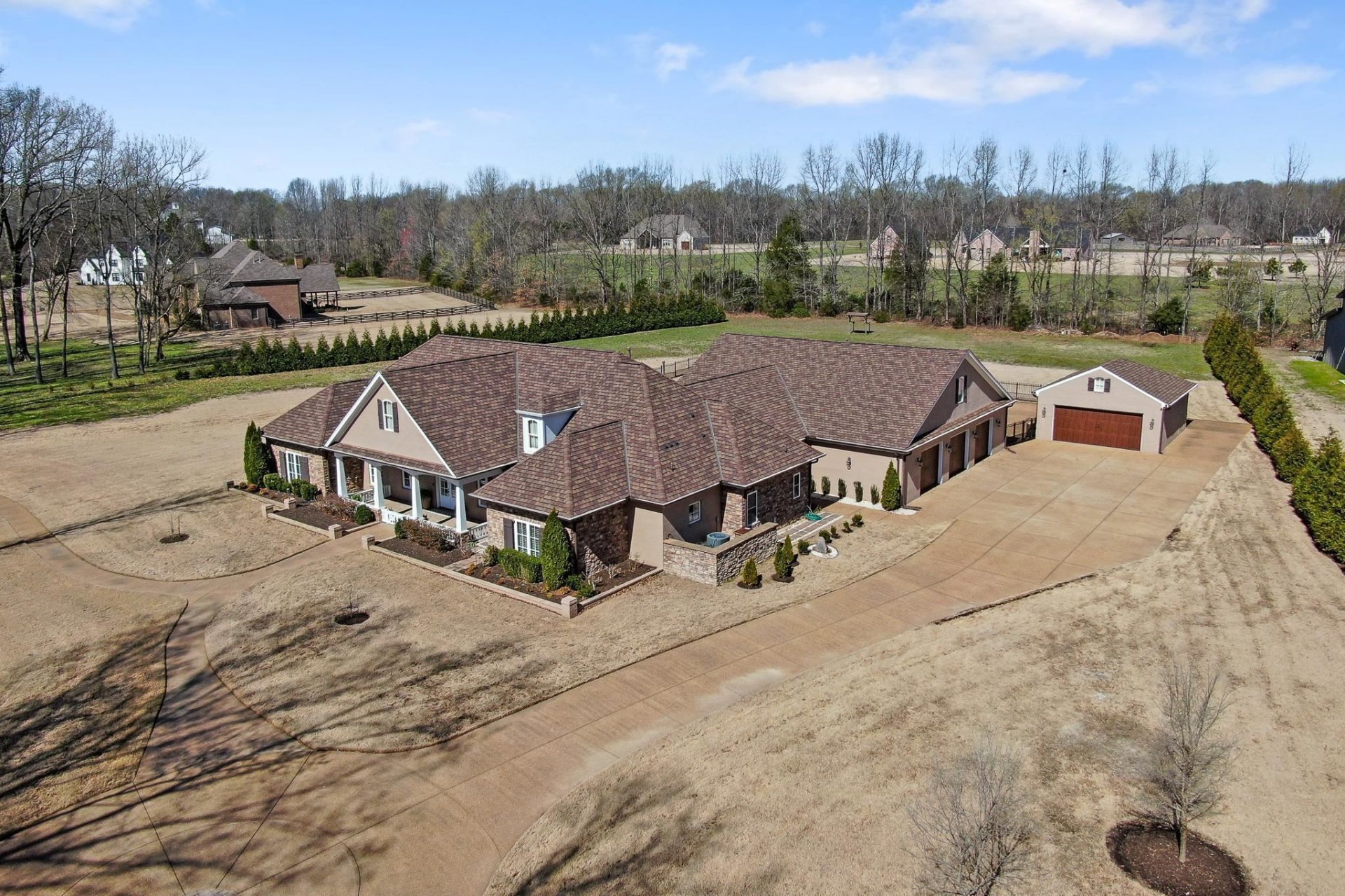 WOW! People's Choice Winner Vesta Homeshow! STUNNING Custom Built 1-Story + "Breath-Taking"GuniteWaterfallPool on 3.5 Acres in Hickory Withe's Ainsley Manor! Classically Designed + Energy Efficient (22KW GENERAC + TechShield 30-YrRf), 10' Ceilings thru-out, Spacious Main House: OPEN SplitFlrPlan, 3BR + Lrg Office/2.5 BA +(36x15)GuestQrtrs/Pool House(1BR, Kit+Bath) MainHome: Gourmet Kit: White Quartz CTops, 5-Eye GasCktop w/Gridl, Walk-in Pantry, SS Dbl/ConvOvens, DrawerMicrowv, 42-in Cabinetry + Glass Front Cabinets, Mosaic Glass/SubwayBkSplsh, Huge GrtRm Built-Ins, UN-REAL 1500sf Covered Patio w/9 patio fans,+Portico Patio Back Entry. Epoxy Flr XL 3-Car Gar(Attic-FlooredExpandable Area above)+ Xtra 2-Car DetWkshp/Gar! StorageGalore,Lux.Primary Suite: AMAZING Closet(11x11)/Luxbuilt-Ins, InvitingSpaBath, FreeStandXLSoakerTub+Designer Tiled Showr. StandOuts: Peaceful Cvrd FrPorch, XLLndryRm+Sink/StrgCabs, Cust Iron-GatedFencing+TreeLinedLndsc, PlantShtrs, PoolStorge/15x5, Hi-TechSecSystm