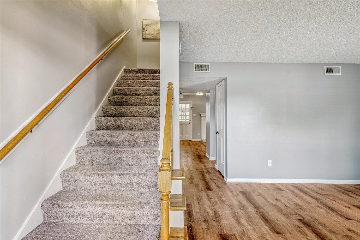 Rare 1,500+ sq.ft., 2 bedroom, 2 1/2 bath condo in Bavarian Village! Enjoy peace of mind & low-maintenance living in the heart of Germantown, TN - just steps from The Shops of Saddle Creek & so much more. Move-in ready home w/more than $16k in recent updates (LVP on 1st floor, carpet & windows on 2nd floor, Kitchen appliances). Traditional yet flexible plan offers spacious hearth room with fireplace, kitchen w/laundry hook-ups, a half bath & living rm on the main level. Upstairs find the primary bedroom with walk-in closet & ensuite bath plus a guest bedroom with 2 walk-in closets & private full bath. Outside, enjoy a private patio with storage closets & a 2 car carport. Community amenities include pool, & clubhouse. Prime location convenient to everything you'll want or need with quick access to Poplar Ave, Wolf River Blvd & I-240. This unit was originally a 3BDR/2.5BA unit. New owner can convert the guest bedroom back in to 2 bedrooms creating a 3 bedroom layout.