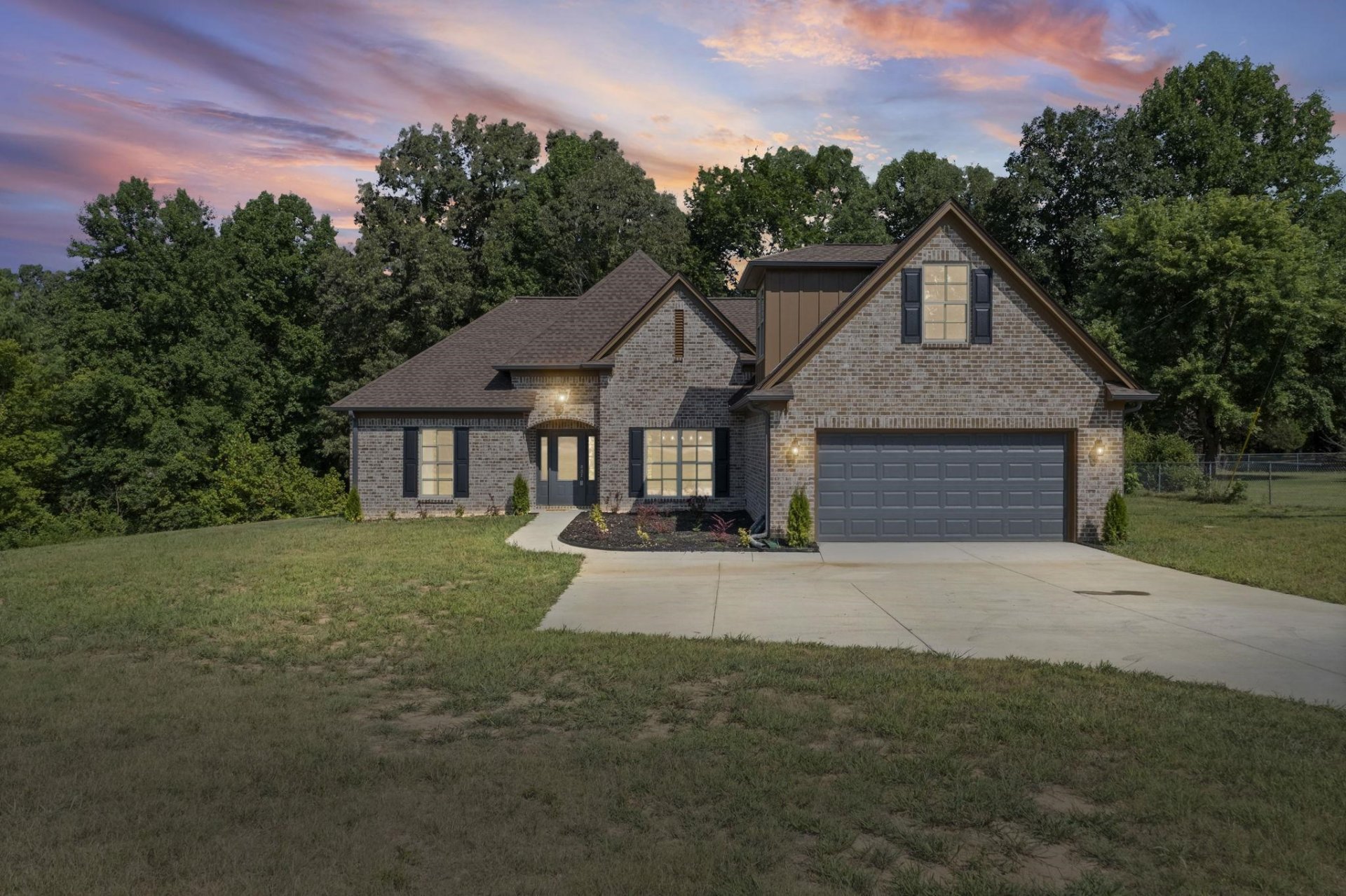 SELLER OFFERING $10,000 TOWARDS BUYER CLOSING COSTS WITH FULL PRICE OFFER! Brand-new construction in Tipton County, just minutes from Brighton and no city taxes! Sitting on 1.3 acres with shared pond access, this 3 BR, 2 BA home has the space and features you’ve been looking for. The split bedroom layout gives privacy with the primary suite on one side and 2 bedrooms + guest bath on the other. Upstairs bonus room is perfect for an office, playroom, or media space. Enjoy both a great room and a hearth room—each with its own cozy fireplace! The primary retreat offers a spa-like bath with a garden tub, king spa shower, double granite vanities, and a huge walk-in closet.
