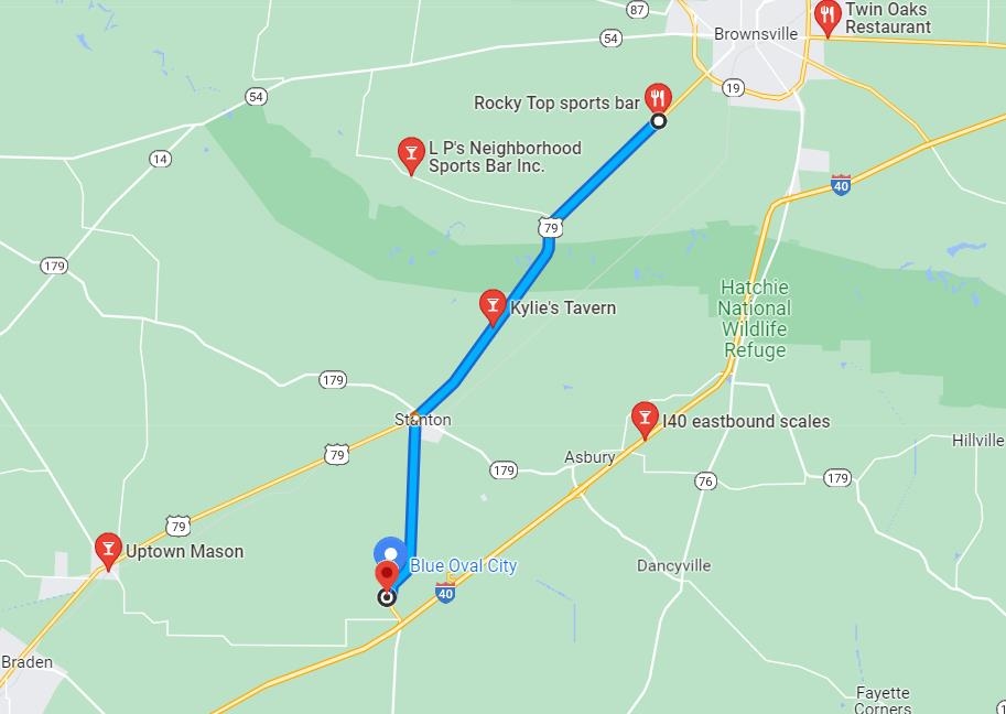 | Directions | Take Exit 56 off I-40 towards Brownsville, left on TN-19, then left on Highway 70. |