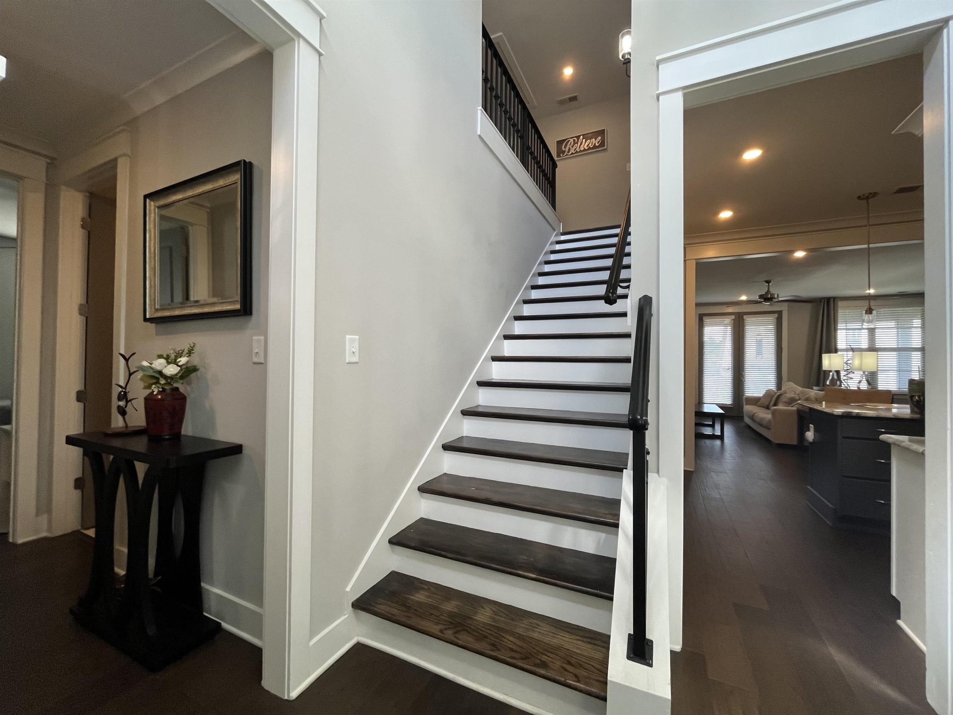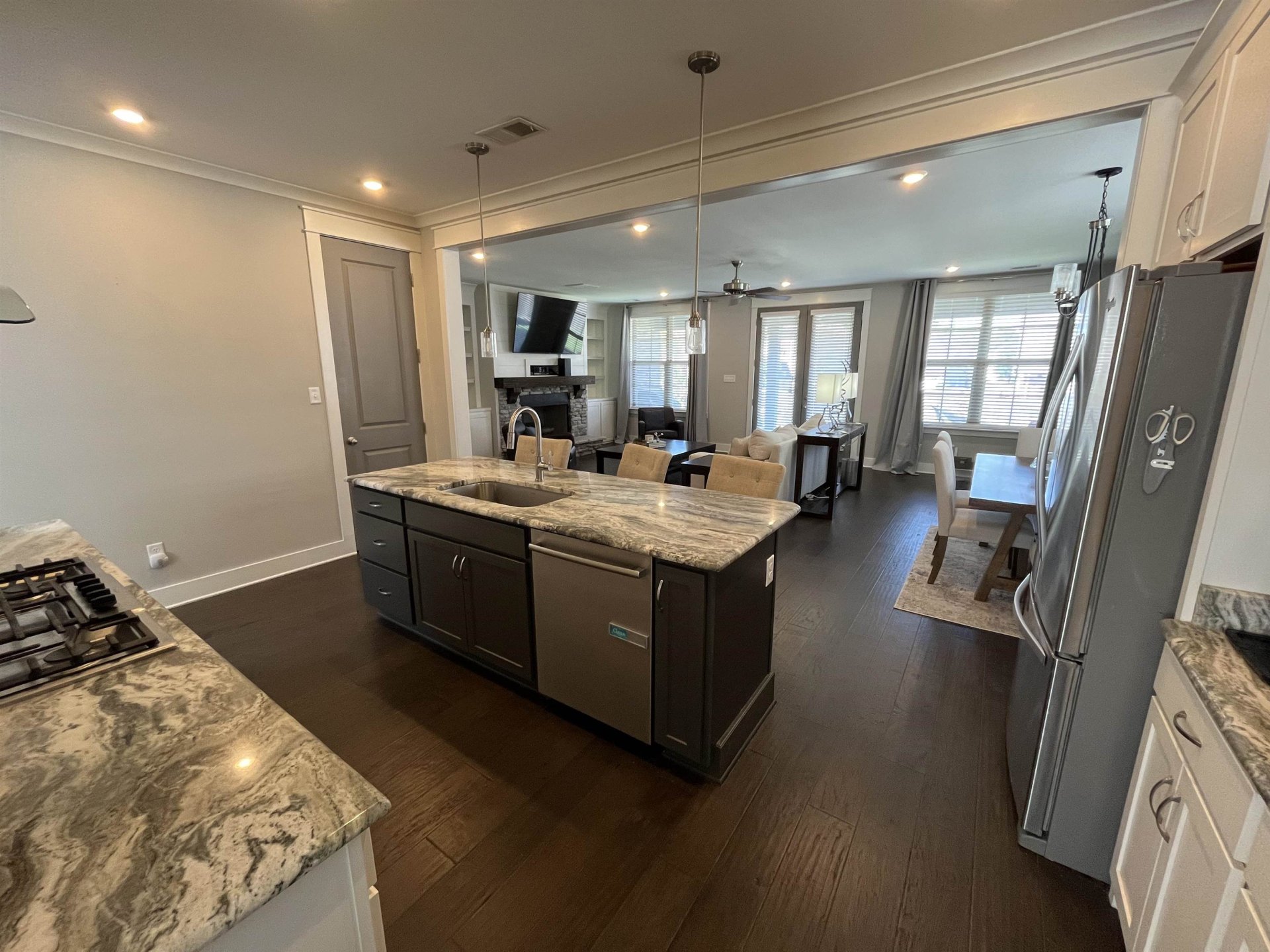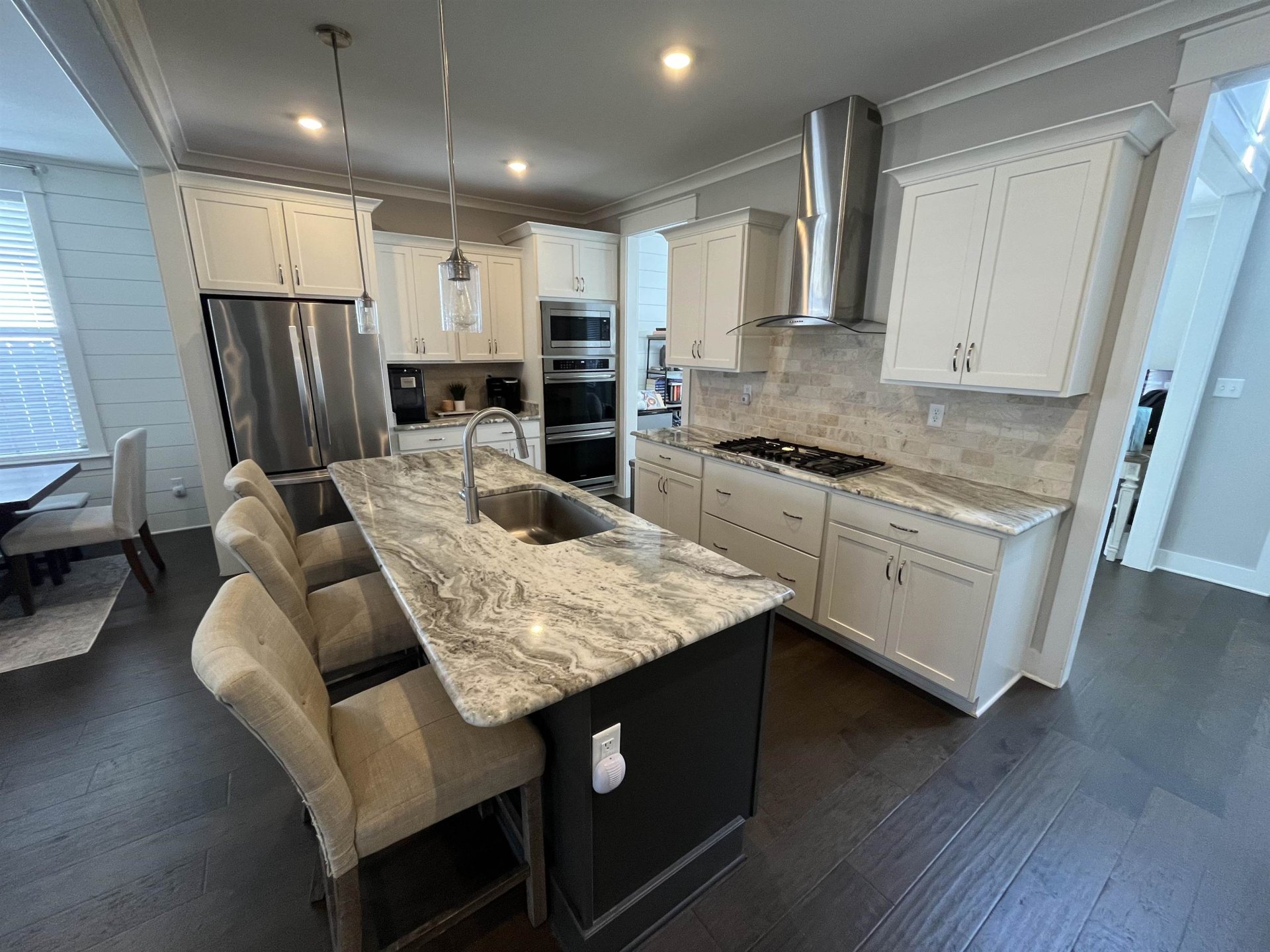 This modern two-story home has four cozy bedrooms and three full bathrooms. Large primary with a vaulted ceiling. Full attached bathroom that feeds right into the primary closet. The closet then feeds directly into the laundry room. Upstairs is a loft, and two bedrooms sharing a Jack and Jill bathroom. Downstairs, there’s a comfy guest bedroom that could be used as an office space. The real star is the open living area, where a modern kitchen with sleek appliances spills right into a bright, spacious living room and attached dining area. There's additionally a separate conventional dining room located directly to the right of the entrance.