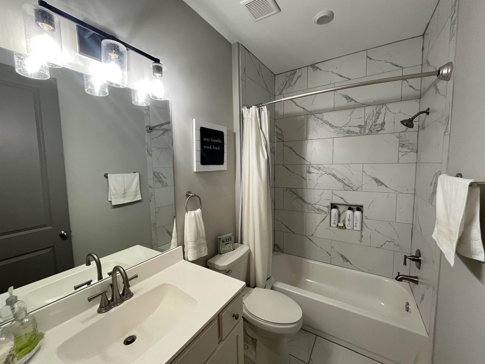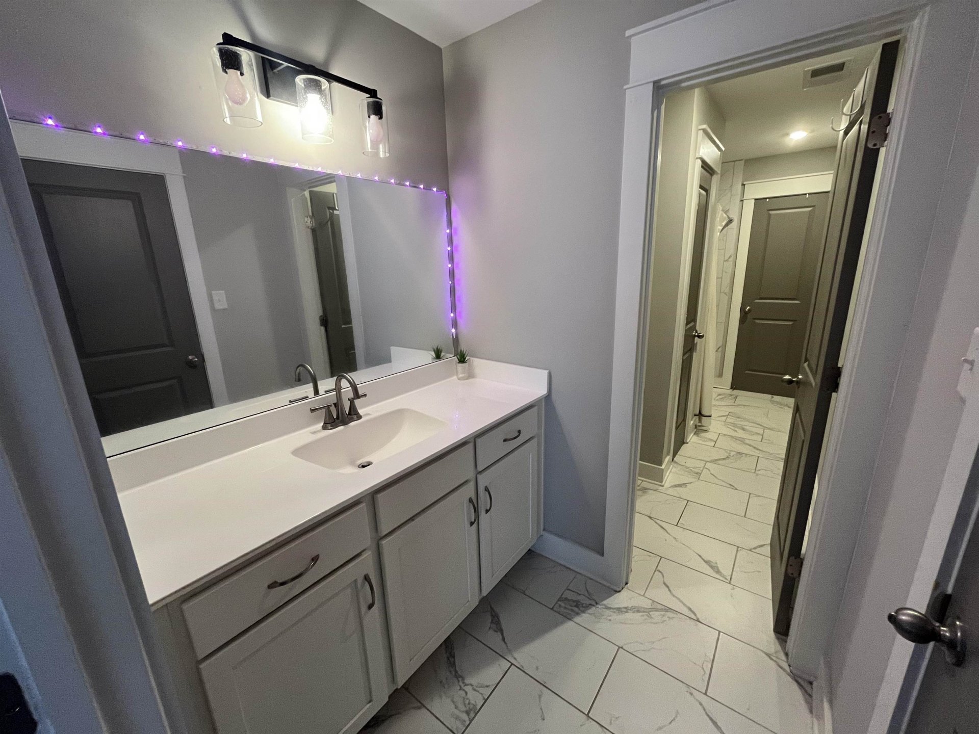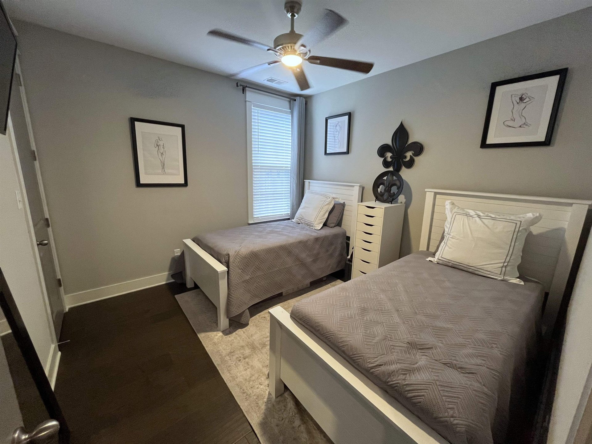 This modern two-story home has four cozy bedrooms and three full bathrooms. Large primary with a vaulted ceiling. Full attached bathroom that feeds right into the primary closet. The closet then feeds directly into the laundry room. Upstairs is a loft, and two bedrooms sharing a Jack and Jill bathroom. Downstairs, there’s a comfy guest bedroom that could be used as an office space. The real star is the open living area, where a modern kitchen with sleek appliances spills right into a bright, spacious living room and attached dining area. There's additionally a separate conventional dining room located directly to the right of the entrance.