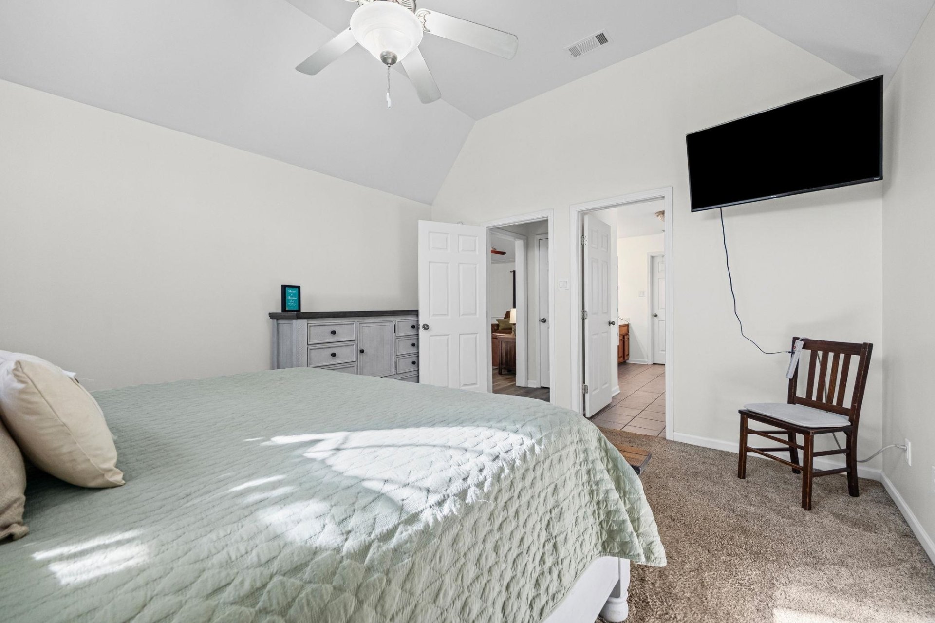 | Flooring | Part Carpet, Tile, Vinyl/Luxury Vinyl Floor, Smooth Ceiling, 9 or more Ft. Ceiling, Vaulted/Coff/Tray Ceiling |