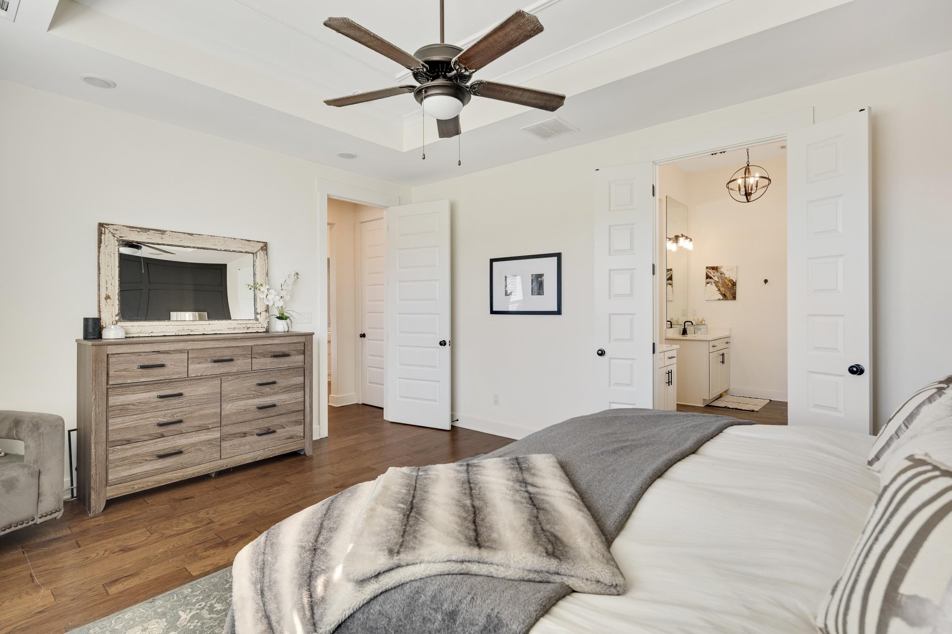 Beautiful maintained Arlington Home! Hardwood throughout downstairs complimented by Quartz Countertops in kitchen and main bathroom as well as Granite countertops in secondary bathrooms! Stained oak treads, kitchen with large island, farmhouse sink, gas cooktop, vent-a-hood, and double oven. Mudroom cubbies at garage entry. Dining room or study with French doors with added built-ins. Sitting Room by entry includes added built-ins as-well. Notably includes a fenced-in backyard! Double walk in closets in main suite. extended screened in rear porch. Homes backs up to open green space. Also upstairs projector in Bonus room included. Arlington School District.