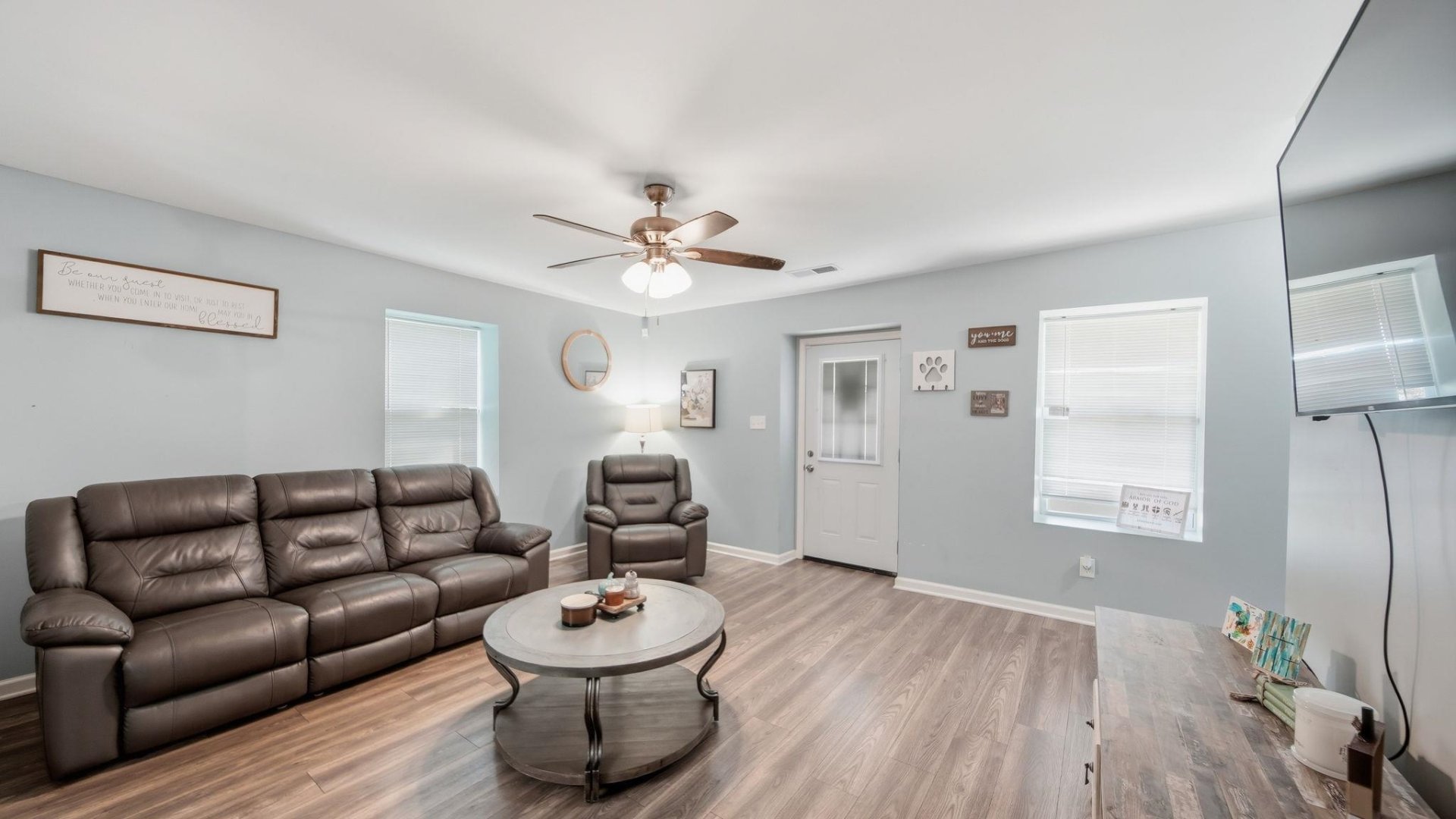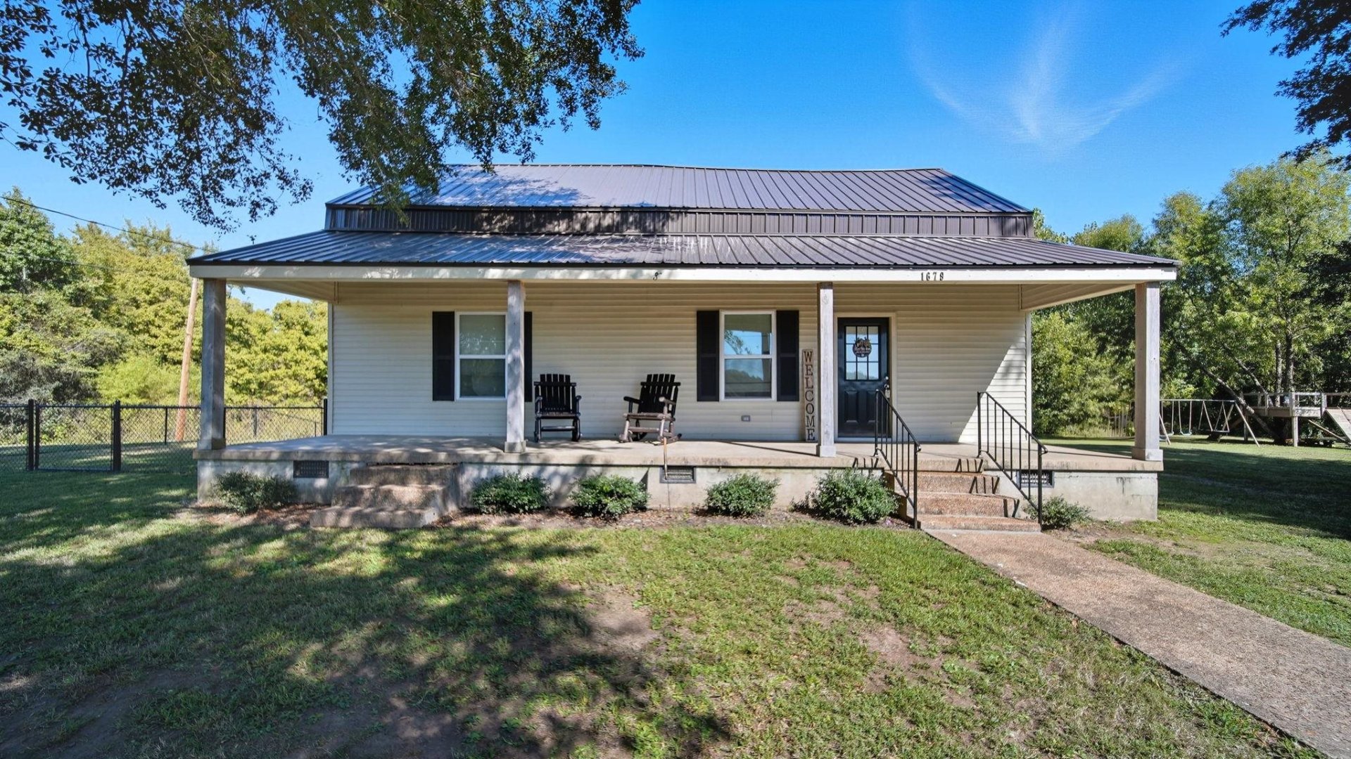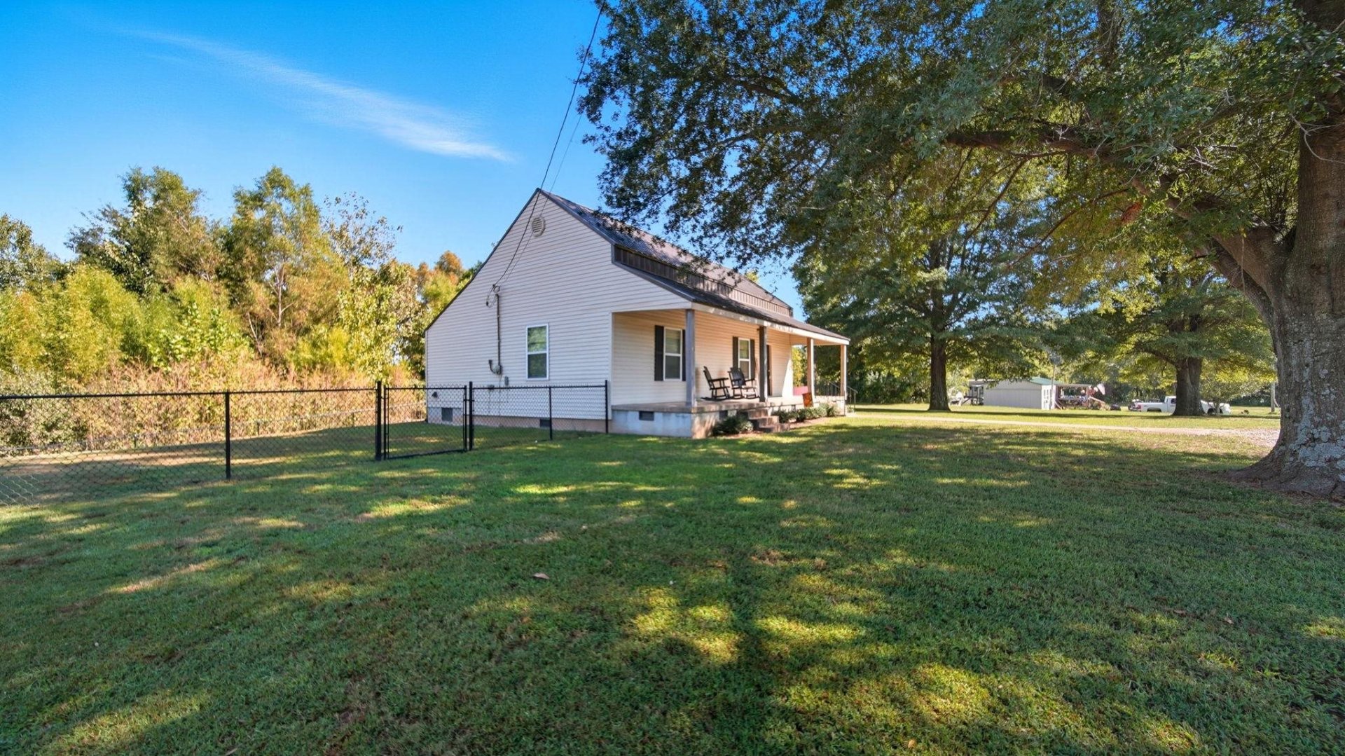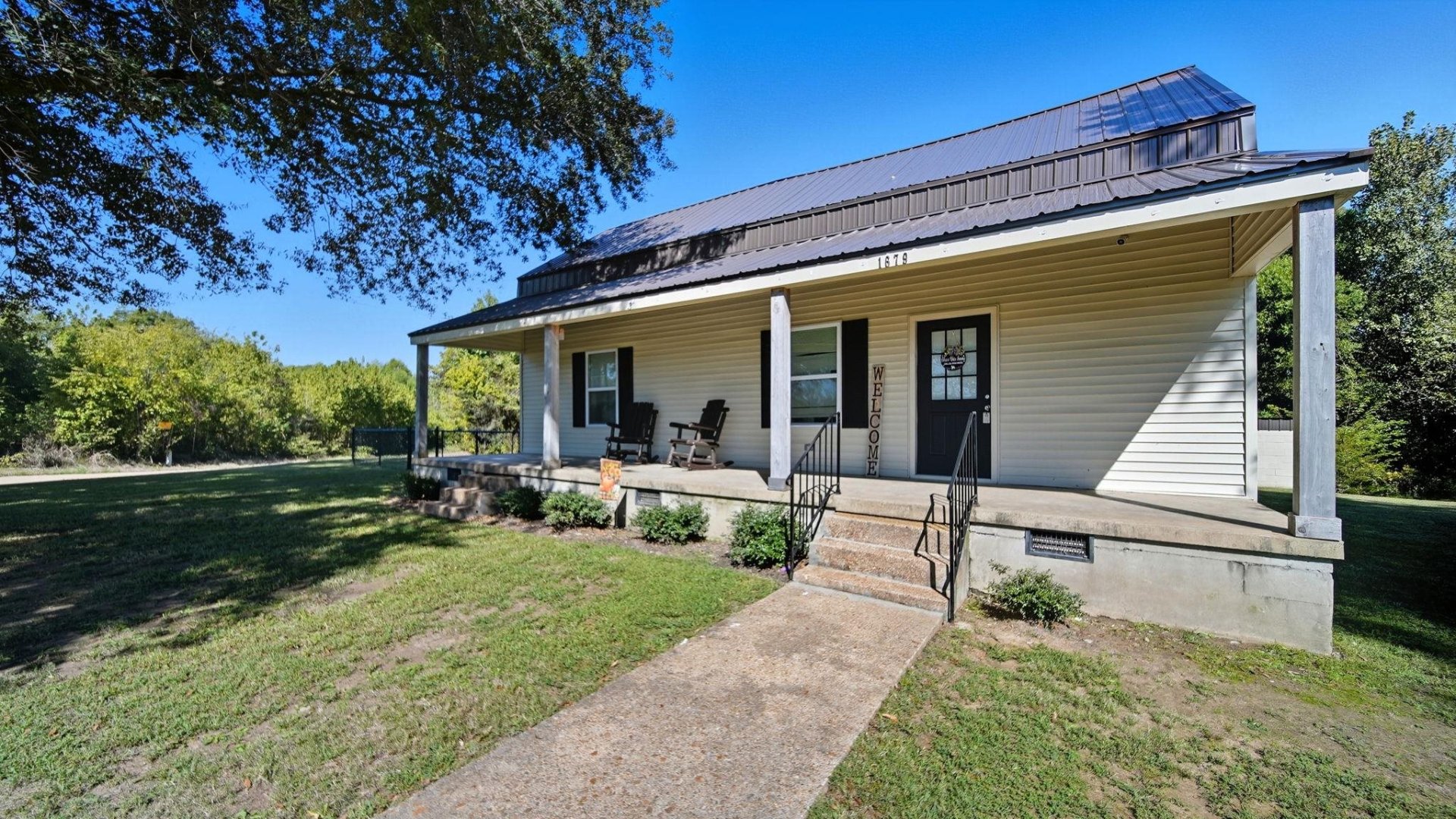 Updated 2BR/2BA Country Home on 2 Acres – Move-In Ready! Renovated single-family home in a peaceful country setting on 2 private acres. Features include a phenomenal covered front porch, vinyl plank flooring throughout (no carpet), galley kitchen with granite countertops, and all appliances remain—including washer and dryer. Two full baths, spacious deck, fenced area, and a charming tree house. Additional outbuilding provides storage or workspace. Metal roof for durability. Enjoy quiet country living with modern updates and ample outdoor space.Updated 2BR/2BA Country Home on 2 Acres – Move-In Ready
