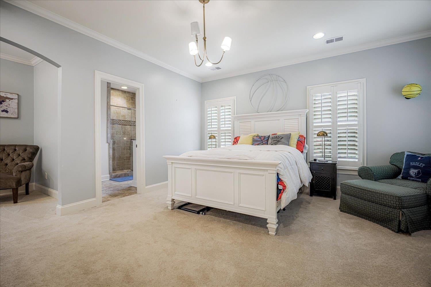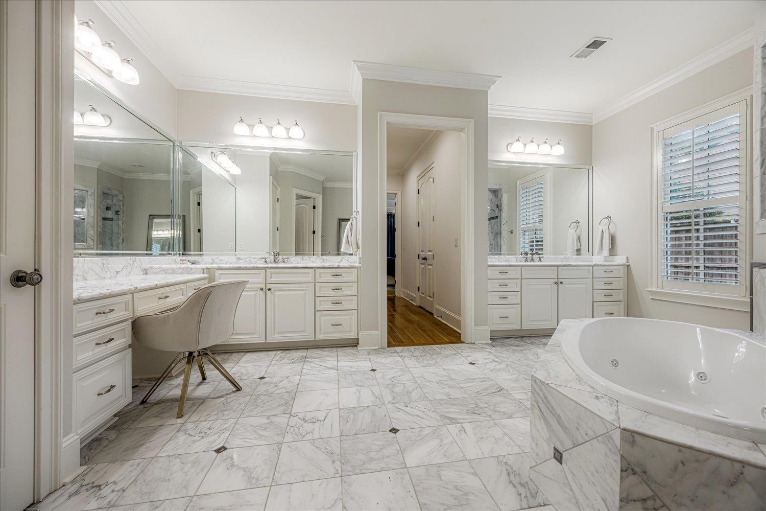 Gorgeous property on a quiet cul-de-sac featuring four en suite bedrooms, each with walk-in closets. Enjoy the convenience of primary suites and laundry rooms on both levels. The updated kitchen boasts quartz countertops and opens to spacious living areas with high ceilings. Relax on the screened porch or gather in the media room or bonus room—perfect for entertaining or family fun. Super useful extra room that can be used for a variety of reasons, such as gift wrapping, sewing, or children's study. A three-car garage completes this thoughtfully designed and meticulously maintained home that blends comfort, style, and functionality.