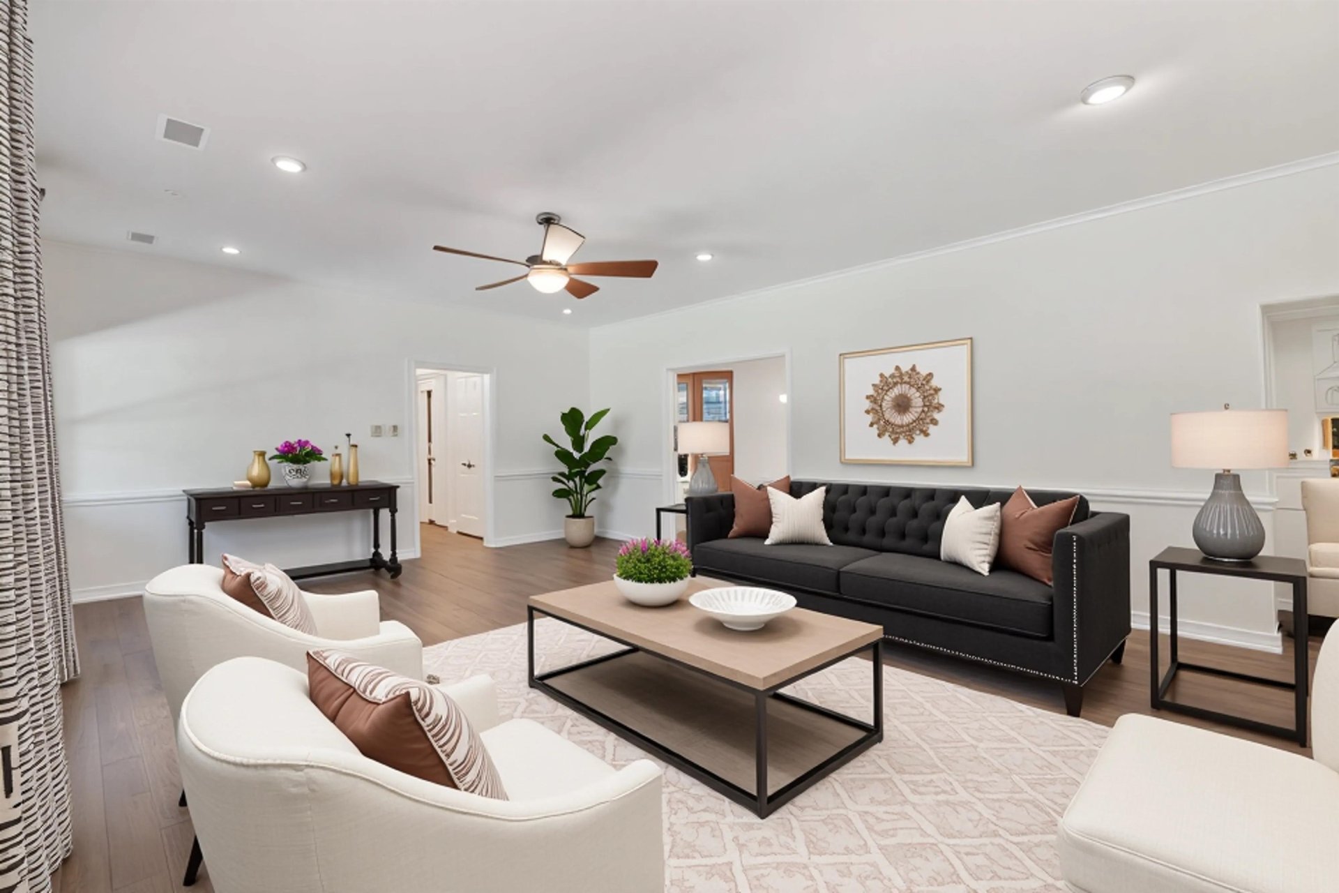 | Flooring | Part Hardwood, Part Carpet, Tile, Smooth Ceiling, 9 or more Ft. Ceiling, Vaulted/Coff/Tray Ceiling, Two Story Foyer, Other (See REMARKS) |