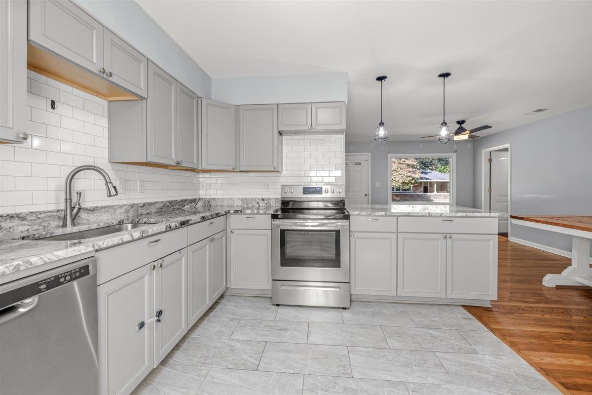 Beautiful remodeled 3 bedroom/2 baths home in Munford TN. Step inside a bright living area which flows into the breakfast and kitchen spaces. The kitchen features ample cabinetry and workspace, granite counter tops, appliances included: dishwasher, refrigerator, stove (option for gas or electric). No carpet, hardwood floors, tile, new vinyl plank flooring, smooth ceilings, new industrial style light fixtures, built-in shelves. The breakfast area features built-in bench that opens for additional storage. Covered patio with Large fenced backyard and two storage buildings. Convenient location within walking distance to stores in the township. Make your appointments today. Assumable VA loan at a fantastic interest rate of 3.5%. Call your real estate professional today!
