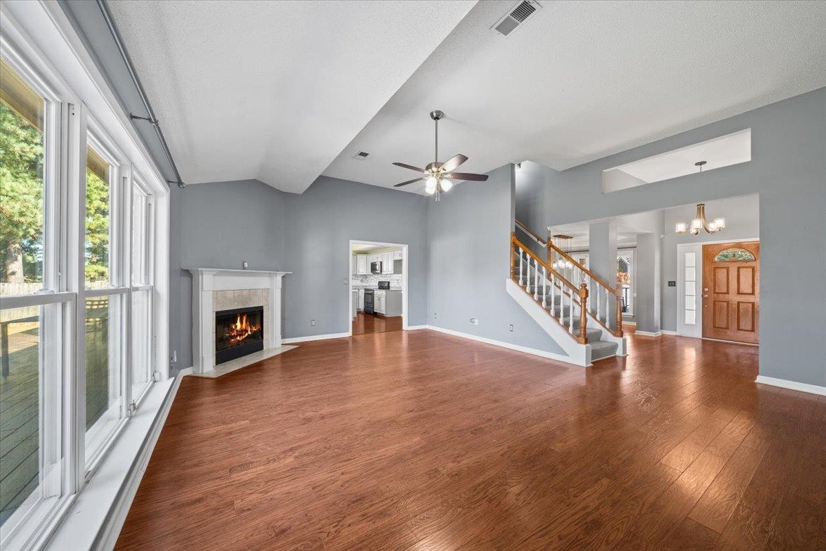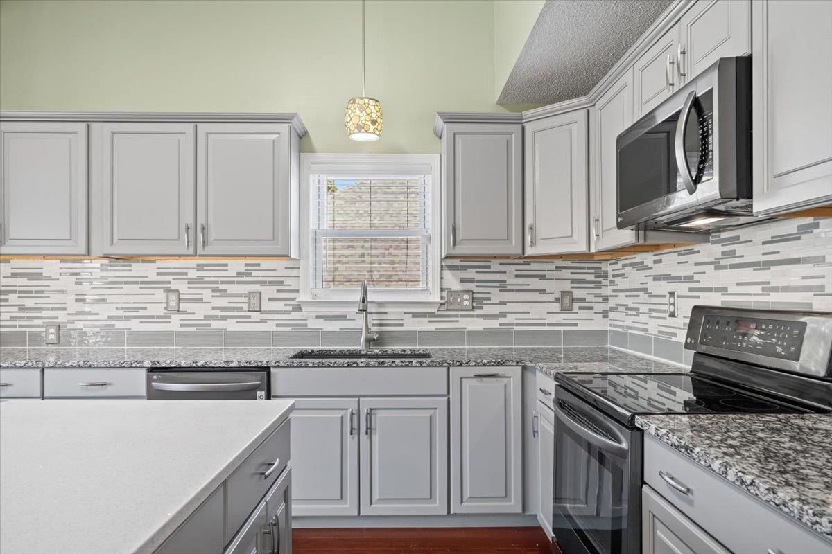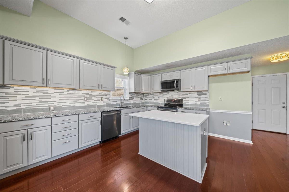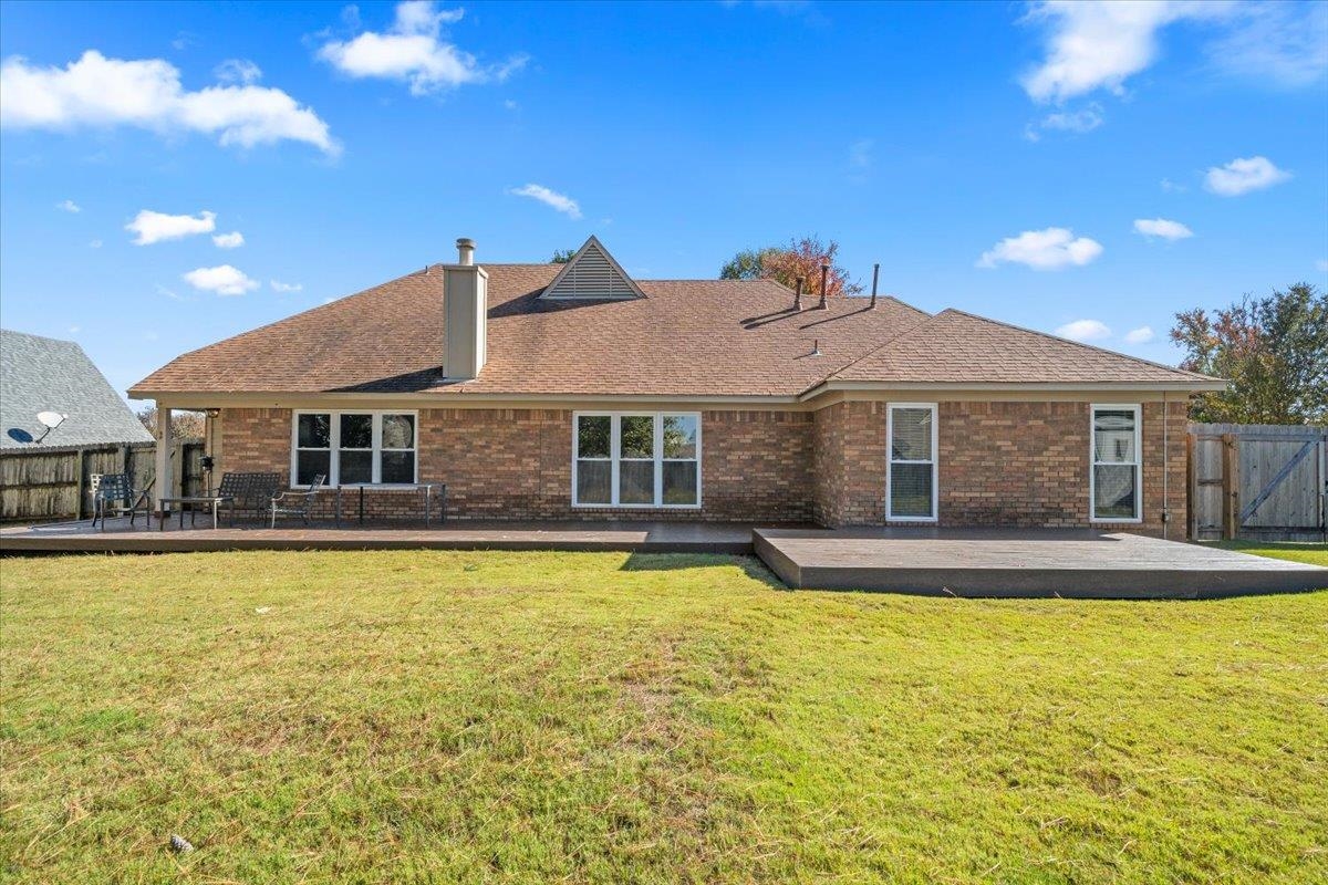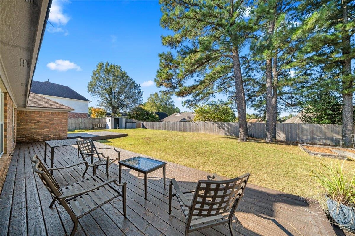 Motivated Seller! Welcome to this beautifully updated 4-bedroom, 3-bath home tucked away in a quiet cove just .25 miles from the neighborhood elementary school. The inviting front porch sets the tone for relaxed mornings and friendly gatherings. Inside, enjoy a desirable split floor plan with three bedrooms on the main level, a private bedroom upstairs, and a flexible bonus space that could be a 5th bedroom. The standout kitchen features custom cabinetry, black stainless steel appliances, generous granite countertops, and a quartz-topped island—perfect for cooking and entertaining. Updated bathrooms offer fresh, modern style throughout. Step outside to a fully fenced backyard with a low-maintenance Trex-style deck, storage shed, and charming blueberry bushes. Recent upgrades include vinyl windows and new HVAC systems. Conveniently located and move-in ready!