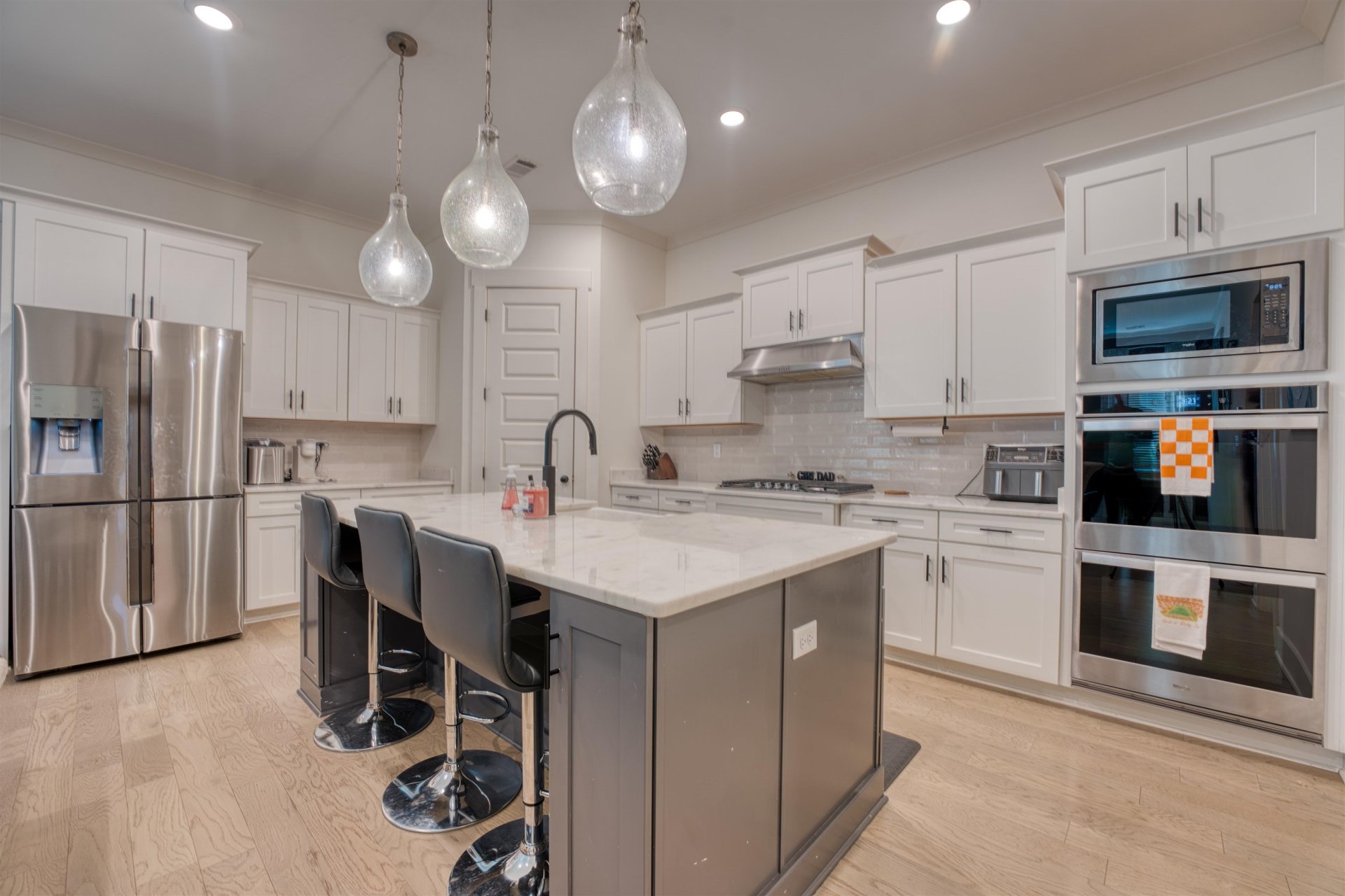 UPDATED PRICE!! Nestled in the highly sought-after Myers Park community, this beautiful home offers an open floor plan designed for both comfort and style. The spacious kitchen features granite countertops, a five-burner gas cooktop, double ovens, and a built-in microwave—perfect for cooking and entertaining. Upstairs, a large bonus room provides flexible space for a media room, playroom, or home office. The luxurious primary suite includes a King spa shower for ultimate relaxation. Elegant details like stained oak treads add a touch of sophistication. Step outside to a large covered patio, ideal for outdoor gatherings, with an irrigation system to keep the landscaped lawn looking pristine—maintenance handled by the HOA. Enjoy the neighborhood pool and the convenience of being in the highly rated Arlington City Schools district, making this home the perfect blend of luxury and lifestyle.