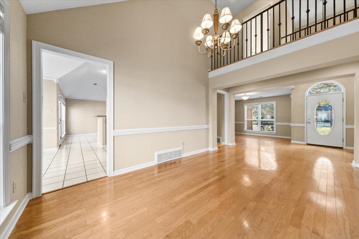 Enjoy the perfect blend of comfort and style in this beautiful all-brick home overlooking both the golf course and lake. With fresh interior and exterior paint, this home feels like new and offers timeless appeal in a stunning setting. The spacious primary suite on the main level provides convenience and privacy, while three large bedrooms upstairs offer flexibility for family, guests, or a home office. You’ll love the gleaming hardwood floors throughout the main level, tile in wet areas, and new carpet on the stairs and upstairs. The kitchen features a new microwave and opens to bright, sunlit living spaces that frame the beautiful outdoor views. Whether you’re sipping coffee while watching golfers or enjoying sunsets over the water, this home is designed for peaceful, easy living. Newly Painted large deck on back of home for great cookouts. Seller to have brand new roof installed at closing.