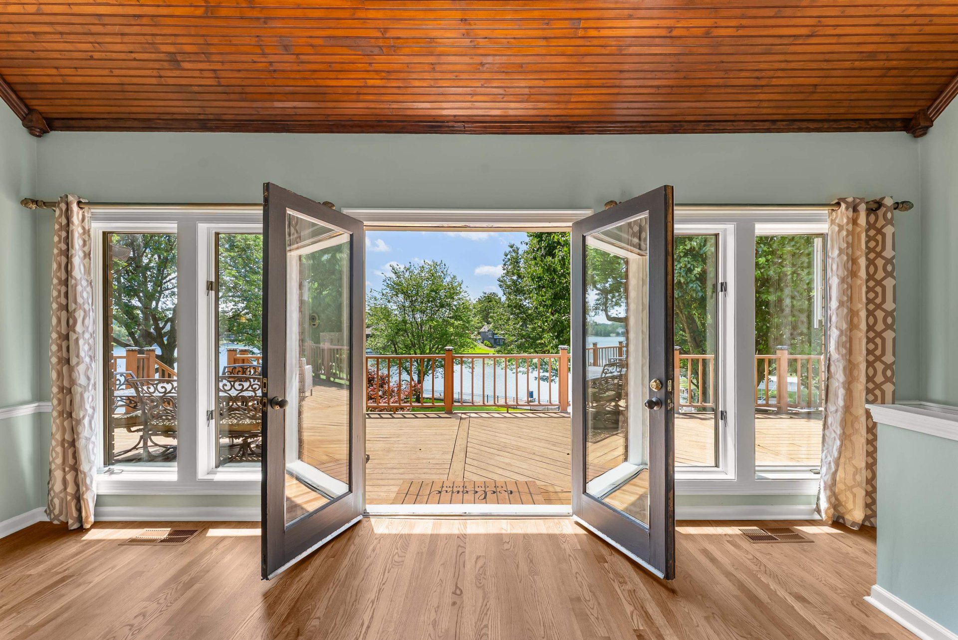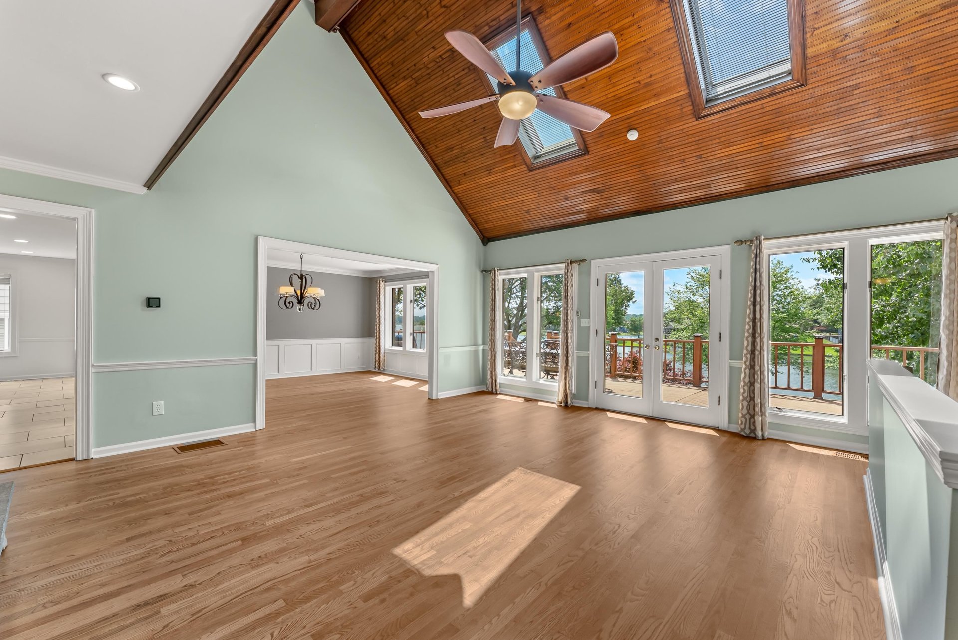 Escape to lakeside living on Garner Lake! With $140K+ in updates, this stunning 5 bed, 3.5 bath home offers unbeatable lake views from nearly every room on a beautifully landscaped 0.48-acre lot. The remodeled kitchen features updated soft-close cabinets, new hardware, backsplash, and a drink fridge. Refinished hardwoods flow through the vaulted great room with skylights and a grand stone fireplace. The main-level primary suite is a true retreat with lake views, its own fireplace, and a spa-worthy bath with soaking tub, expanded body-spray shower, new vanity, quartz counters, lighting, and flooring. The walk-out lower level includes a guest suite and sauna. Upstairs offers 3 bedrooms, a home office, and an updated full bath with new tub, tile surround, and flooring. Outside, enjoy a large yard, multiple entertaining areas, and an extended dock that spans the width of the lot. Located in a vibrant lake community, this home blends luxury, comfort, and the ultimate lakefront lifestyle!