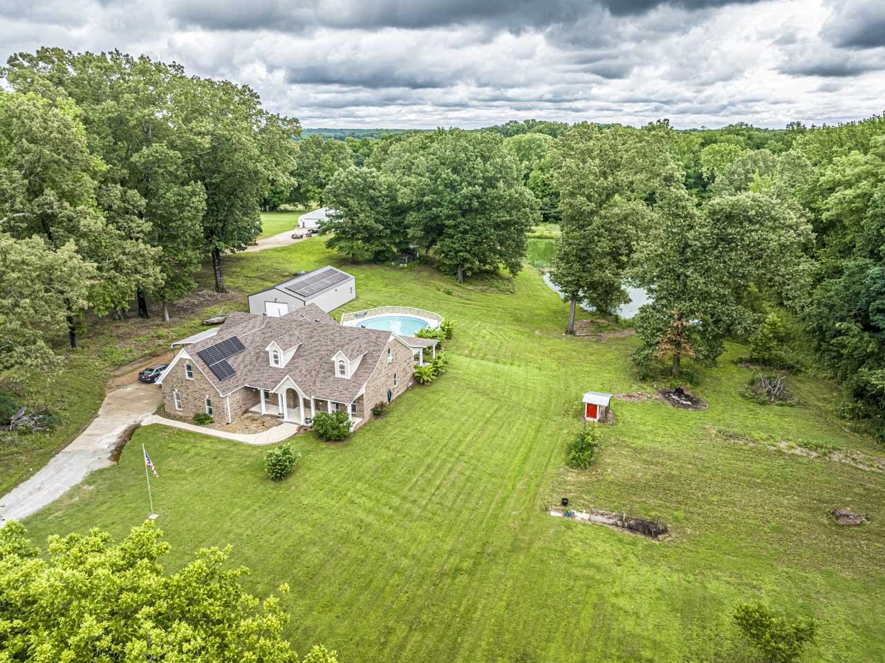 This one is ready for you just in time for the holidays! 10 acres nestled on a dead end street, its own fruit orchard, over 3300 heated sq ft, 5 bedroom, 3 full baths, 30x50 workshop, pond with/it own fountain, a smoke house, front porch& huge rear porch &deck around pool- perfect for entertaining! Split floor plan, great room has stone fireplace with/ gas logs, tankless hot water, solar panel system which keeps utility bill at a minimum year round, tinted windows in front of home, just minutes from Munford/Atoka area with schools, restaurants, cinema and grocery stores! This one has space yet conveniently located. Call now!