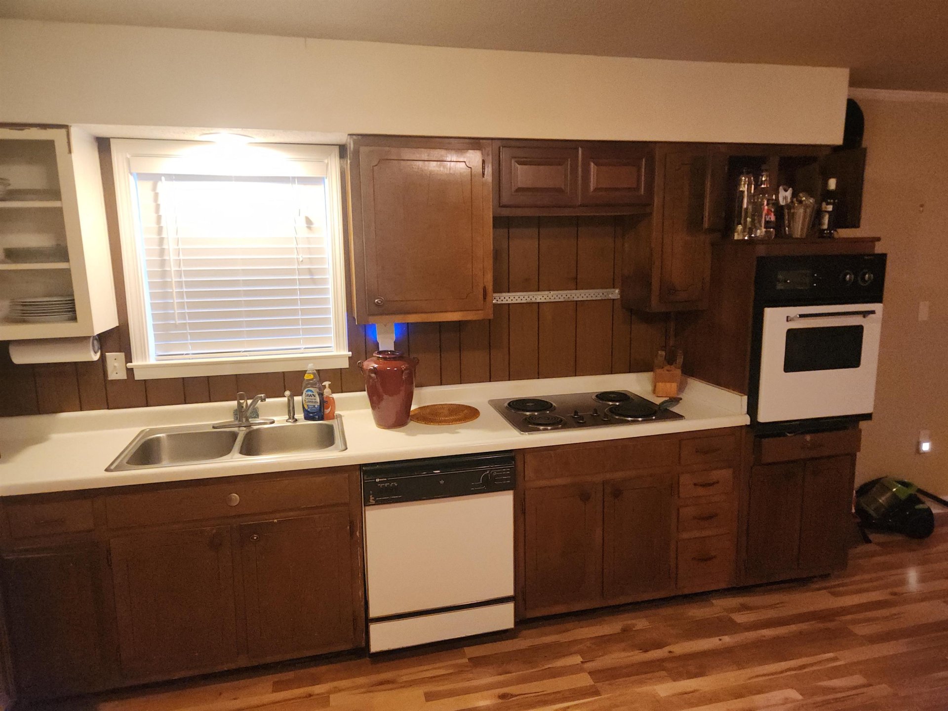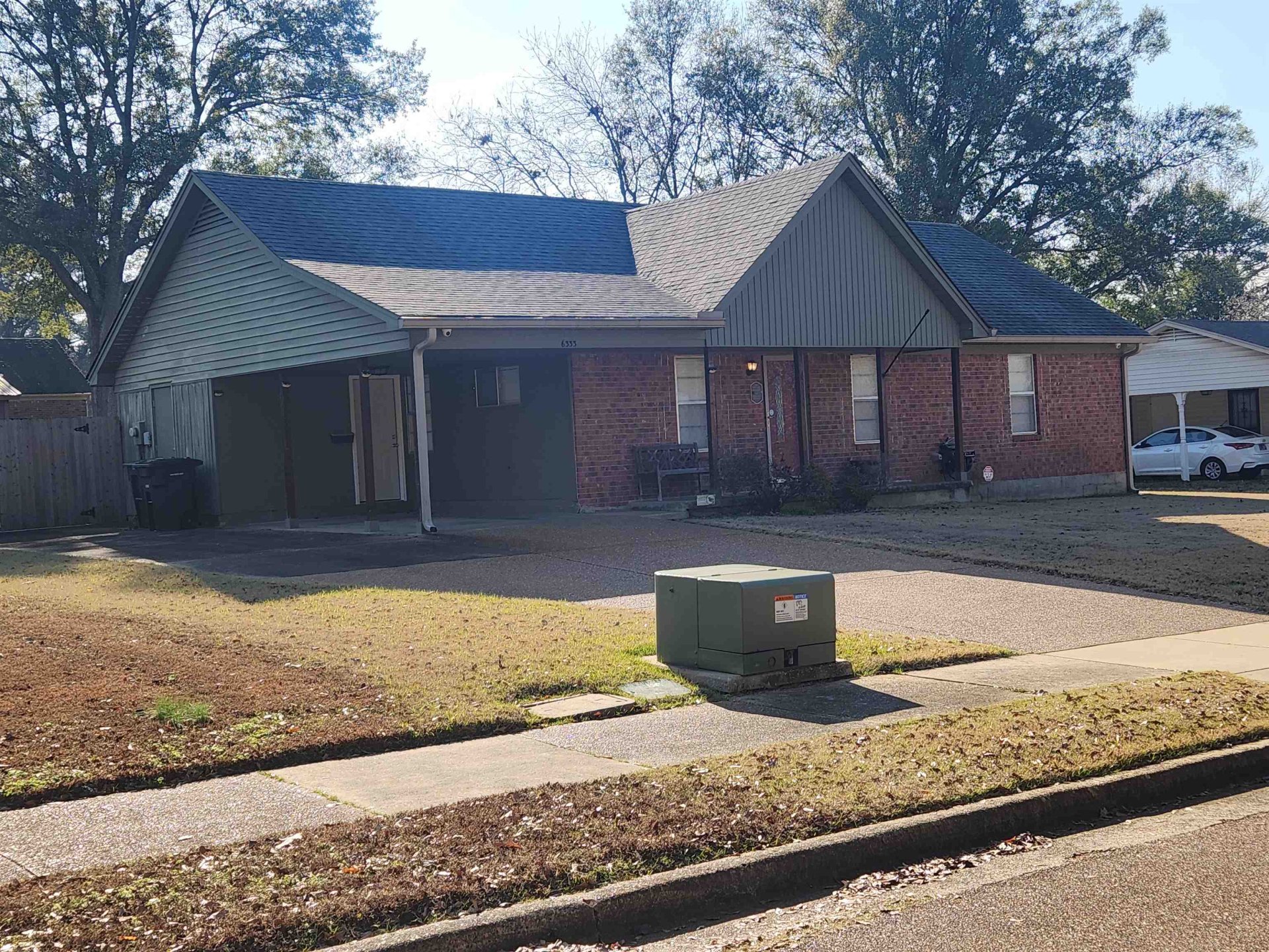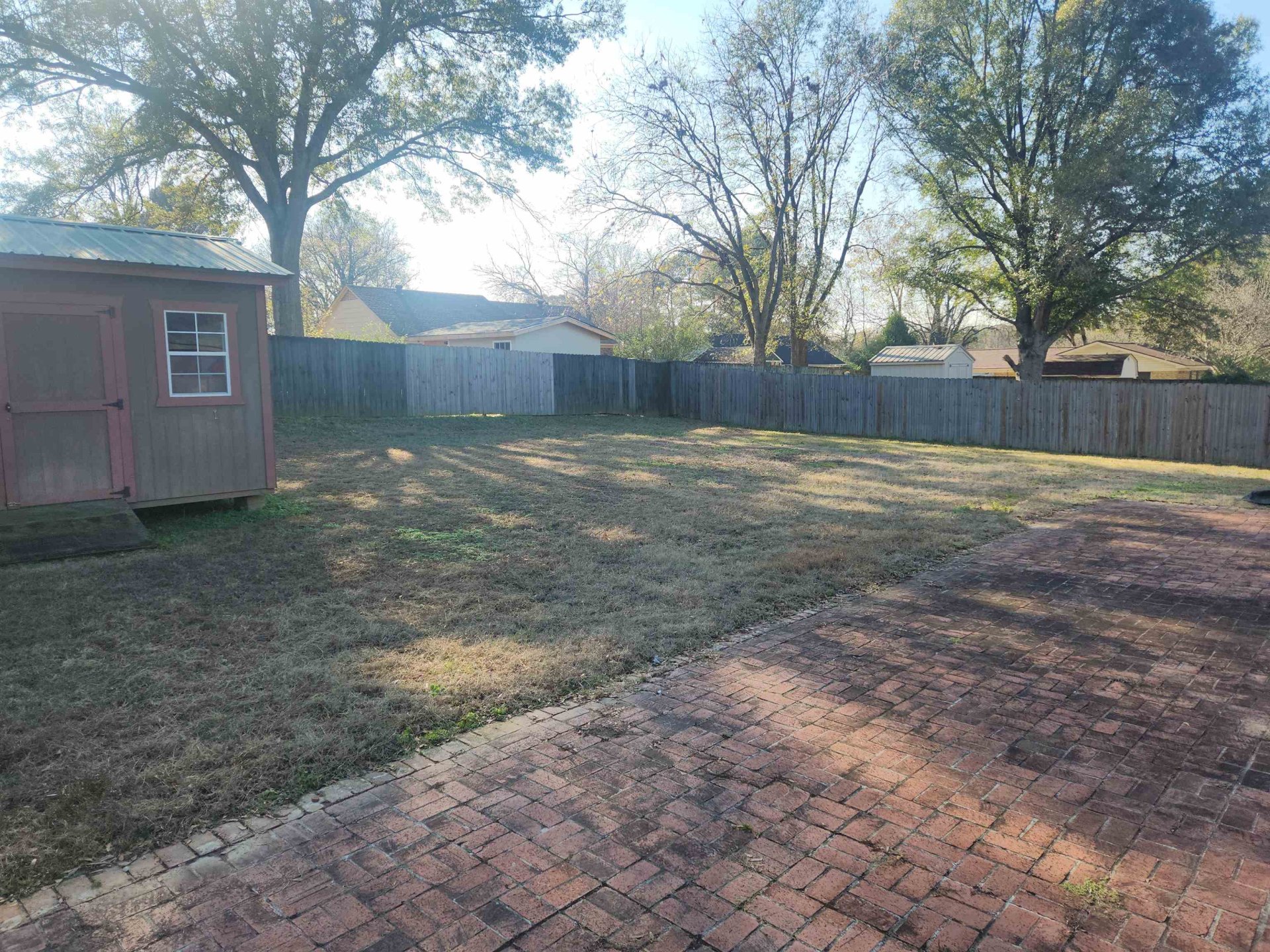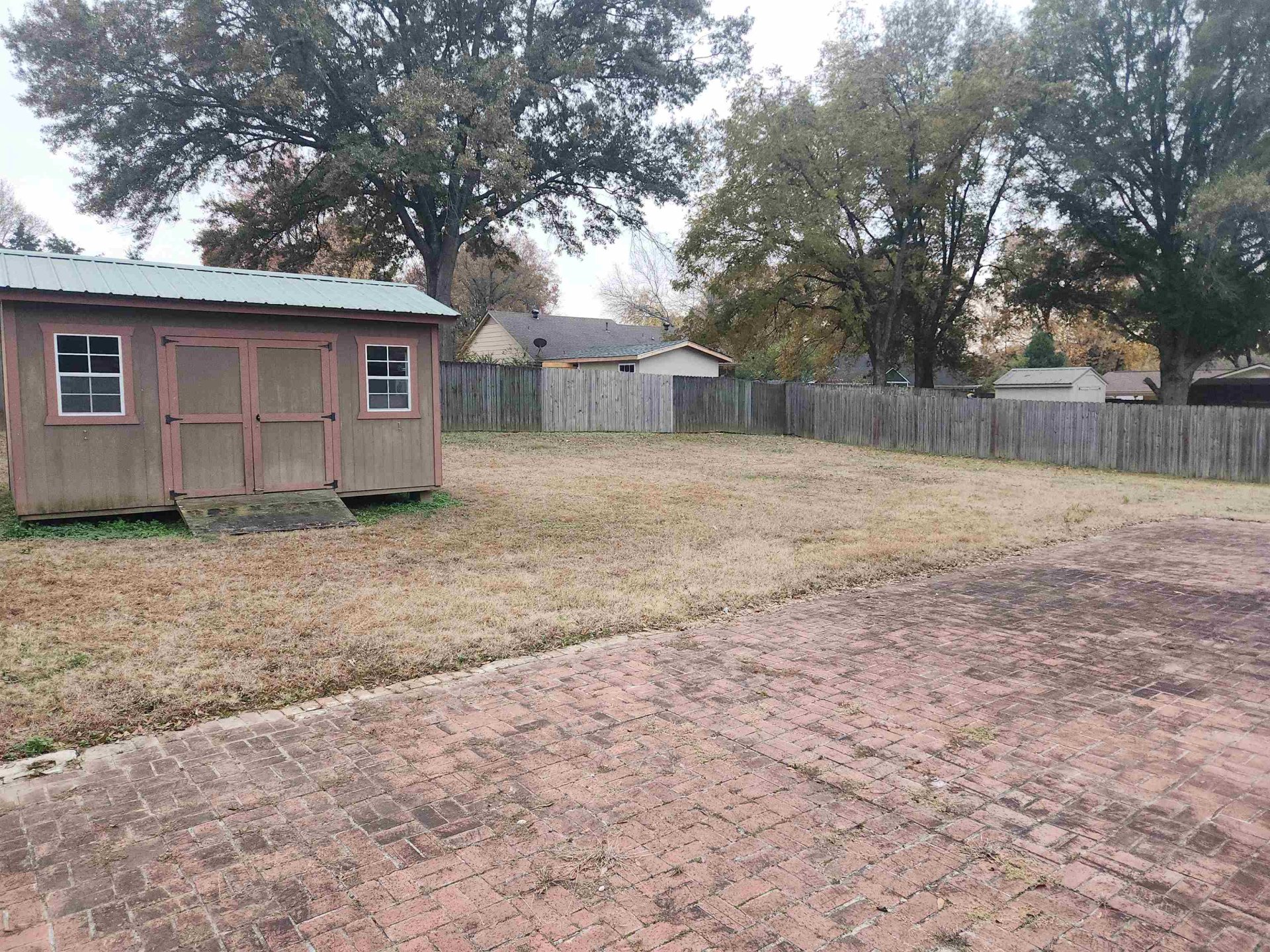 Well built 3BR/1.5BA home with attached carport. Brick exterior. Newer roof, dimensional shingle. Cove lot. Wood laminate flooring in living areas. Carpet in BR's. Living rm, Den with masonry FRPL. Open kitchen with built-in oven, dishwasher, microwave, disposal. Separate laundry room with tankless water heater. Full bath in hallway. Half bath in primary br. Oversized brick patio. Separate shed in backyard. Completely fenced yard. Pull down attic stairs. Front porch. Extra parking pad
