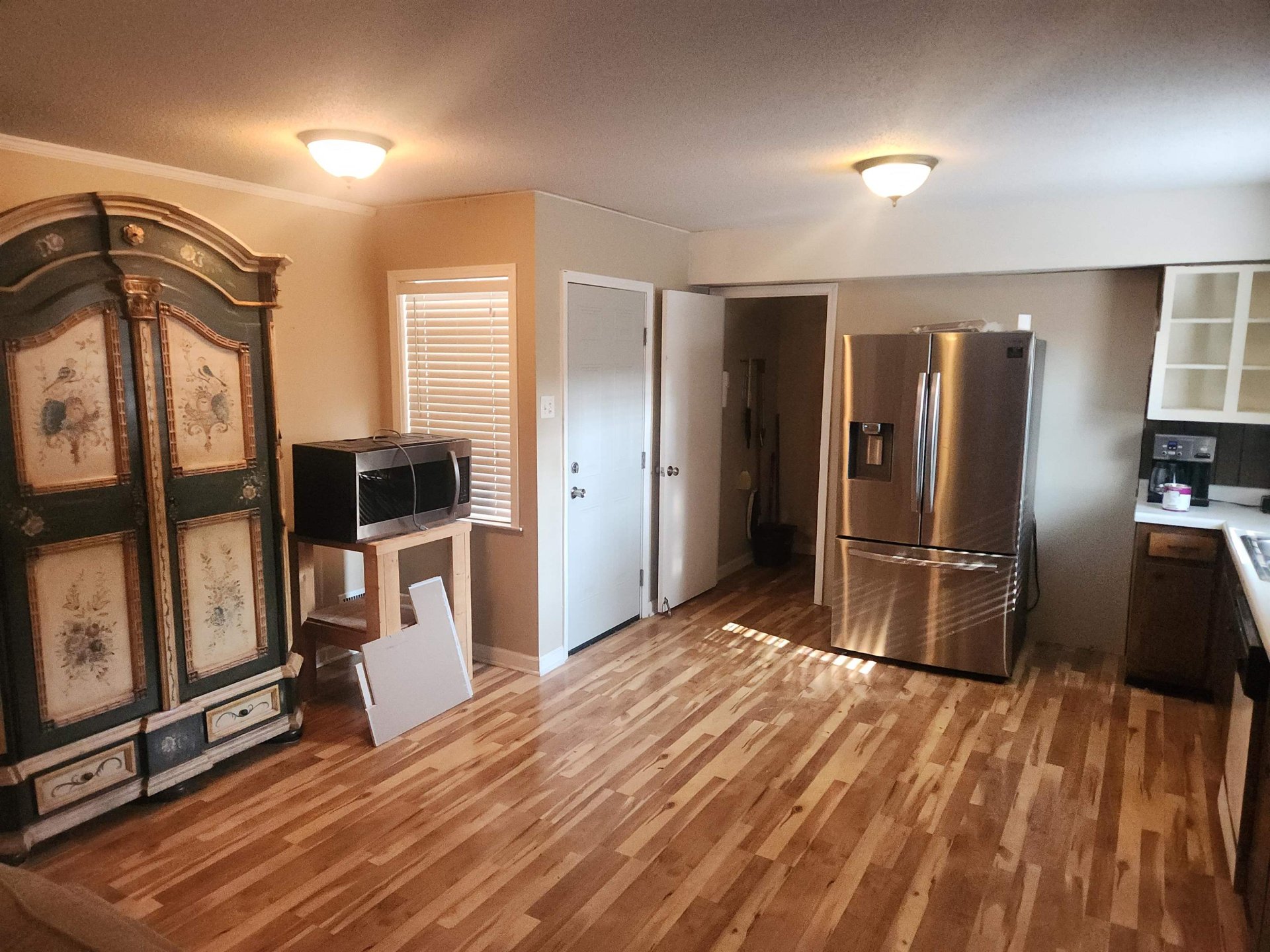 | Flooring | Part Hardwood, Part Carpet, Sprayed Ceiling |