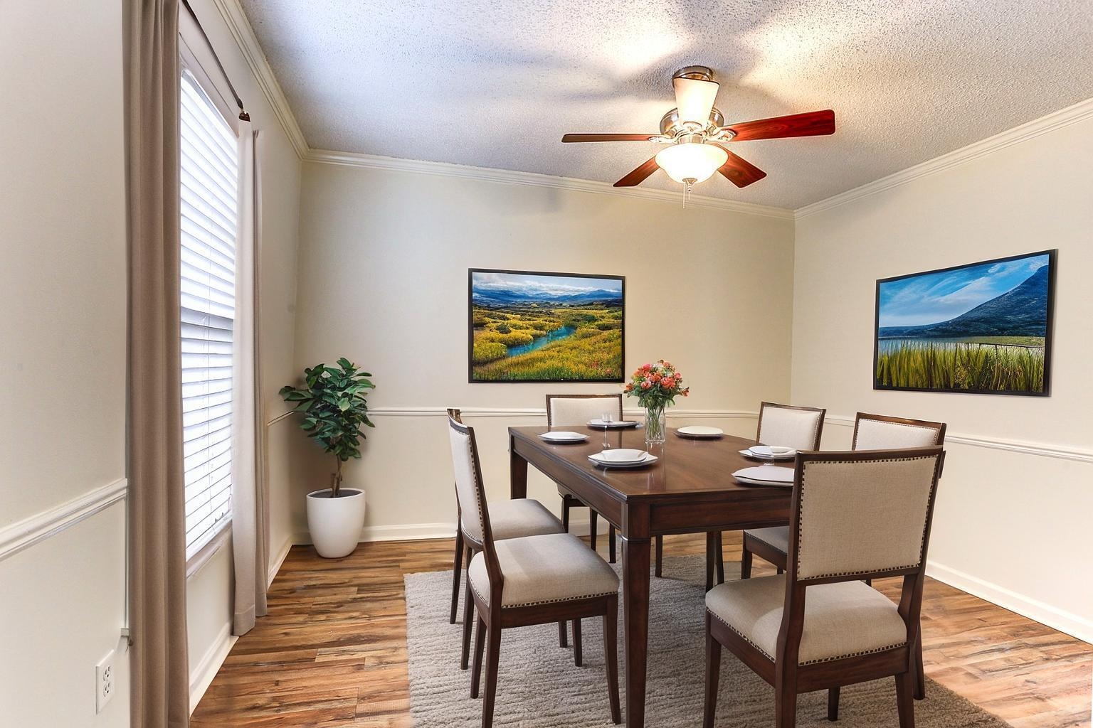 Terrific Brick house on a cove setting in Germantown. This home has MANY recent updates. New roof, new LVP floors and carpet. Fresh paint inside. This is a 1 level home in Riverdale School/ Houston High district with 3 bedrooms and 2 full bathrooms. Beautiful covered front porch. Private backyard. 2 car garage. Separate laundry room. Awesome location close to shopping and schools. Gas stove and stainless fridge stay. Also, the laundry room has a gas dryer set up and the dryer stays. Please note: The furnished pictures are virtually staged. The water tank is about 2 years old.