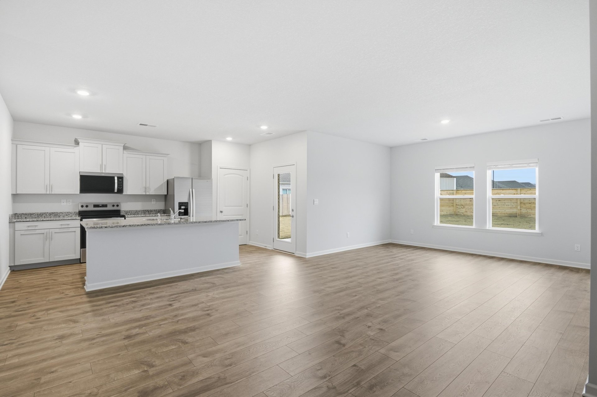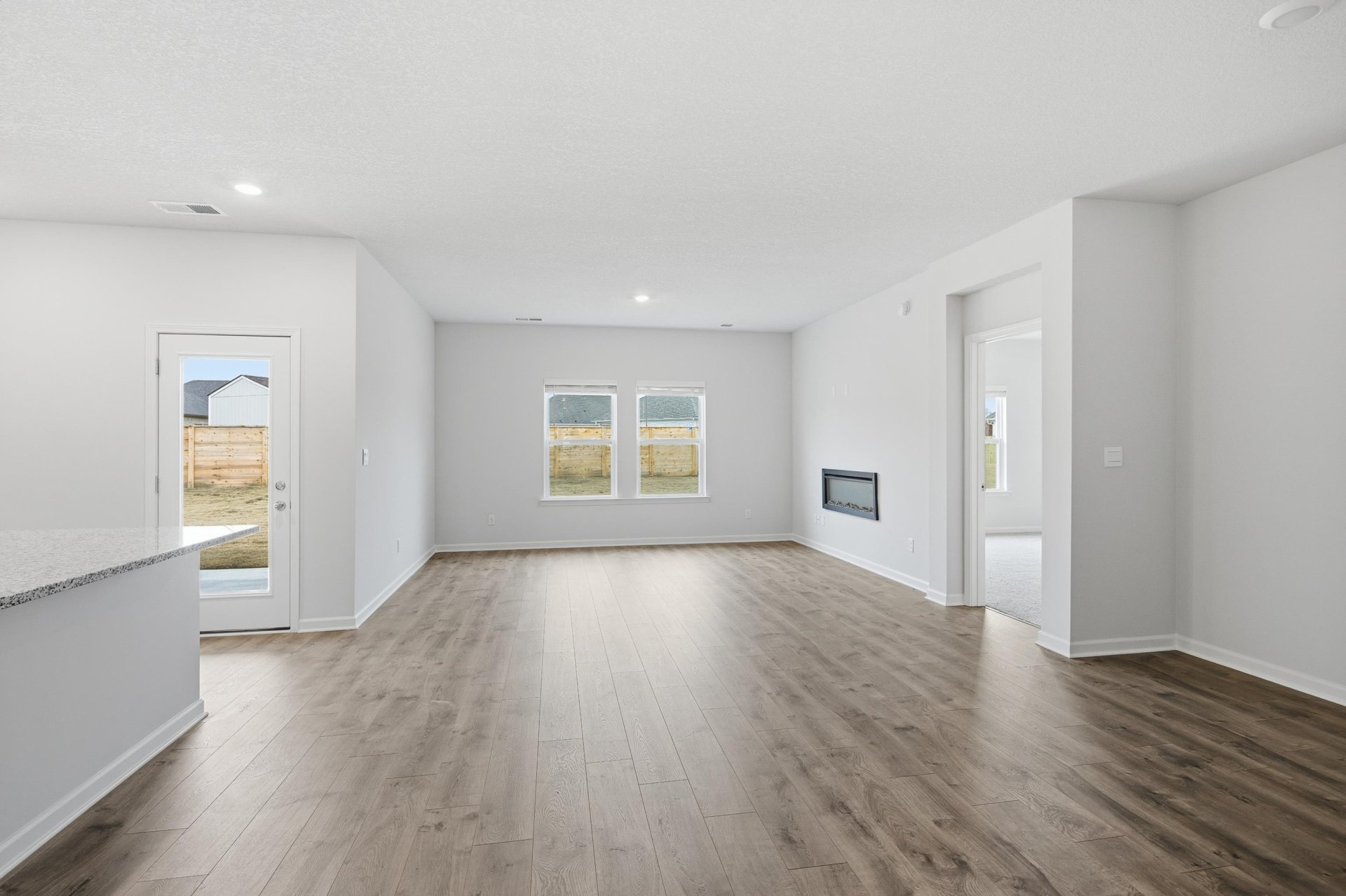 Brand-new and move-in ready, this D.R. Horton Kenner plan offers 1510 sq ft of modern, low-maintenance living. The open layout includes a bright family room with a decorative-only fireplace that adds a stylish focal point to the space. The kitchen features granite countertops, a spacious island for casual dining, a walk-in pantry, and plenty of cabinet storage. The private primary suite includes a large walk-in closet and a full bath with comfortable finishes. Two additional bedrooms share a second bath, making the layout ideal for guests or family. A convenient laundry room is located off the two-car garage entry. Designed with clean lines, durable materials, and functional flow, this home provides the simplicity and comfort today’s buyers love. Features and sizes may vary slightly from plans.