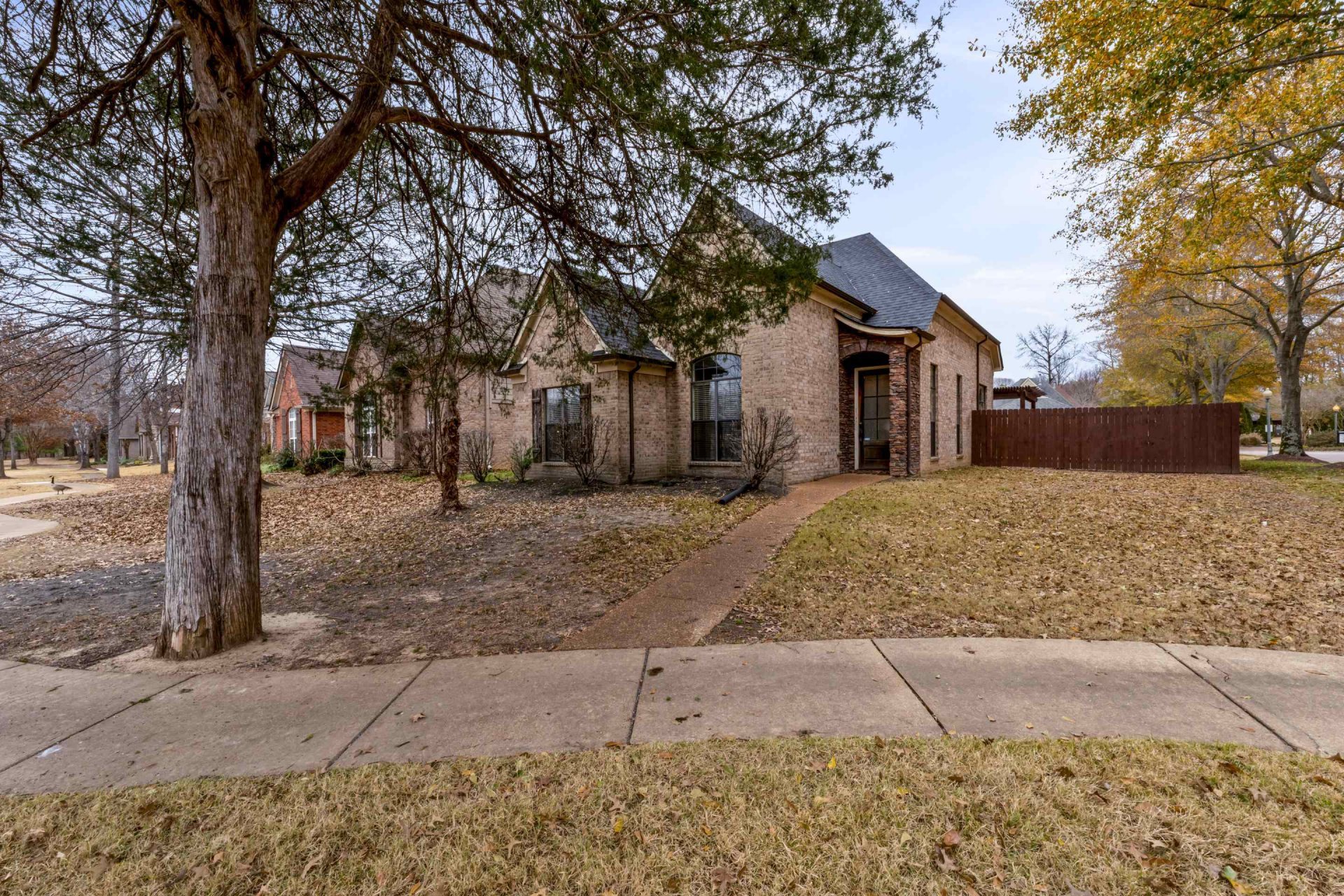 Lakefront beauty in the tranquil, Gated Community of Glen Lakes, Cordova is a must-see gem. Look no further, this one is it! Breathtaking views of the serene lake from your front door, and exceptionally high ceilings. Built in 2008, this 1-story home offers comfortable living space with 3-BR and 2-Full BA~The living area features a cozy fireplace that adds warmth and character~The interior flows seamlessly into the dining and kitchen spaces, perfect for everyday living as well as entertaining. The outside is low-maintenance with beautiful brick exterior, Designed for comfortable living without the burden of excessive upkeep~This home blends neighborhood convenience with a peaceful setting~Separate Laundry Rm Brand New Roof offering peace of mind for years to come! ~Professional Landscaping~New carpet 2025~New Microwave. Convenient access to the city's amenities & cultural attractions~Making it an ideal choice for those seeking both Comfort & Urban living ~No City taxes!