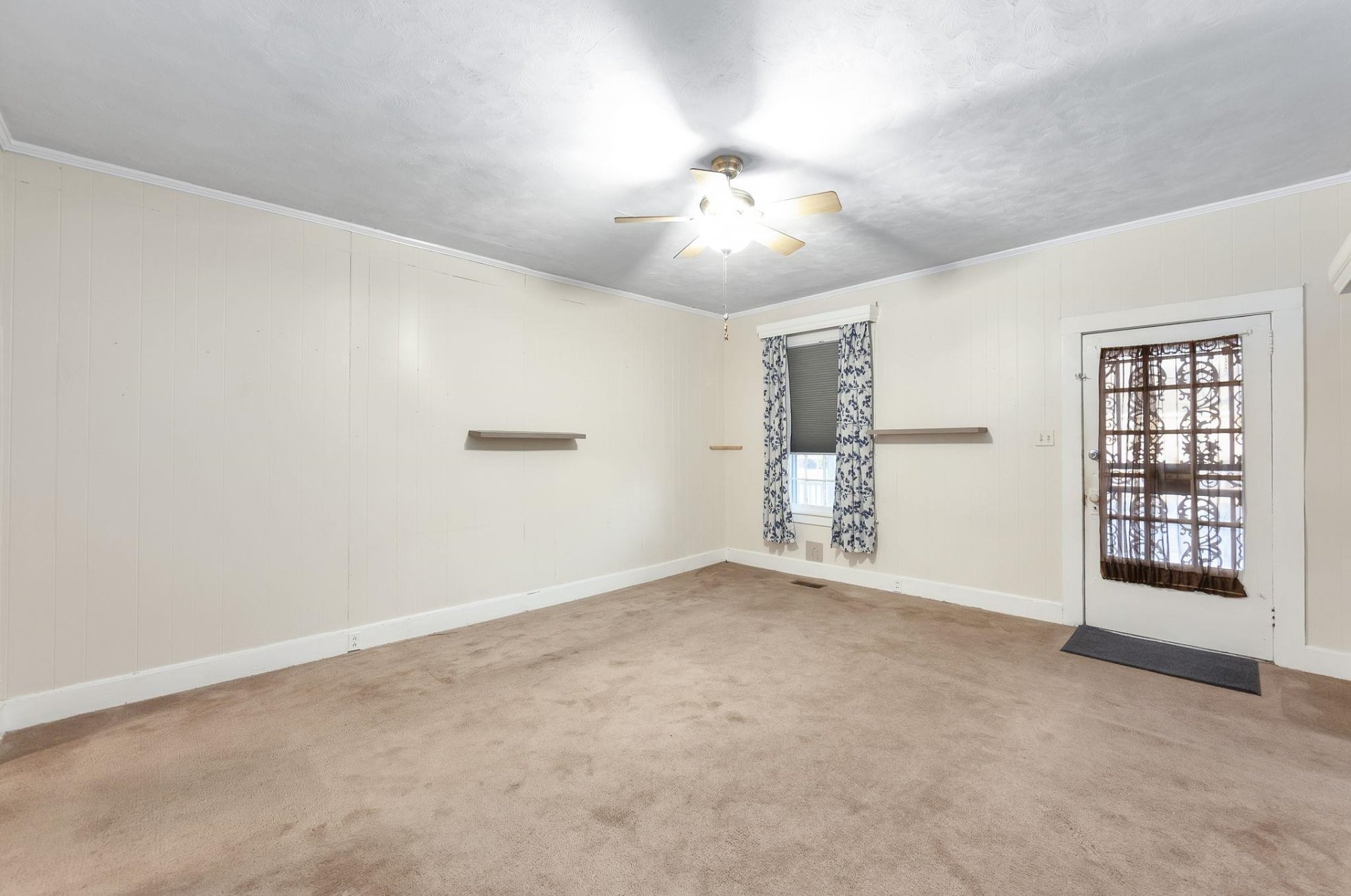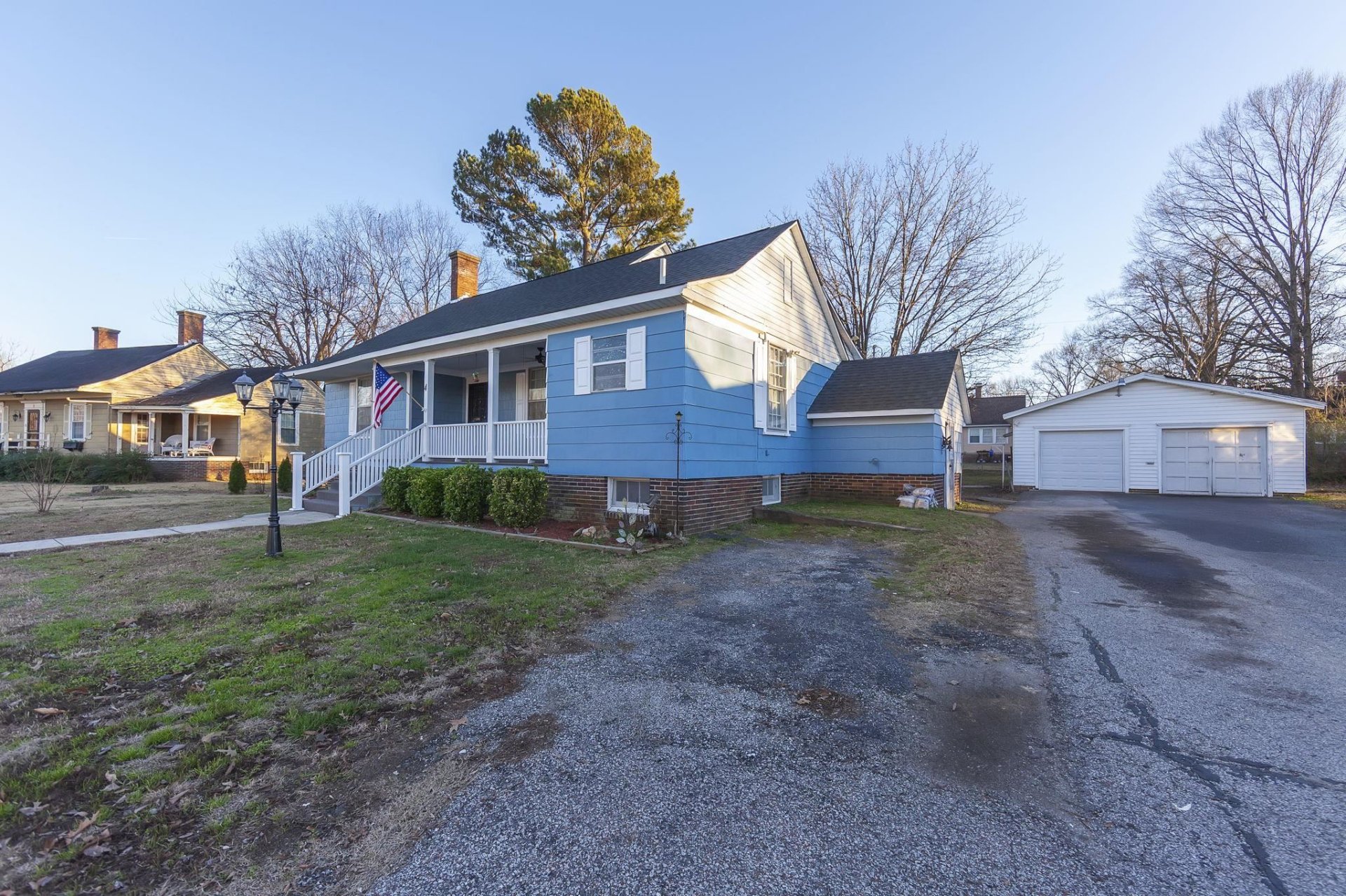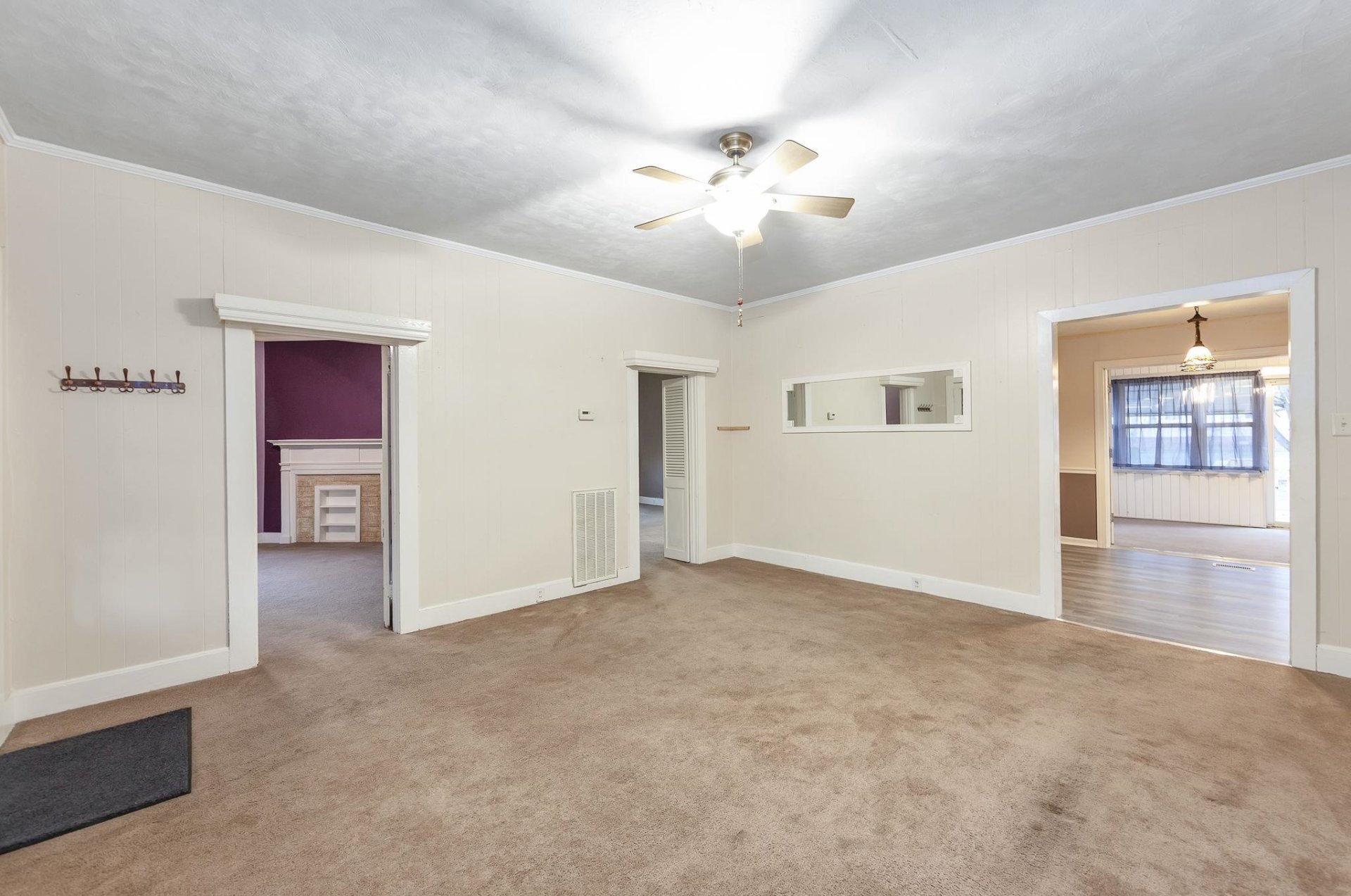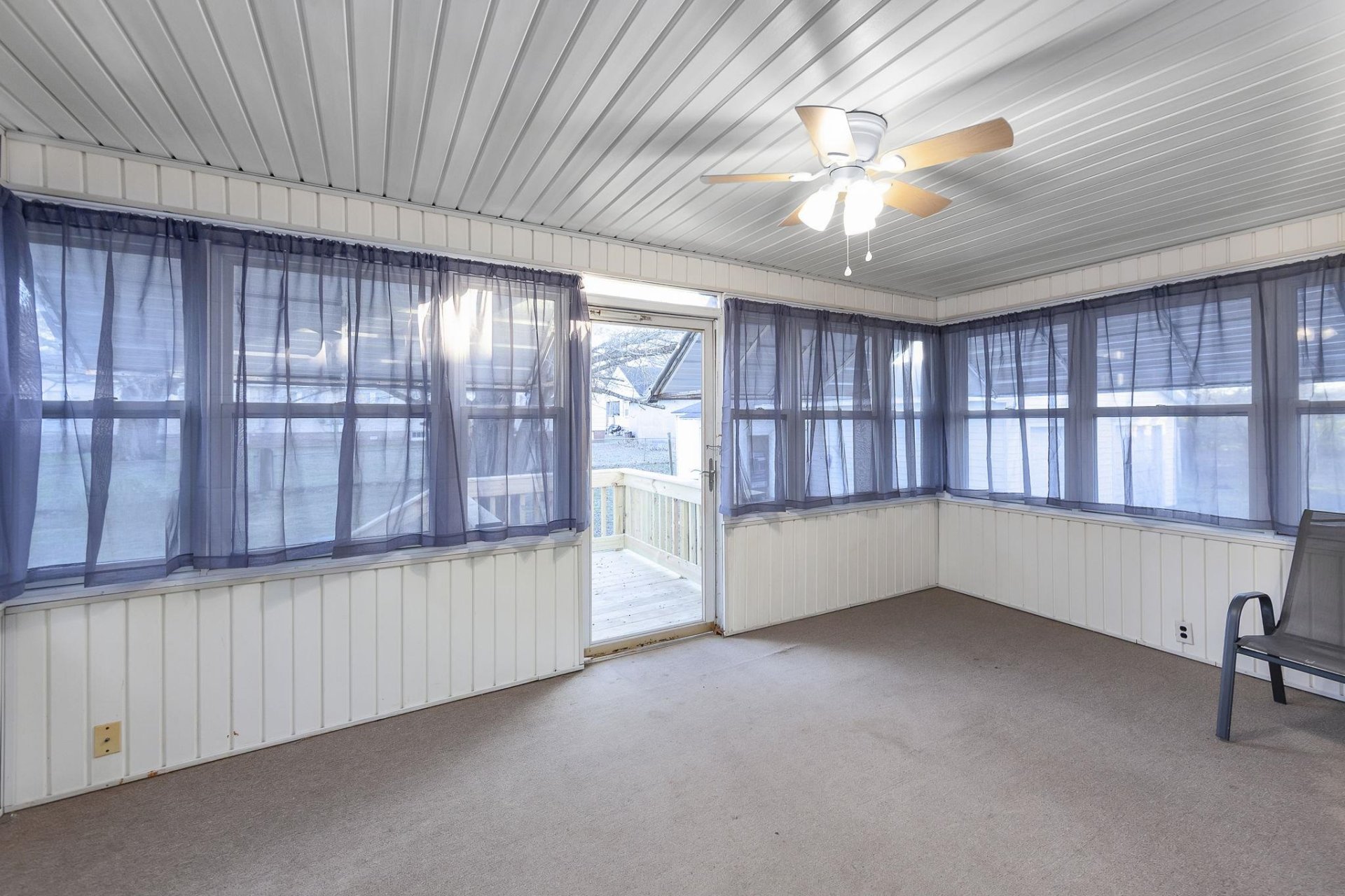 Discover the charm of this quintessential All-American small-town home, brimming with character from its 1920s origins. Unwind on the inviting front porch as you soak in the neighborhood vibes, or retreat to the cozy sunroom at the rear for a peaceful escape. Beneath the current carpet lies beautiful original hardwood flooring, ready to be revealed. Inside, you'll find generously sized rooms, including three bedrooms, two bathrooms, and a dedicated dining area. The kitchen boasts ample cabinetry for all your storage needs. Adding to its appeal, a full basement stretches under the entire house, offering ample storage or potential for expansion, while a convenient shop is located just off the garage, ideal for hobbies or projects. Step from the sunroom onto the brand-new deck, where you can enjoy serene views of the spacious backyard—perfect for gatherings or quiet moments alike.