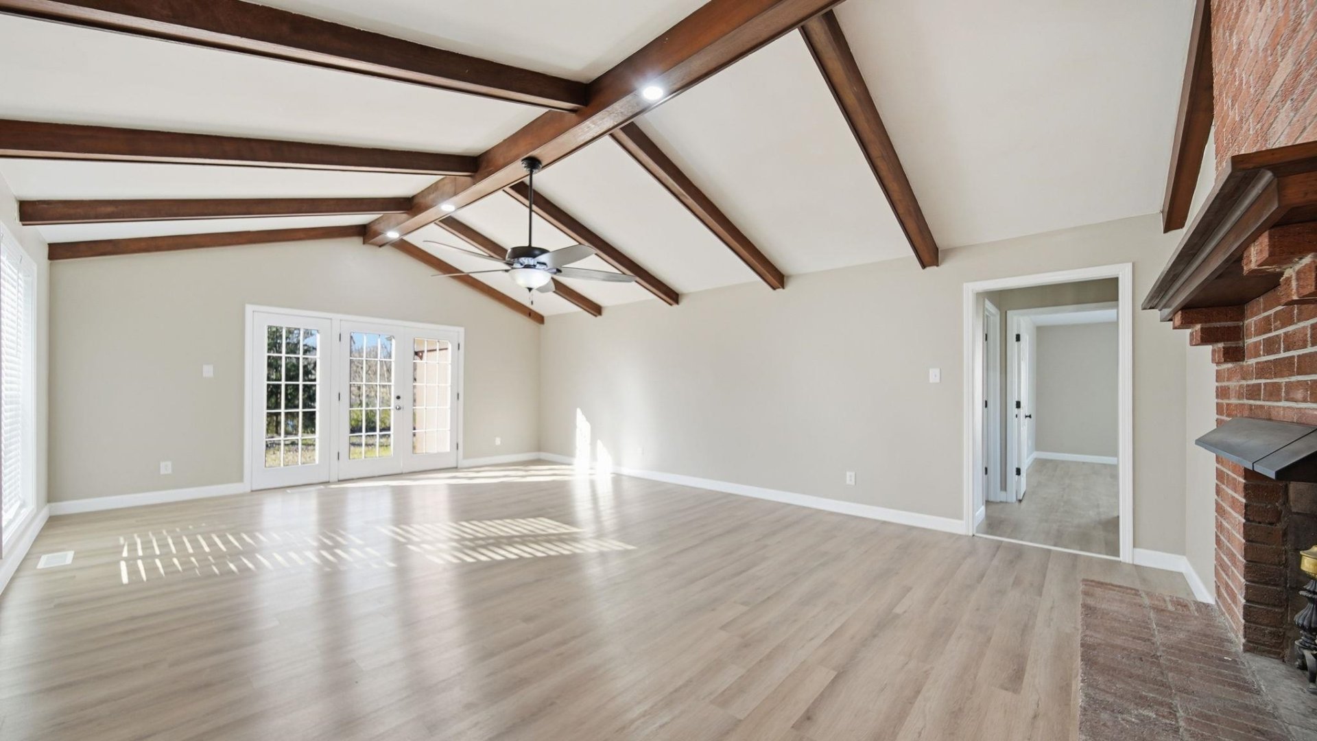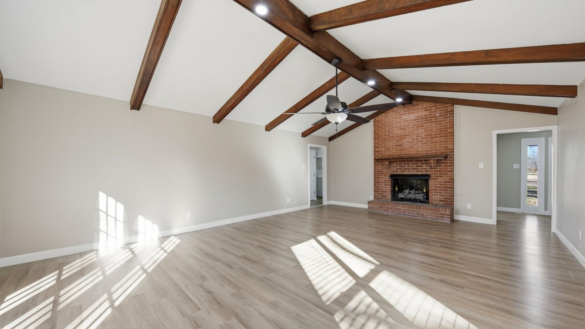 Completely transformed from the ground up, this stunning 4-bedroom, 2-bath home in charming Munford, TN is a true showstopper. Step into the expansive great room, where soaring wood beams and a cozy fireplace create an inviting atmosphere perfect for gatherings. The new kitchen dazzles with brand-new cabinets, quartz countertops, and top-of-the-line appliances. The primary bathroom is a spa-like retreat, featuring a custom-tiled walk-in shower and a double vanity. Every detail has been refreshed—from new windows, doors, roof, flooring, and paint to modern finishes throughout. Nestled on a rare double lot, the property offers abundant outdoor space and includes a wired workshop that also includes a new roof ideal for hobbies or storage. With its thoughtful updates and generous layout, this home blends modern luxury with small-town charm. Seller is including a 1 year Choice Home Warranty.