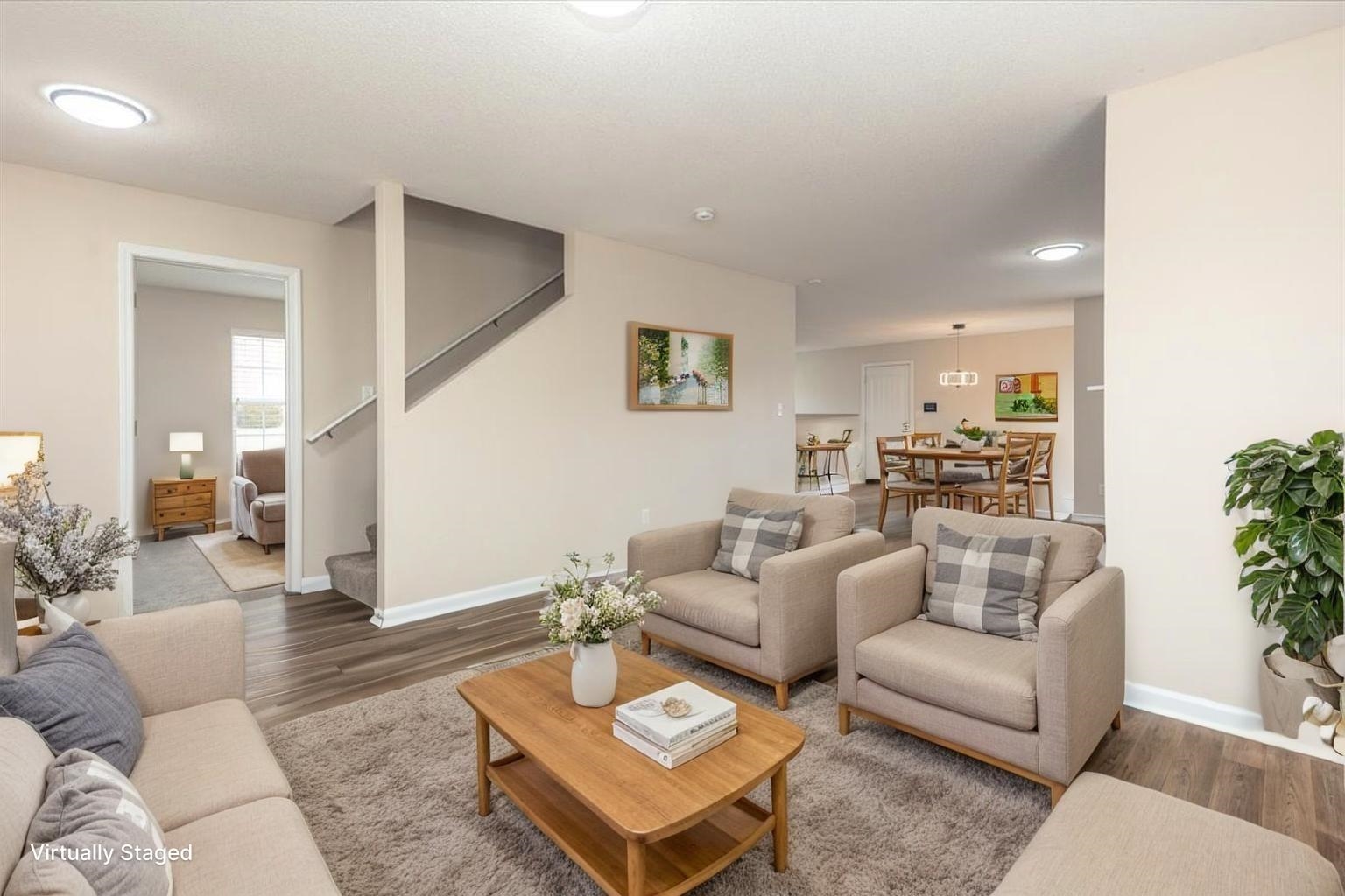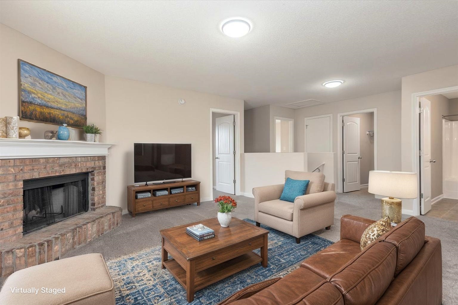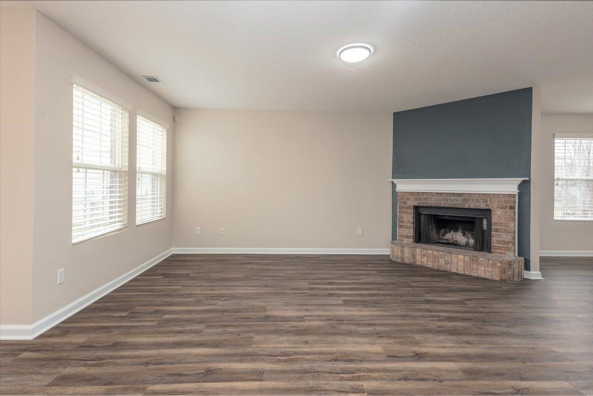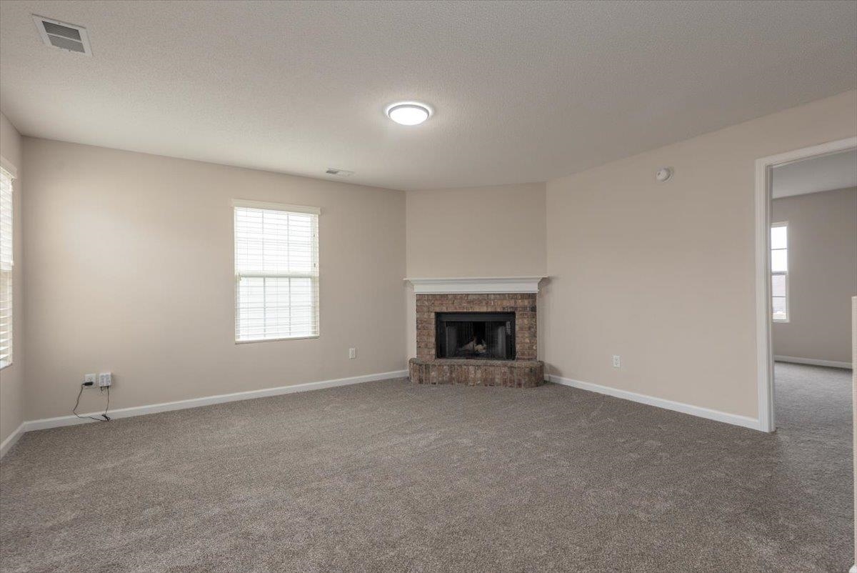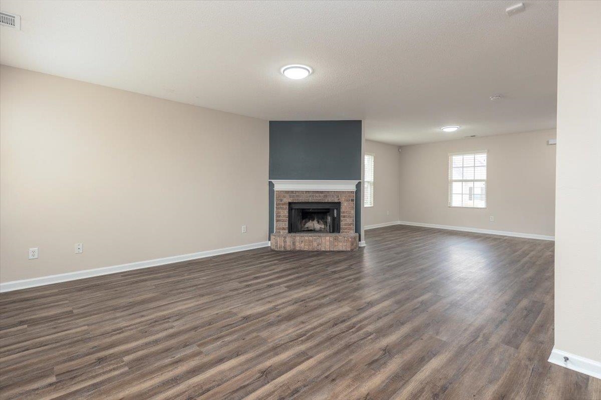 This craftsman style home w/2,514 sq ft has just been totally renovated. Featuring 4 BR, 3 Full Baths. Located on a quiet corner cove lot w/a large front porch. Truly move in ready & you will love this floor plan w/extra large primary BR & HUGE walk-in closet. Two fireplaces located in the hearth room & upstairs bonus room. New lighting throughout, new paint interior & exterior, beautiful LVP just installed in all living areas, new carpet just installed in bedrooms & bonus. Rear load 2 car garage. Roof & HVAC 2024, County taxes only! Photos with furniture are digitally staged.