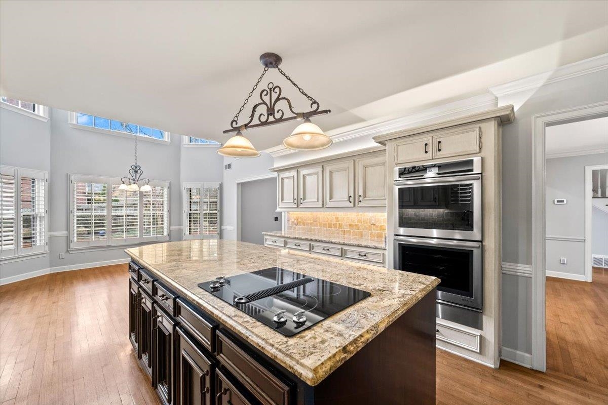 Stately 4-bedroom home with a huge bonus room and 3.5 baths in desirable Oakleigh. The spacious primary suite is conveniently located on the main level and offers generous closet space. Gorgeous hardwood floors throughout the home, complemented by granite countertops & plantation shutters. The chef’s kitchen boasts a large island, double ovens, and ample cabinetry—perfect for everyday living and entertaining. Situated on a beautifully landscaped corner lot, the property features custom stonework, gunite pool with waterfall, covered patio, an iron fence, and a convenient circular driveway, creating exceptional curb appeal. This home seamlessly combines elegance, comfort, and functionality in a prime location. Move in ready, quick possession!