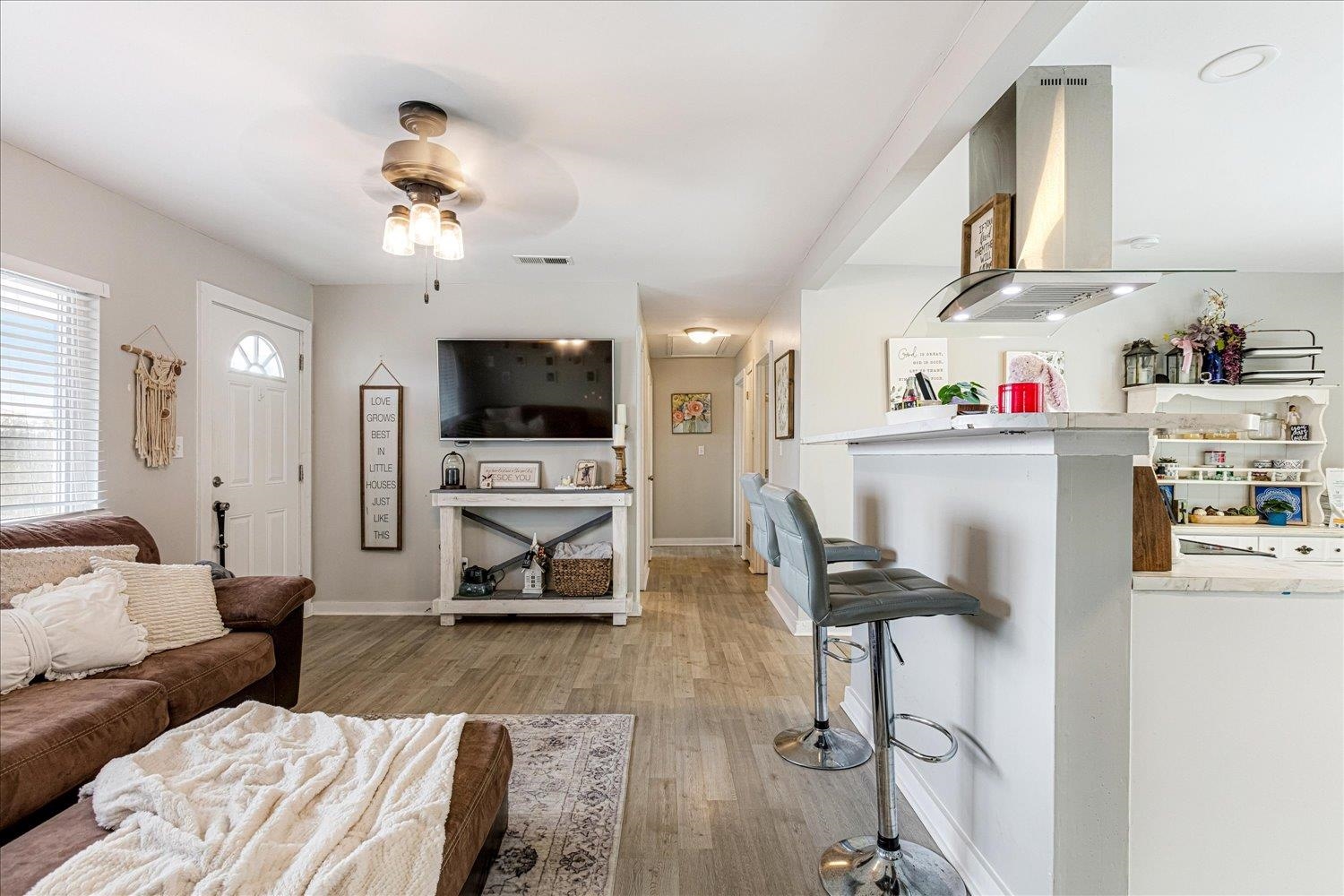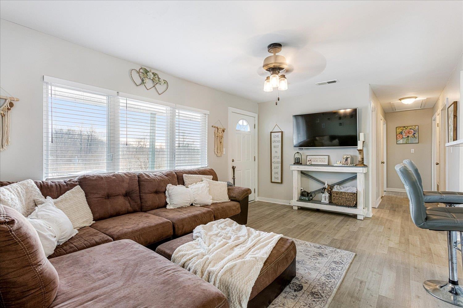 Enjoy peaceful country living in this charming 3-bedroom, 2-bath ranch-style home on a spacious lot with beautiful views all around. This home features an inviting eat-in kitchen with stainless steel appliances, a desirable split-bedroom floor plan, and an extra-large laundry room. Recent updates include renovated bathrooms, newer windows, laminate wood flooring and a deck perfect for relaxing or entertaining outdoors. A wonderful blend of comfort, space and country charm!