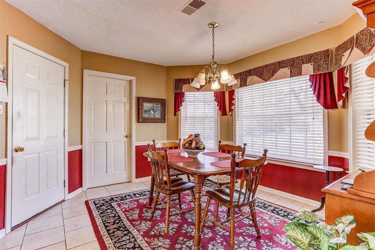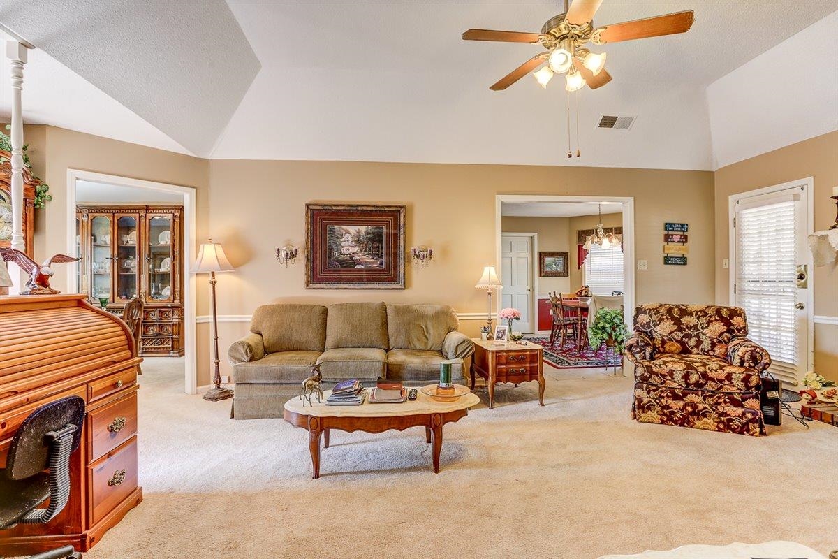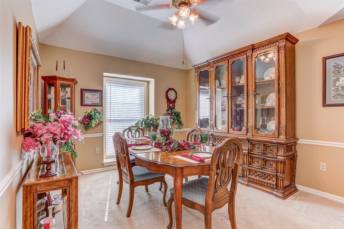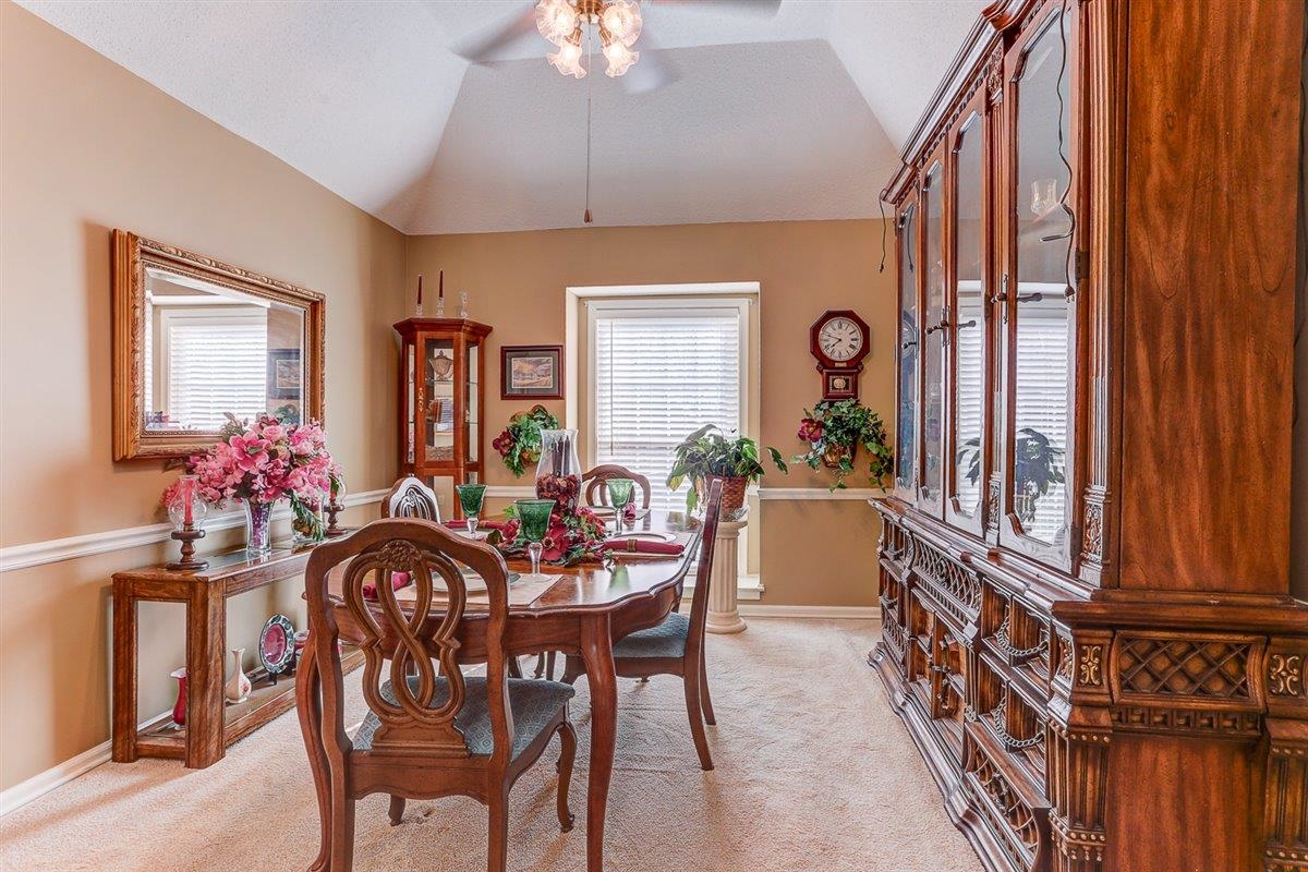 Beautiful 3 bedroom, 2 bathroom home offering comfortable one-level living with a functional and inviting floor plan. The spacious living room provides a welcoming space to relax or entertain, while the formal dining room is perfect for hosting meals and gatherings. The kitchen features plenty of cabinet space and a bright morning room, ideal for casual dining or enjoying your morning coffee. The nearby laundry room adds everyday convenience. The primary bedroom includes a private bath with a walk-in shower, two closets and double sinks. Two additional bedrooms share a well-appointed hall bath, with carpeted bedrooms adding comfort throughout the home. Enjoy outdoor living with a covered patio overlooking a fully fenced backyard and a shed for extra storage space. Schedule your showing today.