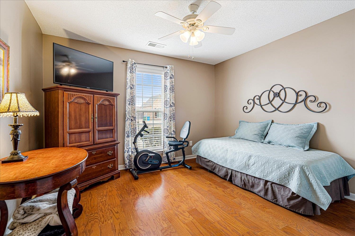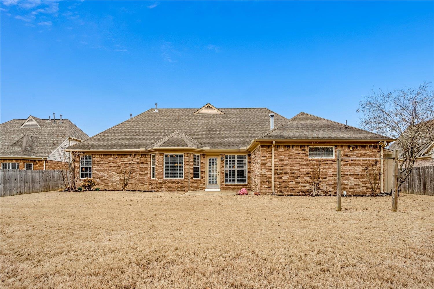 Well-planned 4BR/3BA with all bedrooms and baths on the main level, plus a bonus room upstairs ideal for a playroom, office, or home gym. Functional split-bedroom layout with two bedrooms on one side and two on the other for added privacy. Features include high ceilings, hardwood floors, and a welcoming living room with a gas fireplace. The eat-in kitchen offers granite countertops, island, tile backsplash, stainless appliances and breakfast area. A large primary suite showcases an ensuite with double vanities, soaking tub, and separate shower. Outside, the fenced backyard provides a private, wooded backdrop. Convenient location and zoned for Arlington schools.