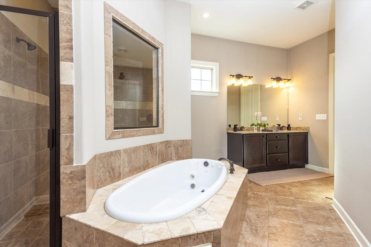 Welcome to your own backyard retreat in Bartlett. Situated on a beautiful corner lot, this 5-bedroom, 3-bath home (2 down, 3 up — 5th bedroom or bonus room option) was built in 2014 and thoughtfully designed for comfortable living and entertaining.Enjoy an extended pool season with a high-efficiency pool heater/chiller and variable-speed pump keeping operational costs lower while maximizing enjoyment. The large fenced yard and covered patio create the perfect setting for summer gatherings, while wired patio and pool speakers, and outdoor TV hookup make game days and evenings under the stars unforgettable.Inside, you’ll find hand-scraped hardwood floors, built-in living room shelving, surround sound, and a mudroom with custom storage . The spacious primary suite feels like a private spa, featuring a walk-through shower with dual heads and an oversized whirlpool tub.From peaceful mornings to poolside evenings, this is a home designed for slowing down, and creating lasting memories!