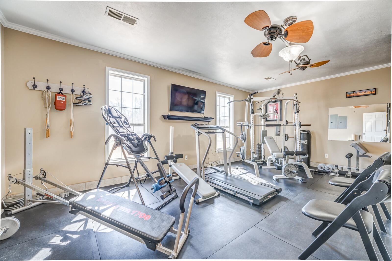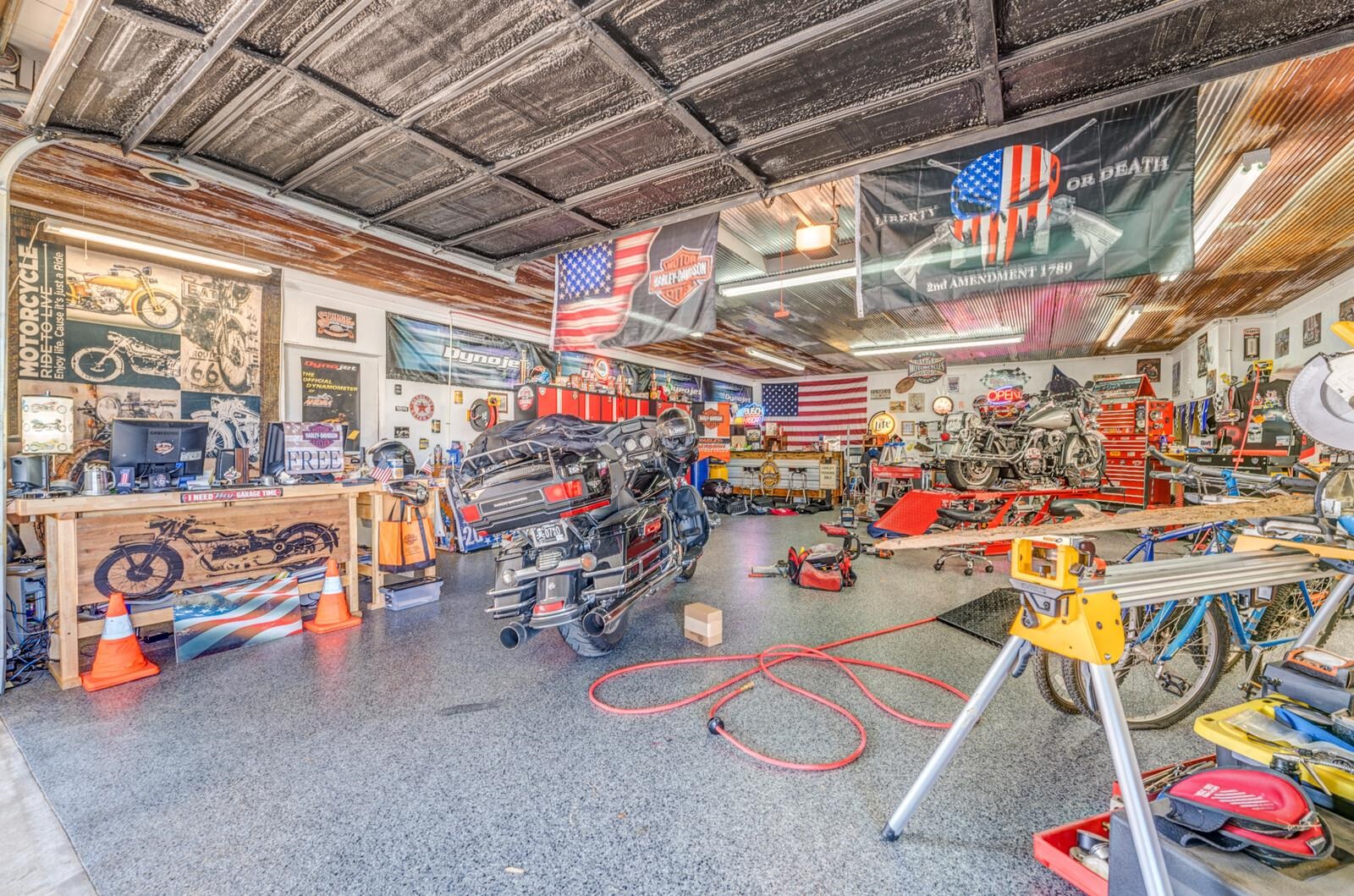 Stunning home nestled on 5.81 picturesque acres (2 parcels), offering the perfect blend of luxury & functionality. This exceptional property is fully equipped for country living & entertaining alike. Equestrian-ready w/3-stall horse barn featuring a tack rm, electricity, & water. 22x36 hay barn provides ample storage, including space for a tractor, & there’s a separate shop for additional workspace. 30x40 heated & cooled shop boasts brand-new epoxy floors. Enjoy peaceful views of the pond w/its new dock, while security cameras provide added peace of mind. Inside, the home showcases granite thru-out & includes all appl. 5 spacious bedrms & 5 full baths, there’s rm for everyone. 5th bedrm up features a private ensuite, perfect for a teen suite. Large bonus rm includes a pool table that remains w/the home. Additional highlights include a 21x12 in-home gym, a dedicated office w/built-ins, large safe in the downstairs closet stays, 6-car garage heated & cooled. Also, RV parking & hookup!!