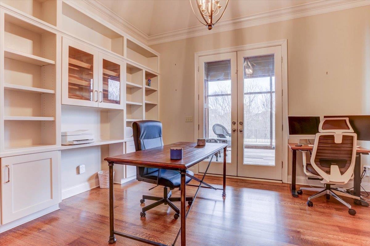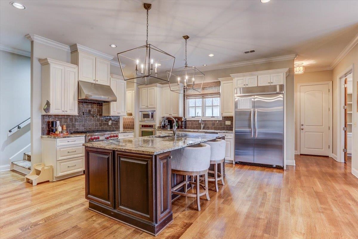 Enjoy unobstructed green space views with breathtaking seasonal color changes, a private nature retreat in prestigious Enclave Estates. This spectacular home has an open floor plan with a gourmet kitchen that is designed for everyday living and entertaining with upscale appliances & refined finishes. Sunny office with built-ins is located off the breakfast area. Downstairs features a primary suite with dramatic high ceilings, filling the space with natural light & architectural elegance - as well as a second bedroom guest suite with private bath. Rich hardwood flooring on both levels creates warmth and continuity throughout. Enjoy the screen porch with stone fireplace overlooking the lovely backyard. New roof in 2025 and updated primary suite AC system provides efficiency. Professionally designed landscaping enhances curb appeal and complements the serene, park-like surroundings.