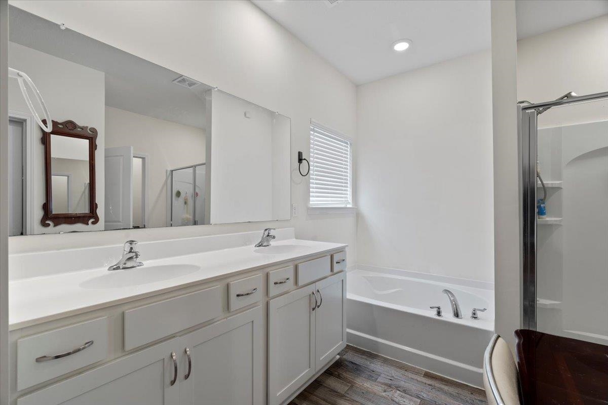 Welcome to this beautifully maintained home, thoughtfully designed to balance open living with comfortable, private spaces. The spacious main living area flows effortlessly into the kitchen and dining space, creating a warm, inviting setting for everyday life and easy entertaining. Two secondary bedrooms are tucked into their own private wing with a full bath, while a third bedroom features its own en-suite—perfect for guests or multi-generational living. The kitchen features granite countertops, tile accents, Mohawk flooring, and Moen fixtures, blending style and function. A 3-car garage offers plenty of room for vehicles and storage. Lovingly cared for over the past five years, this move-in-ready home offers comfort and quality throughout. Seller offering up to $5,000 in buyer concessions toward flooring allowance or closing expenses with acceptable offer! (Subject to purchase agreement terms and lender guidelines.)