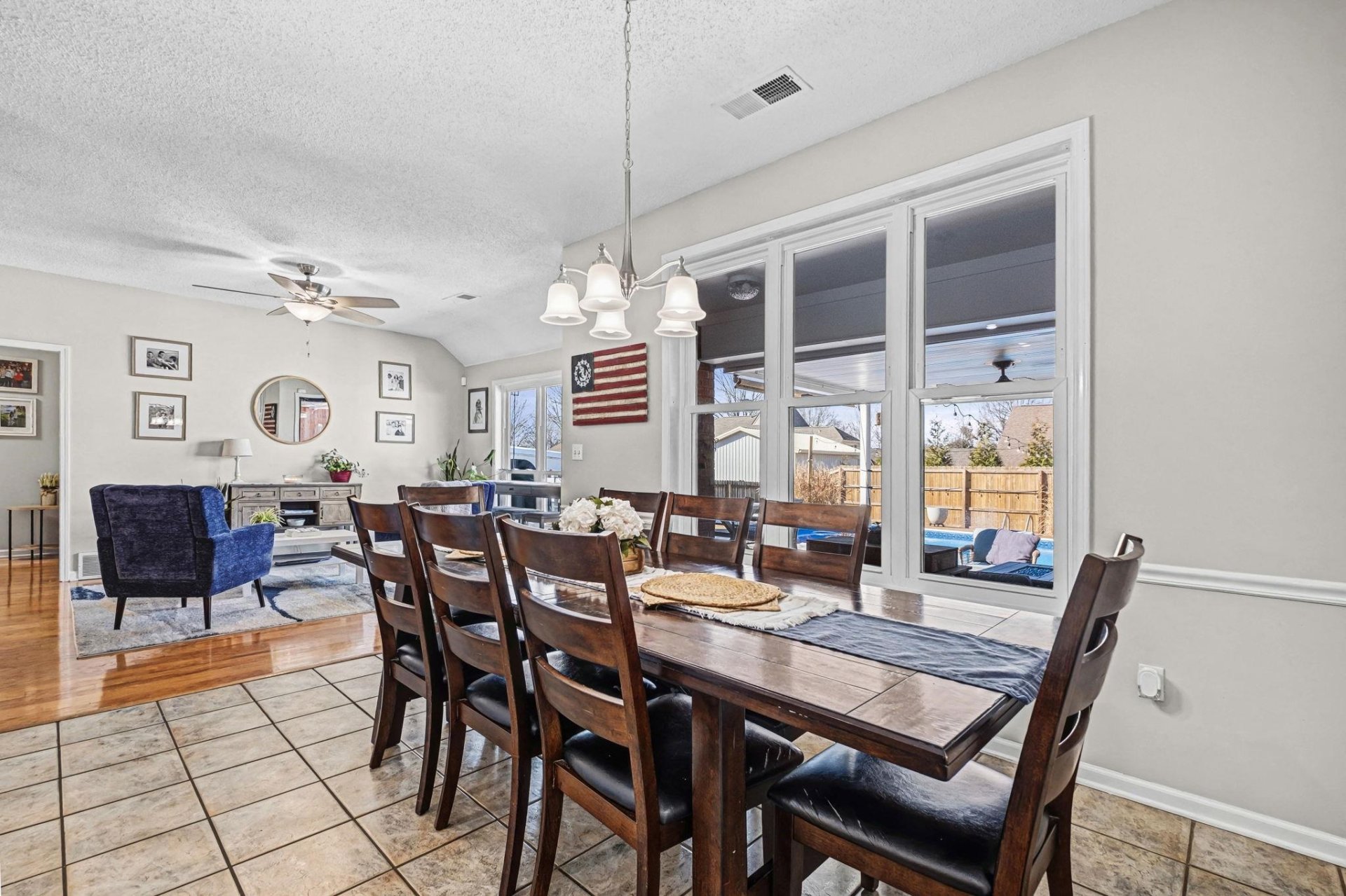 | Flooring | Hardwood Throughout, Part Carpet, Tile |