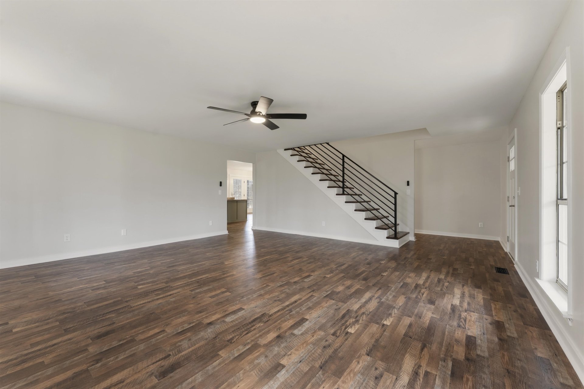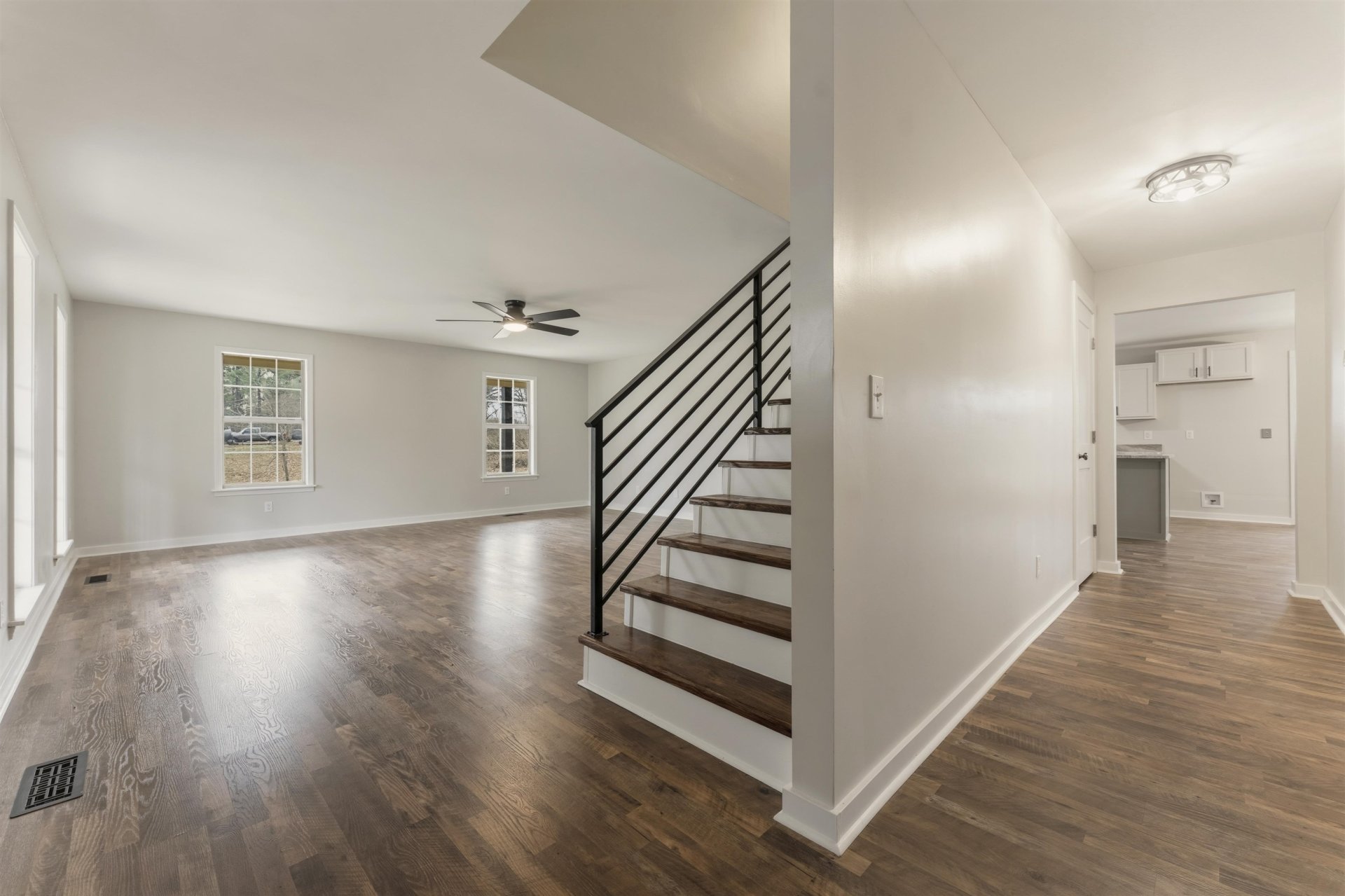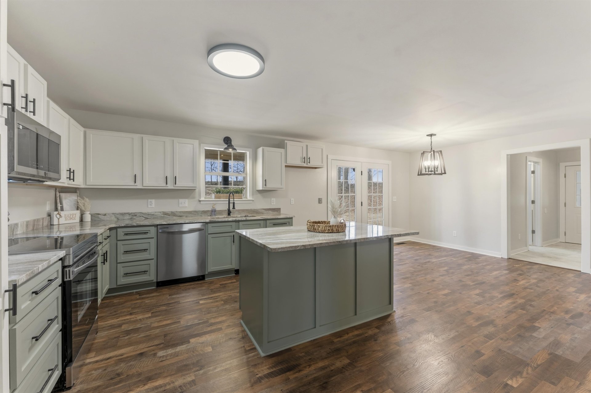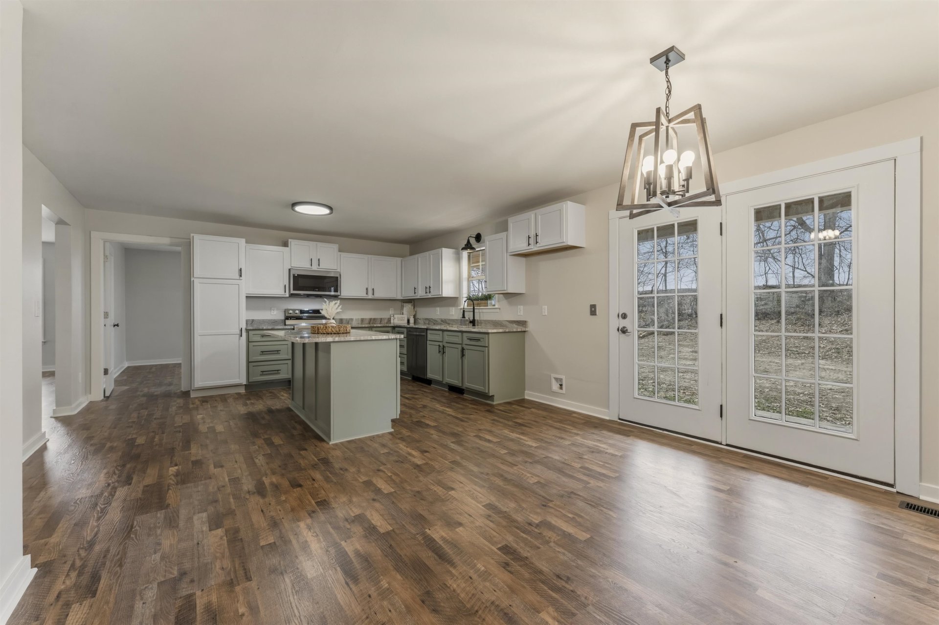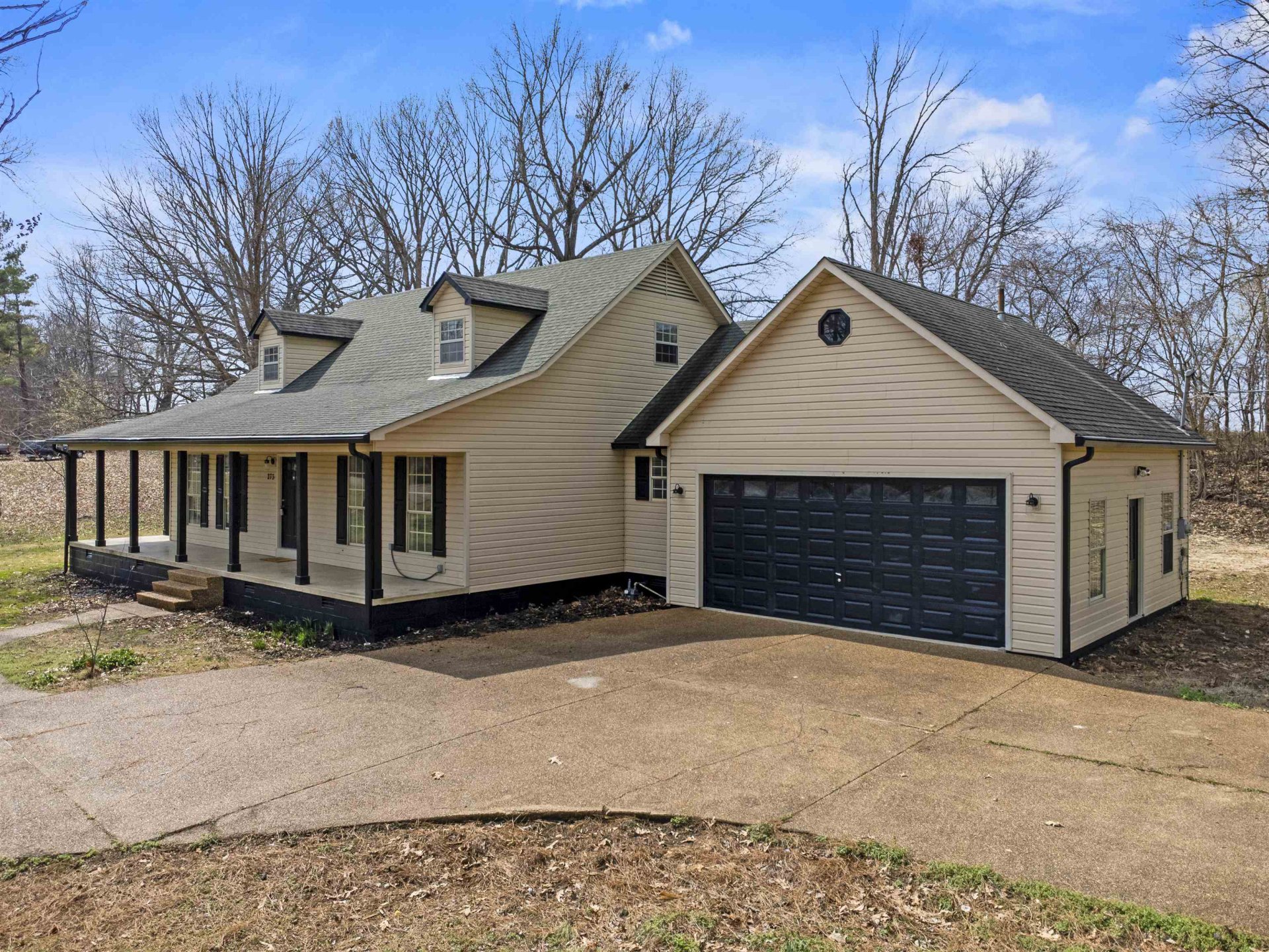Rested on a quiet dead-end road, with no homes behind you and one acre of flat land, this is the kind of place people move to when they’re ready for a little more space and a little peace. Plenty of room to garden, add chickens, or start a homestead. A tire swing hangs ready, a flag pole stands tall, and the wrap-around porch invites slow evenings. Inside, everything has been thoughtfully renovated, new flooring, drywall, paint, modern doors, lighting, and a striking iron stairwell anchoring the large living room. The kitchen is built to gather around with new granite counters, deep farm sink, island, new cabinets and appliances. Two bedrooms and two full baths down, large bedrooms up with half bath. Spacious primary closet with room for dressers. Oversized 22x24 garage, long drive with extra parking, large laundry room with added cabinets. Country feel, close to town. This is Home. (Some images in this listing have been virtually staged to illustrate the potential use and layout)