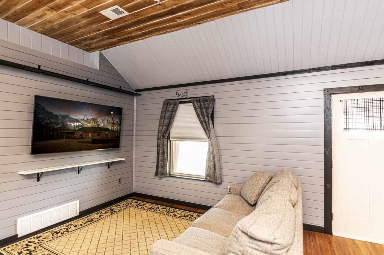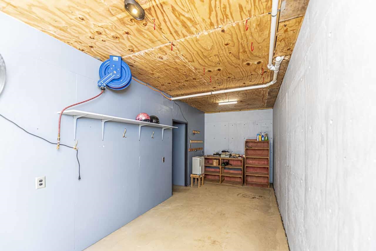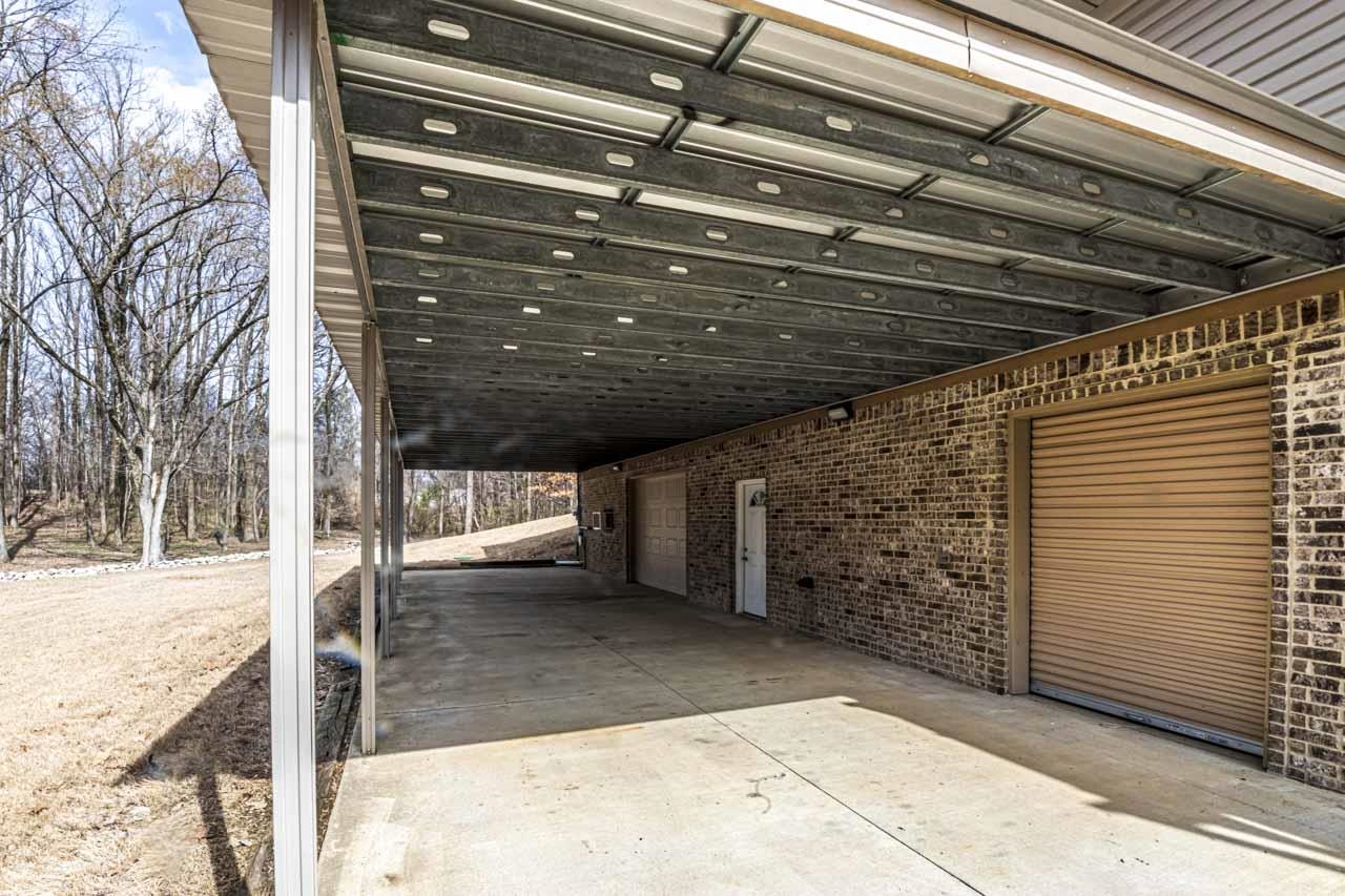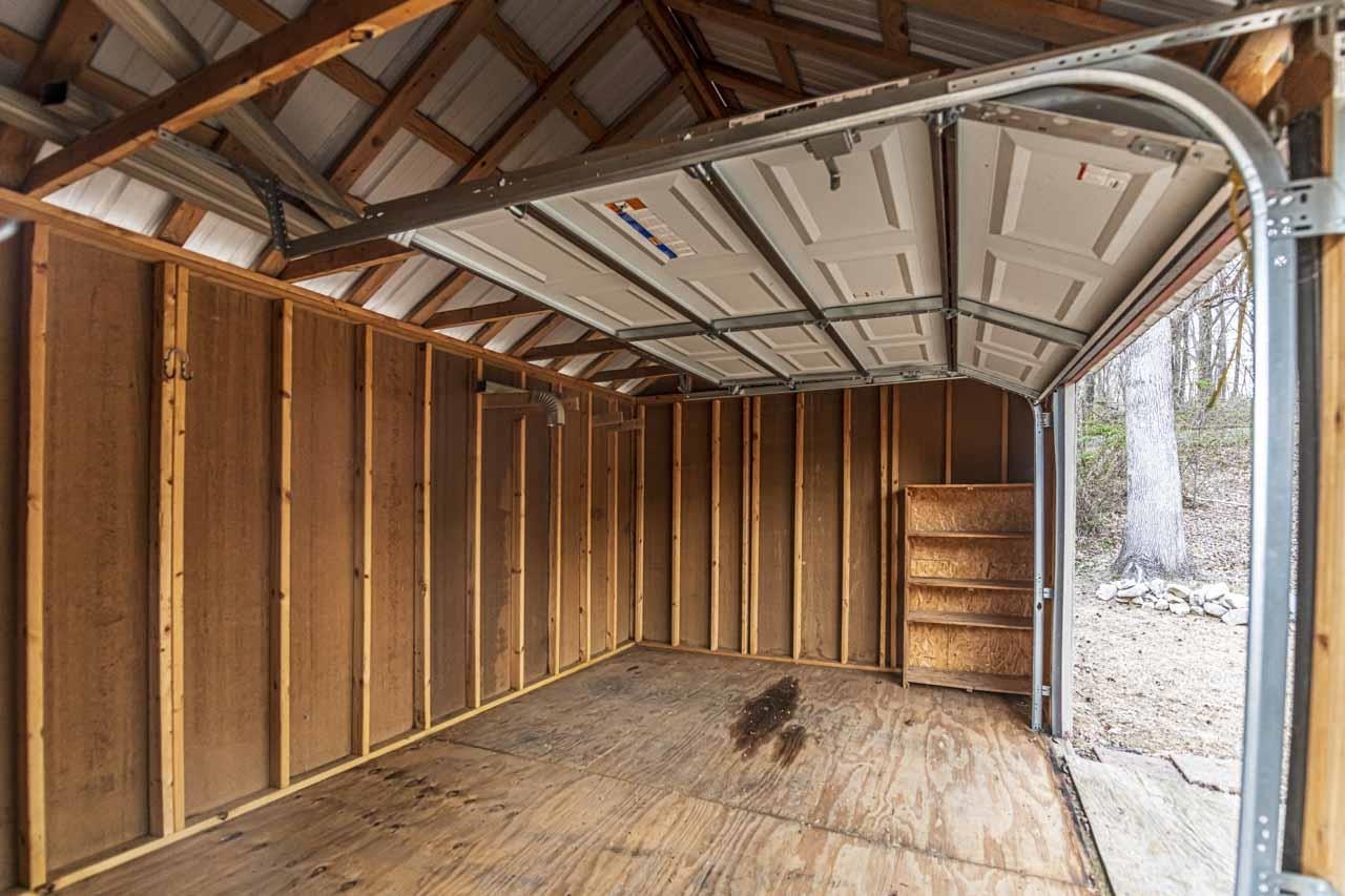 One-of-a-kind modern home with incredible walk out basement garage, shop & storage areas. This 2BR, 1.5BA home offers a rustic-modern interior featuring wood ceilings, metal accents, shiplap walls, & an open living/kitchen area full of character. The primary bath includes large walk-in closet & shower. Modern finishes give this home a bold masculine feel that is truly unique. The walk out basement is where this property truly shines, featuring a massive 2-car garage PLUS a motorcycle/ATV garage, three separate storage areas, & ample workspace. The walk out basement garage & storage areas make this ideal for hobbyists, small business owners, mechanics, woodworkers, or anyone needing serious workspace. Additional covered parking includes a 1-car carport on the main level & a large 2-car carport below. Distinctive property with unmatched garage/workspace potential. 2.84 acres backs up to railroad & park for added privacy, no rear neighbors. Built like a bunker & designed with purpose.