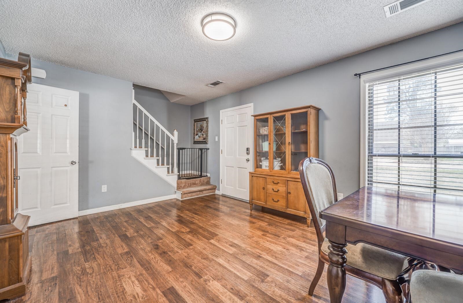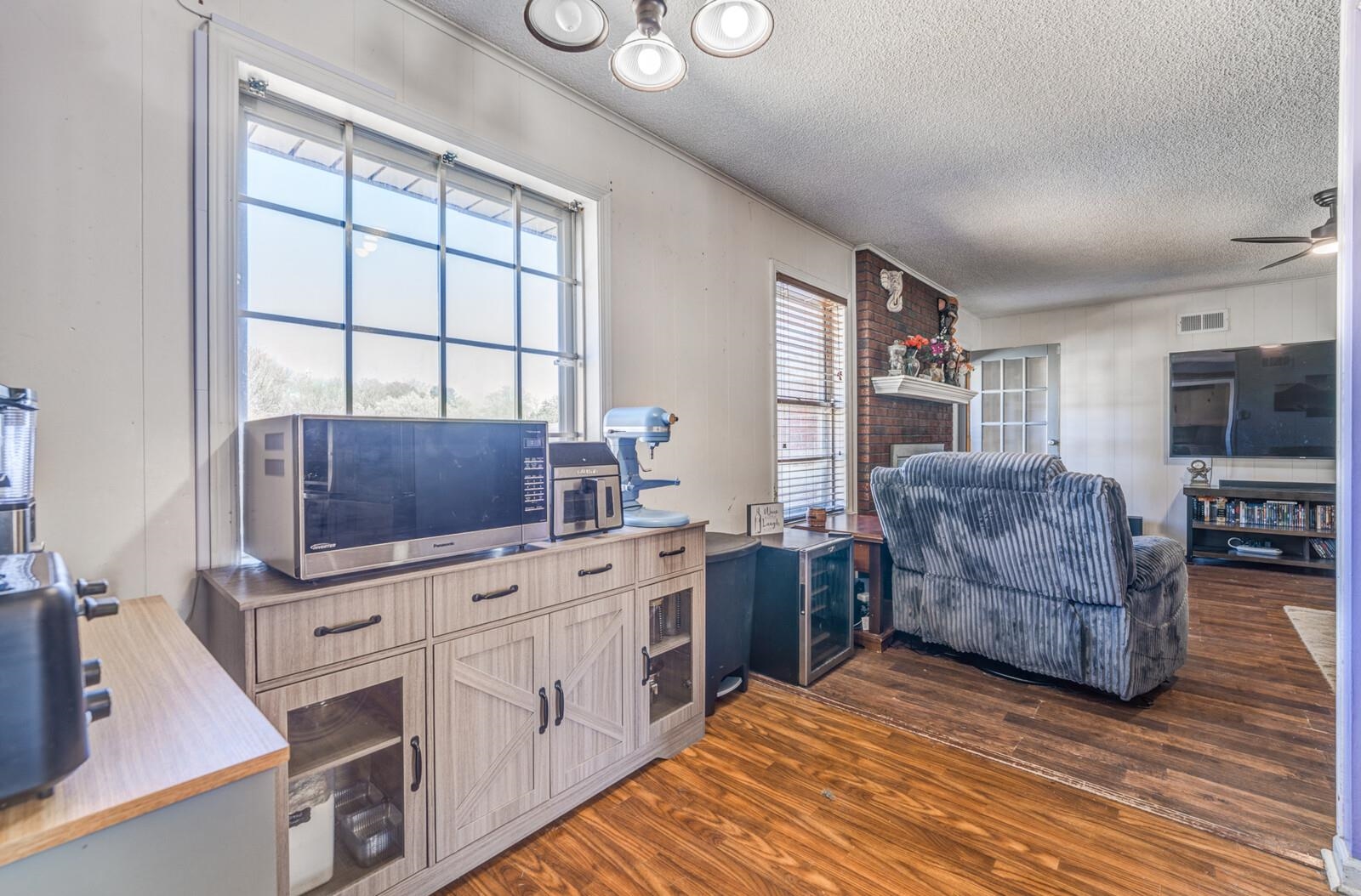 | Flooring | Part Hardwood, Part Carpet, Textured Ceiling |