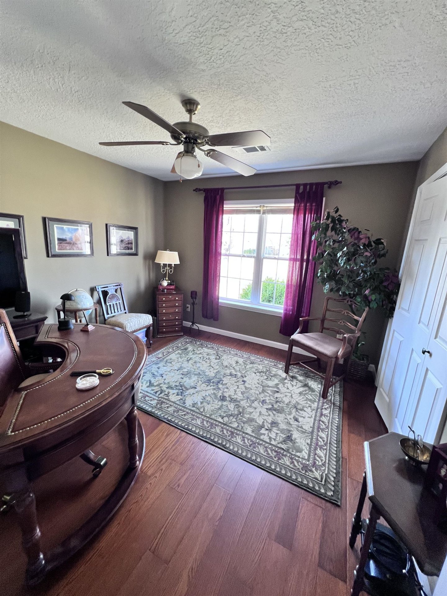 Extremely well maintained 3 bed/2 bath, with frml dining rm, brick home on a spacious corner lot with a wide-open long view, in a friendly and safe neighborhood. 3 yr old roof, 6 month old A/C, wood floors, and new carpet. Beautiful remote cntrl gas or wood fireplace, breath-taking designer ceilings, fluted woodwrk, instant HW heater, 2 car oversize garage (accomodating car and pick-up trk) opening to 12x9 shop. 450 sf shed. Must experience home to appreciate it. Never a pet. Never smoked in.