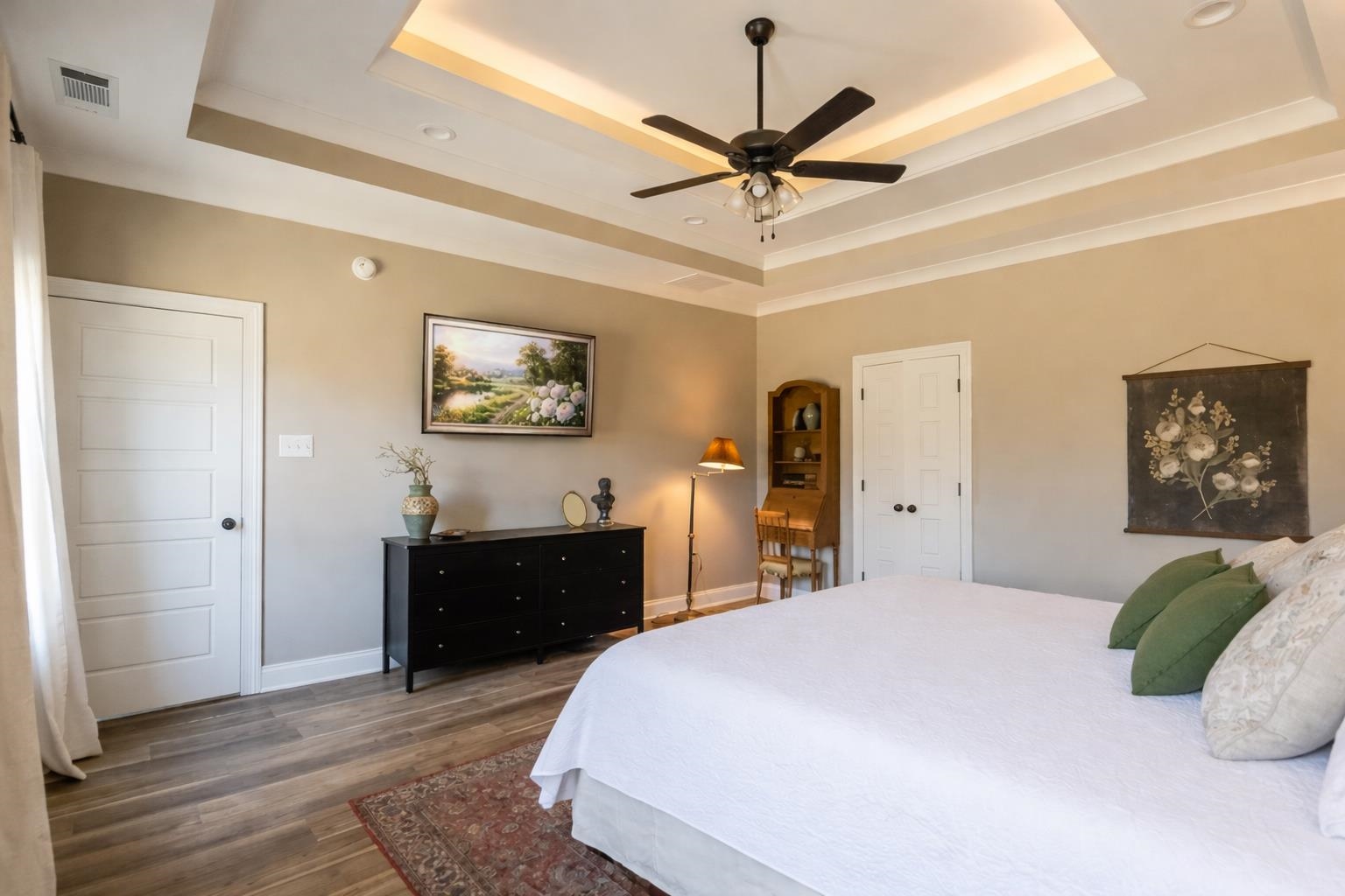 | Flooring | Hardwood Throughout, Part Hardwood, Tile, Smooth Ceiling, 9 or more Ft. Ceiling, Vaulted/Coff/Tray Ceiling |