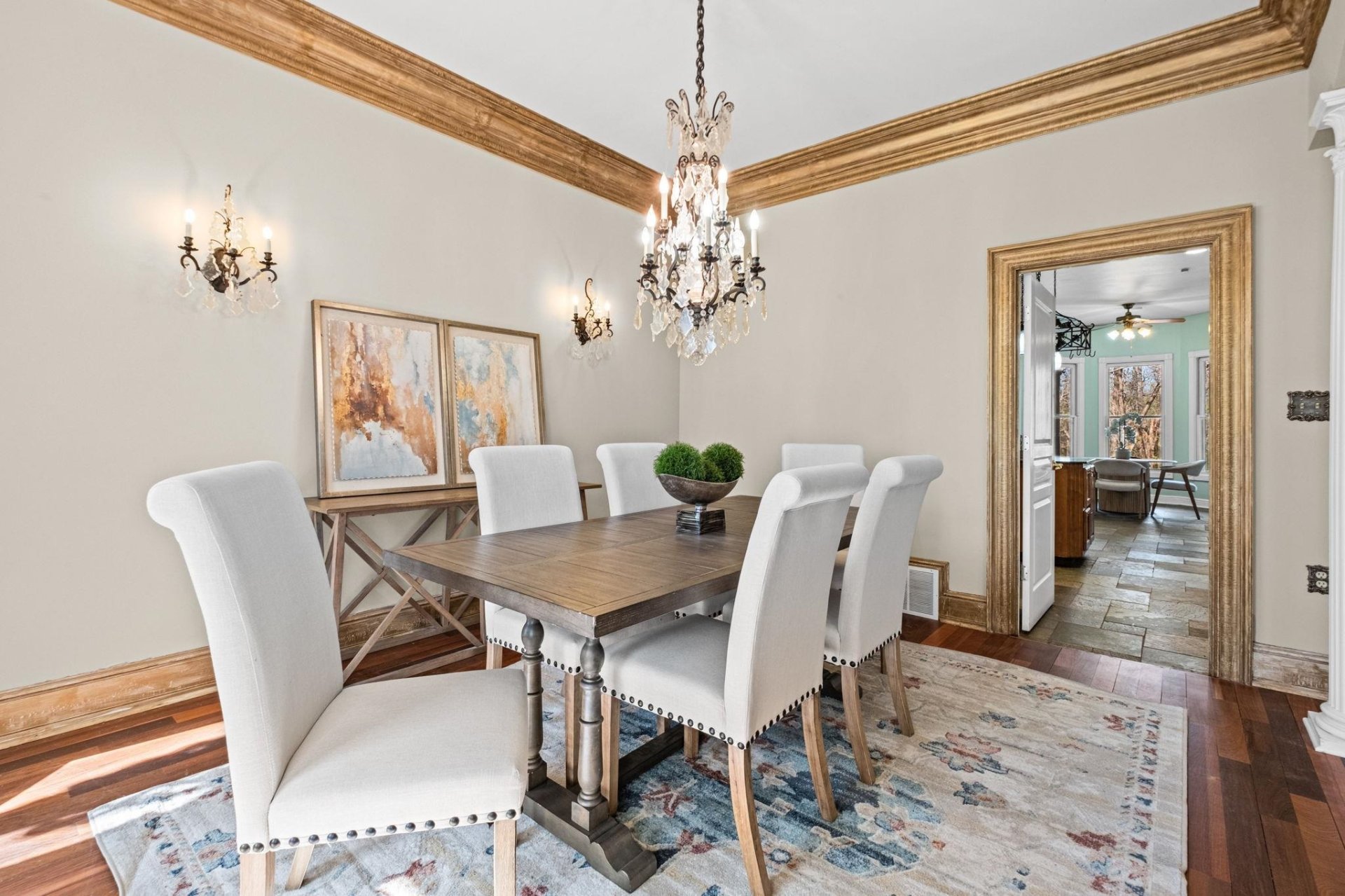 | Flooring | Hardwood Throughout, Tile, Smooth Ceiling, 9 or more Ft. Ceiling |
