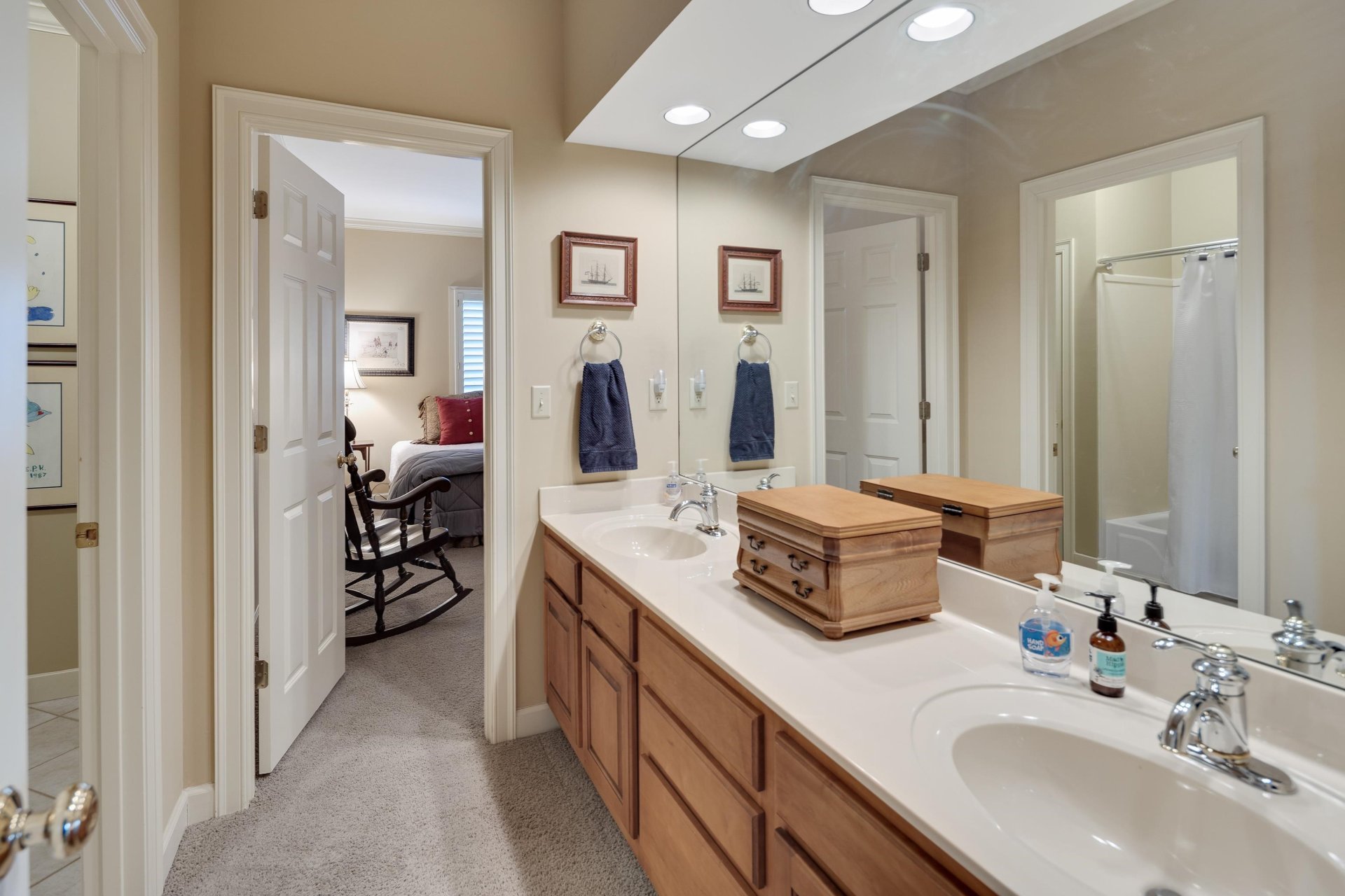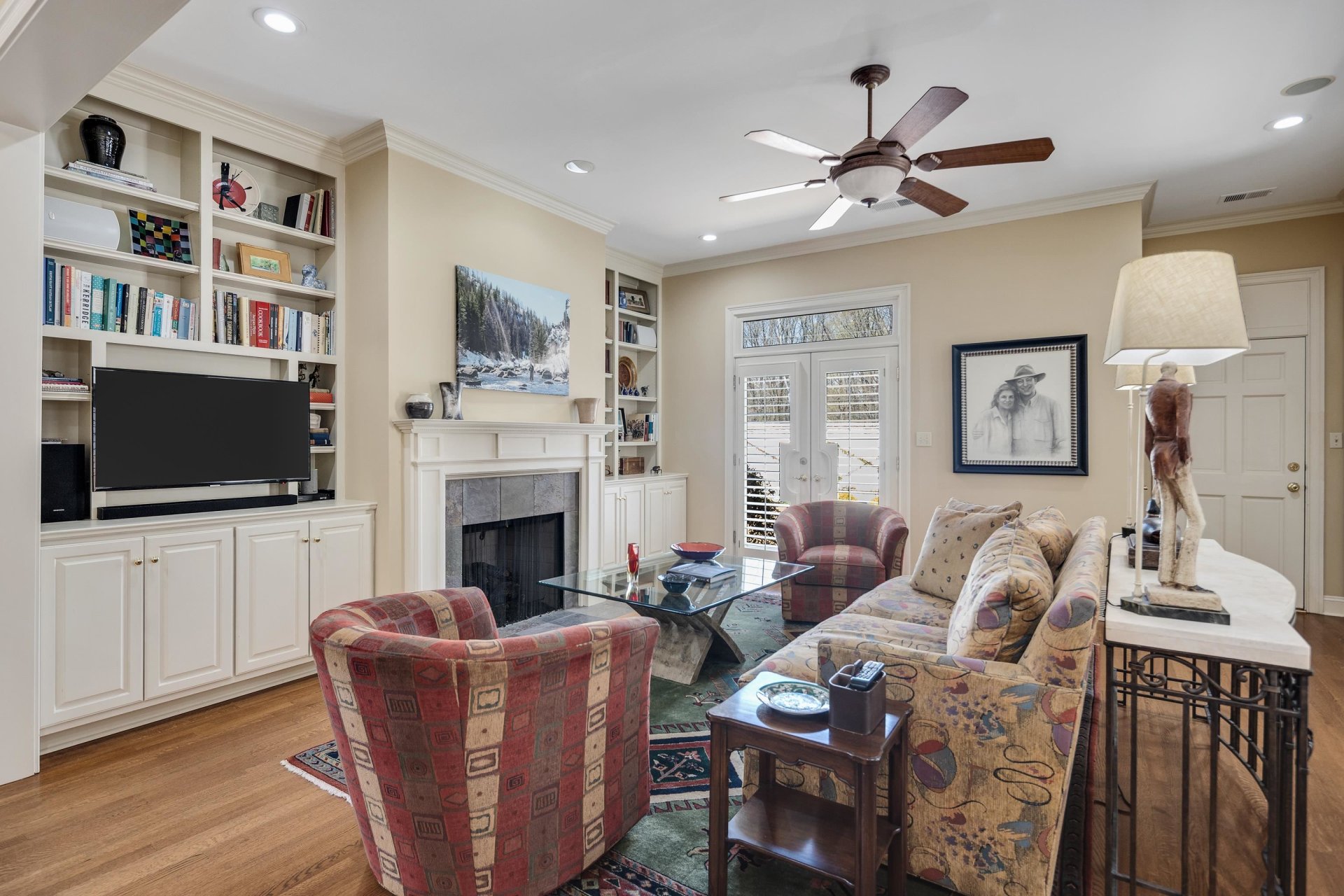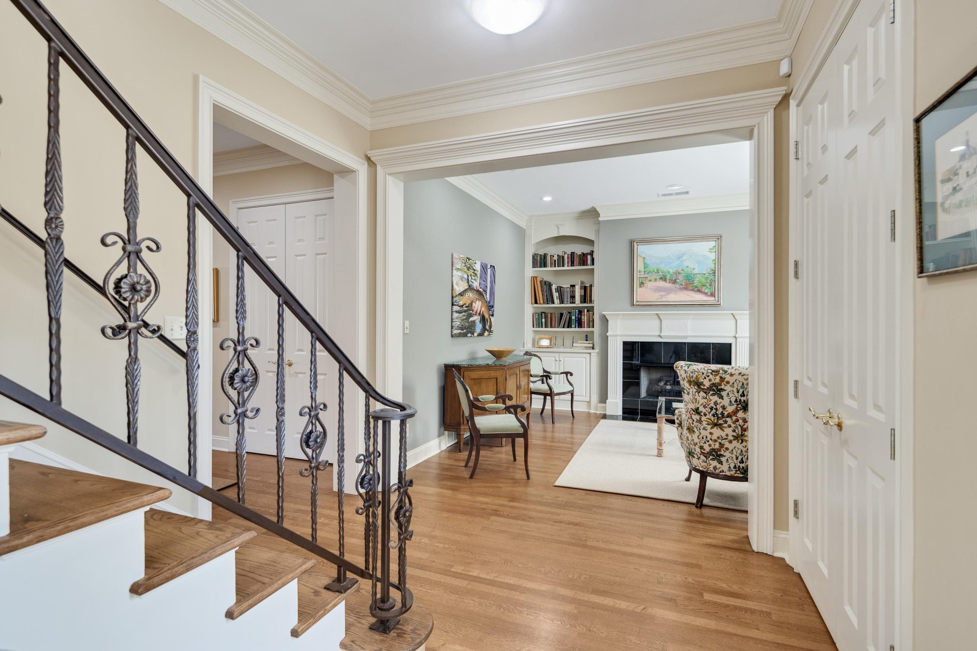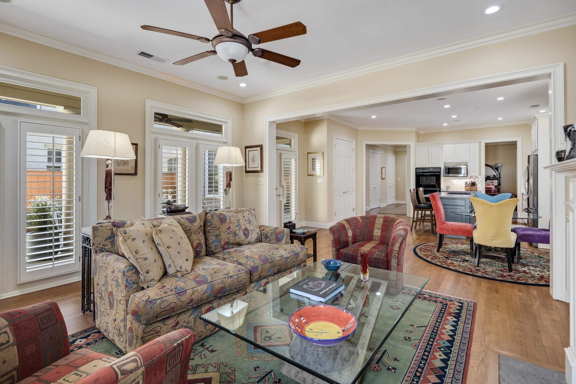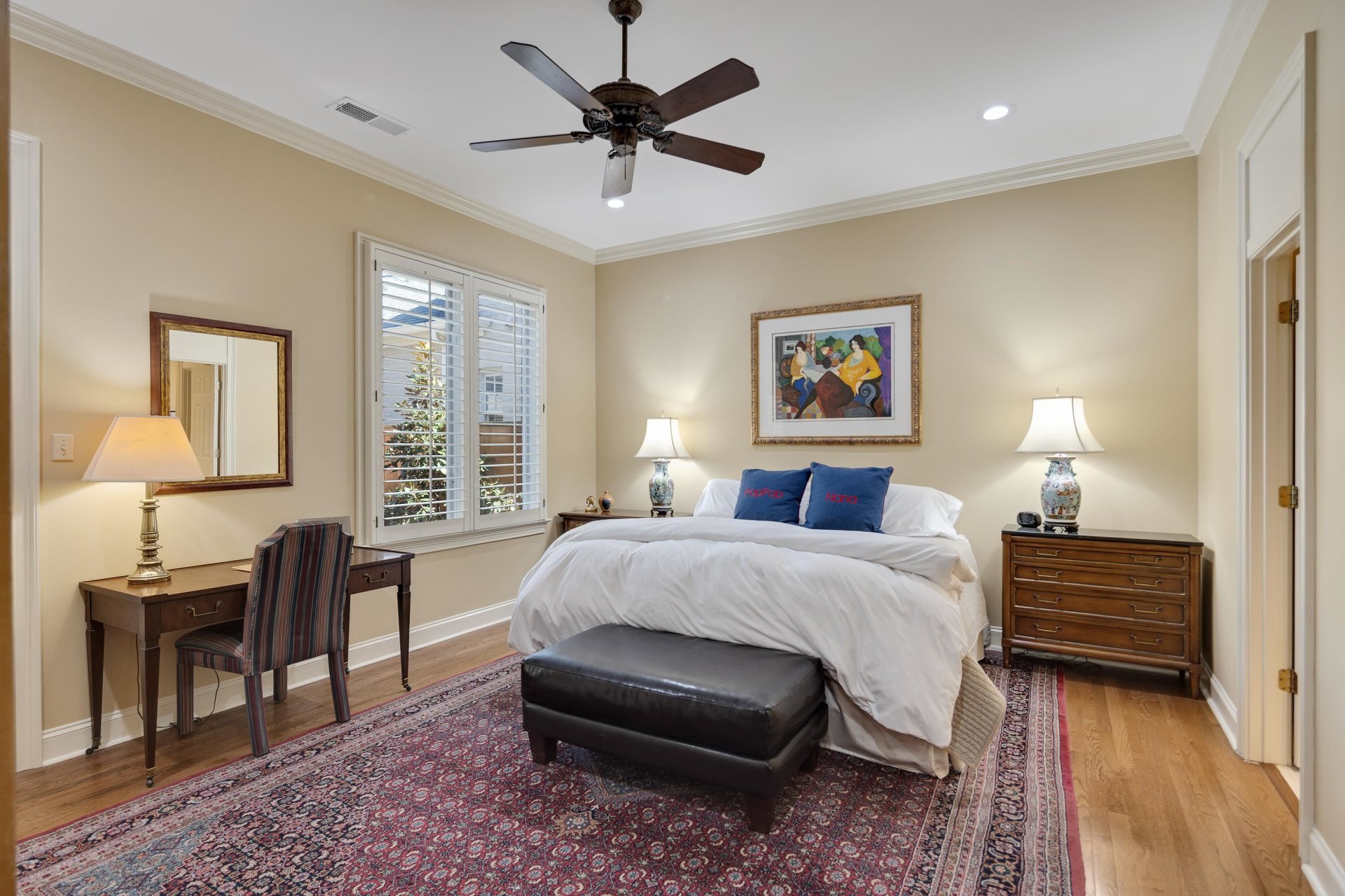 This super convenient location can be your serene retreat. Gated for privacy and security. Custom-built for the first owner in 1999, this finely crafted home has been for sale only one time previously: when these sellers purchased it. Very gently lived in! Evident throughout: quality construction, meticulous attention to detail, and loving care. Hardwood floors and plantation shutters. The handsome exterior, easy flow, and abundant natural light provide a perfect balance of elegant and casual lifestyles. The living room has bookcases and a fireplace. Like to cook? Everything you need is functional and convenient. The adjacent dining room is spacious. Also adjacent: a casual dining area and second living area, also with a fireplace. The sheltered patio is welcoming day and night. The large primary suite is complete with luxury bath and oversized closet. This is one of the larger homes in the Vineyards; upstairs are three amply sized bedrooms, two baths and lots of storage.