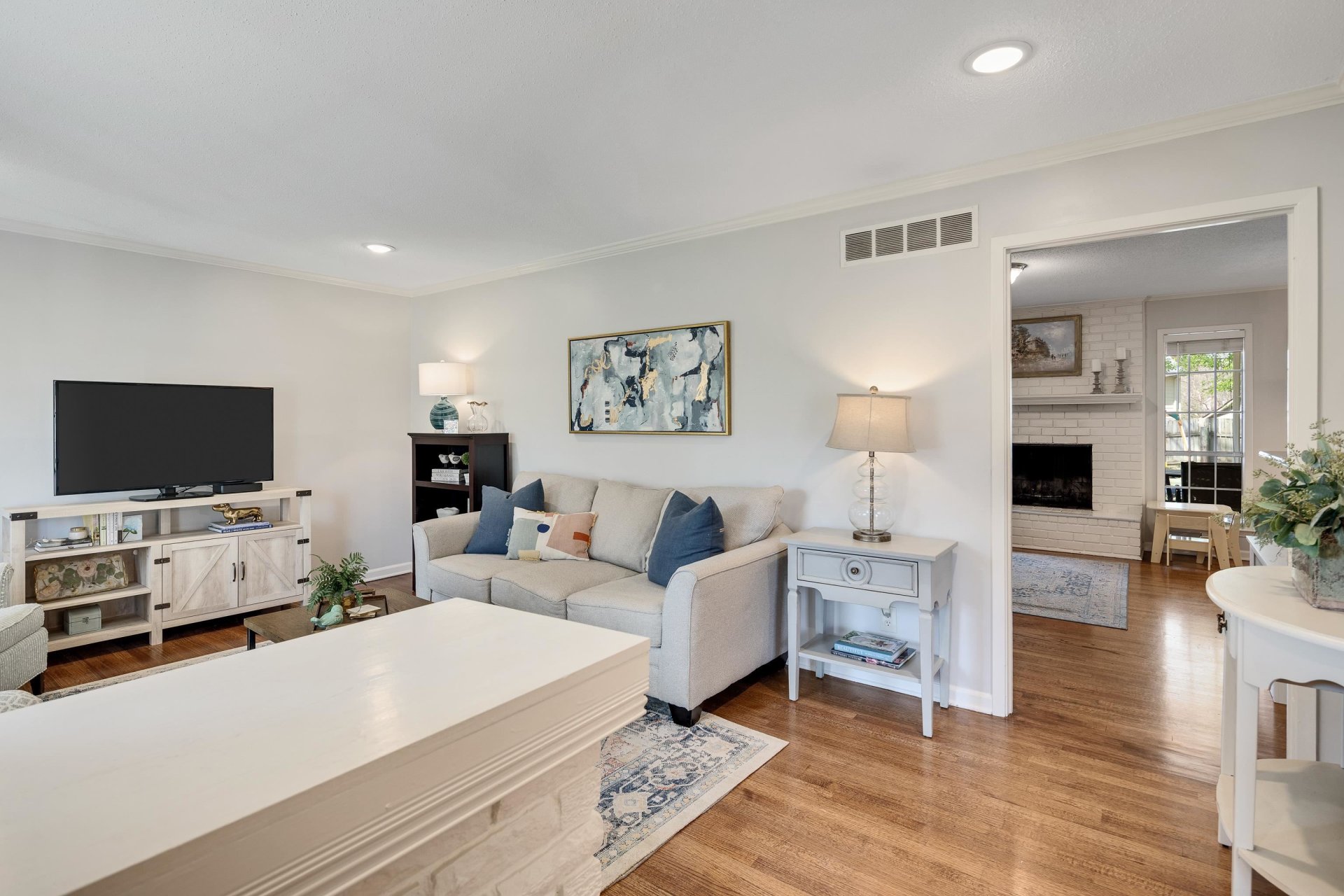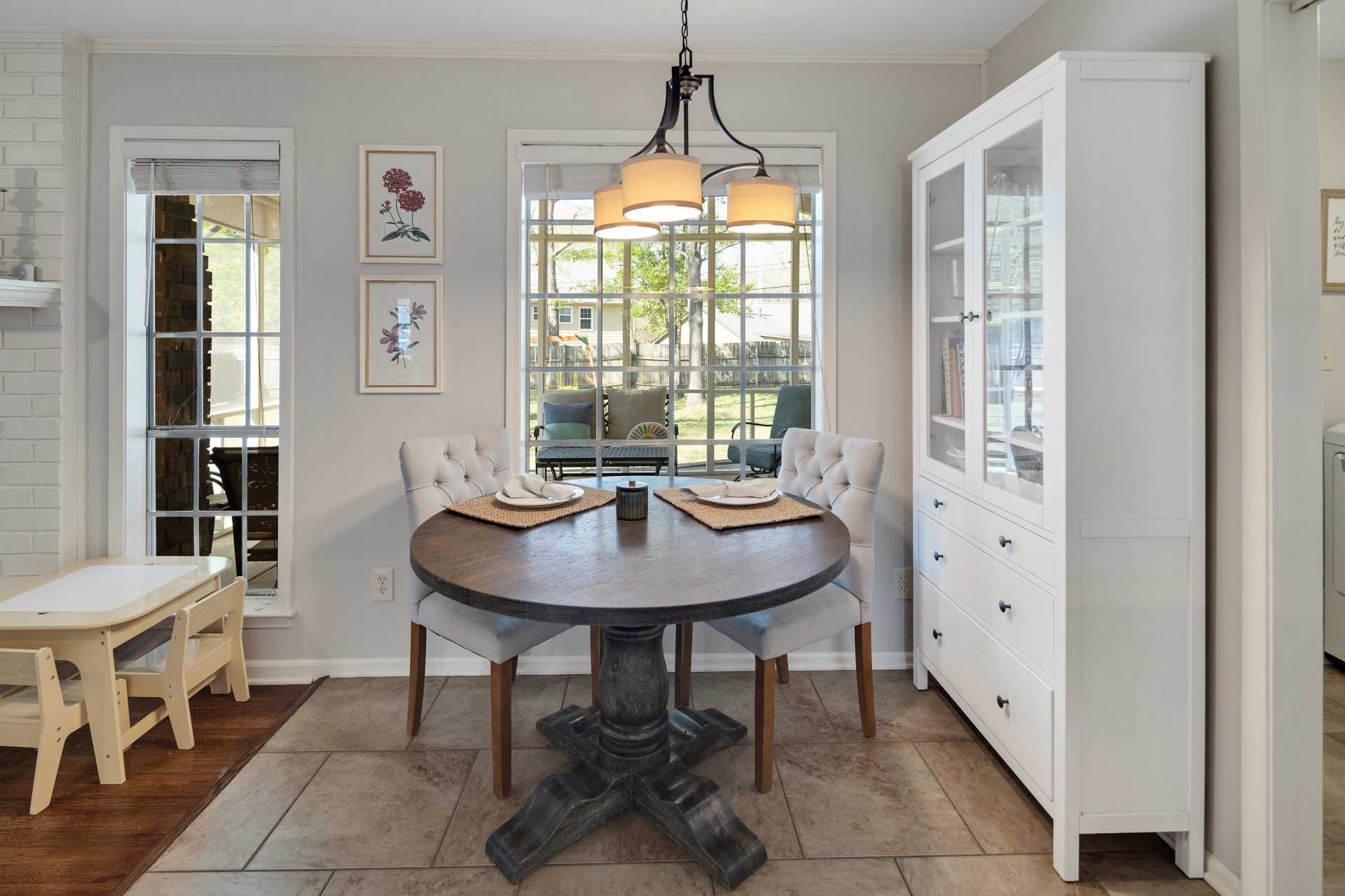 Welcome to this beautifully updated 1-story ranch home, nestled on a peaceful street with an inviting front porch and perfectly situated within easy walking distance to Howard McVay Park! Featuring 3 bedrooms and 2 full baths, this property showcases a highly desirable layout that includes a formal living room, a dedicated dining room, and a welcoming great room. You'll love the modern touches, including updated lighting throughout the entire house and freshly updated vanities in both bathrooms. Step outside to your own private oasis! The oversized covered screened patio offers incredible outdoor living space, overlooking a good-sized backyard with plenty of room to play or host weekend barbecues. Offering true single-story convenience, this home is completely move-in ready and waiting for its next owner!