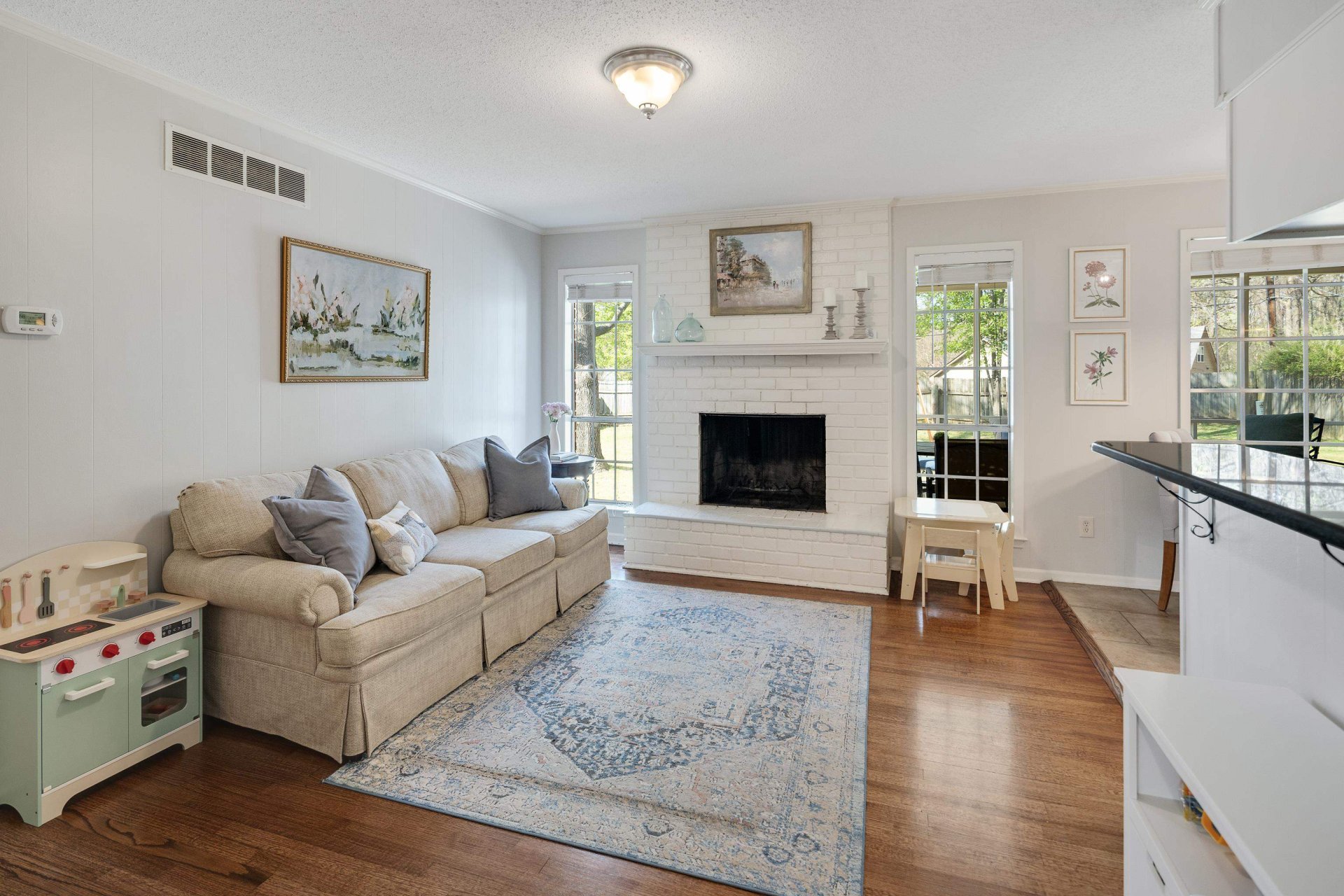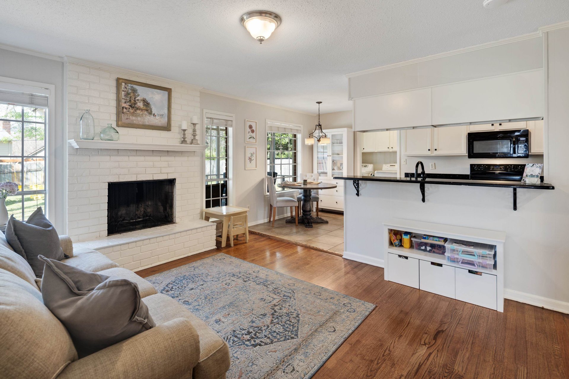 | Flooring | Hardwood Throughout, Tile, Textured Ceiling |