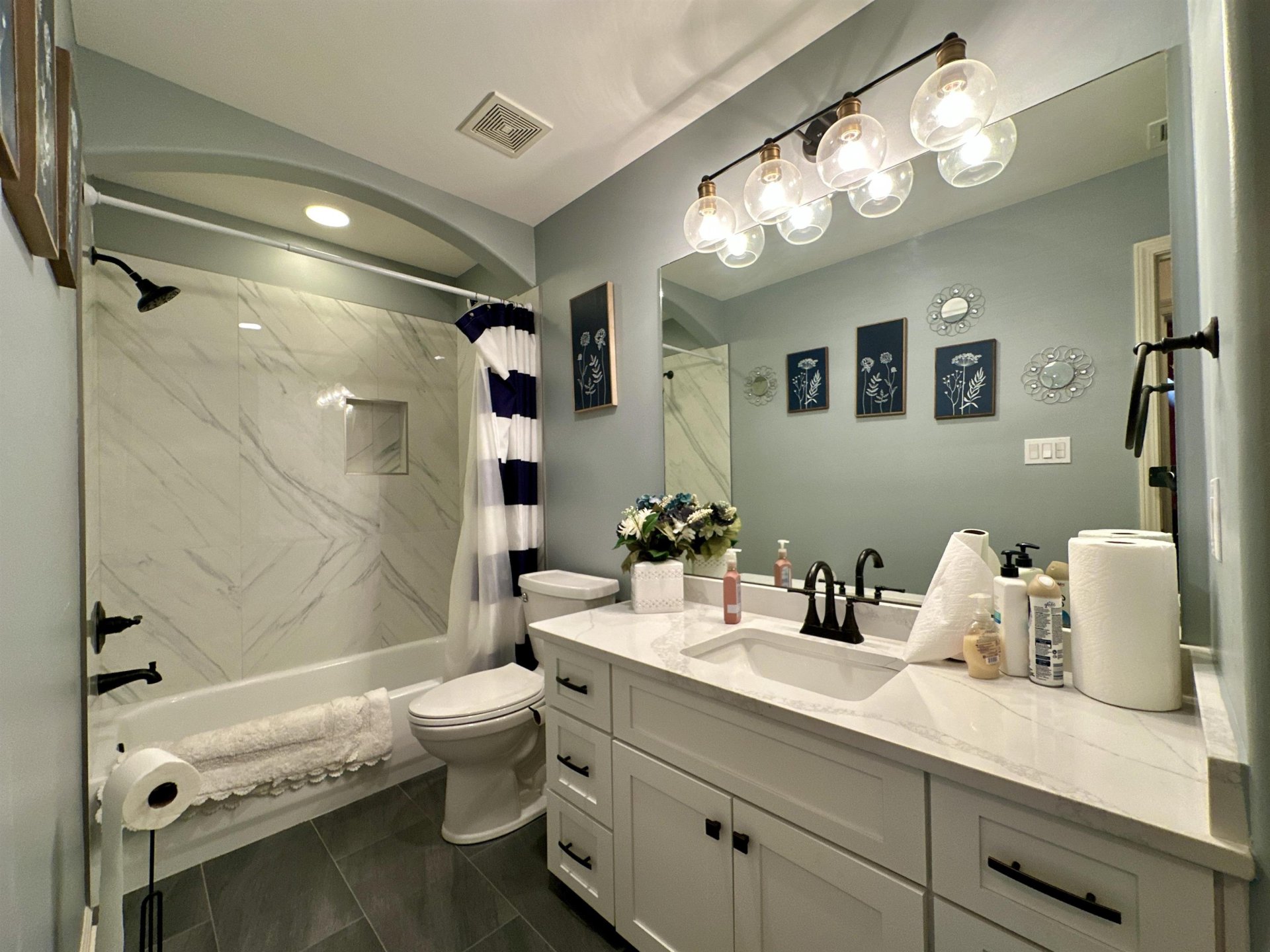 Beautifully updated 5BR/3BA home in one of Oakland’s most desirable areas! This 3,603 SF home features a spacious, open floor plan with 3 bedrooms and 2 full baths on the main level, plus a private upstairs layout with 2 additional bedrooms and a full bath—ideal for guests or flexible living space. Over $90,000 in recent updates, including fully renovated bathrooms with tile, quartz, new cabinets & fixtures, and an updated kitchen with new cabinetry, quartz countertops, backsplash, appliances, and flooring. Additional improvements include refinished hardwoods, new LVP upstairs, fresh interior paint, and updated lighting throughout. Enjoy the screened-in porch overlooking a fenced backyard with new rear property line fencing. Complete with gas cooktop, double ovens, formal dining room, and beautiful millwork. Move-in ready and located on a quiet cove just minutes from Oakland amenities.