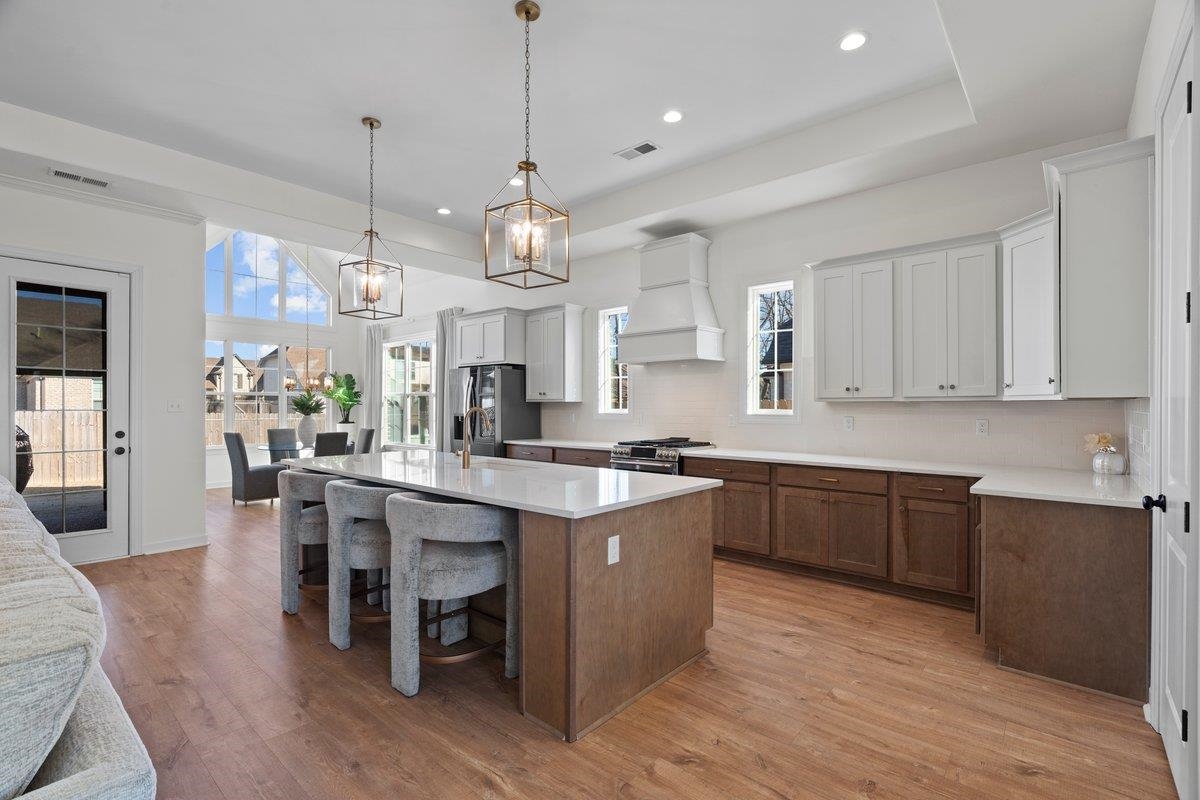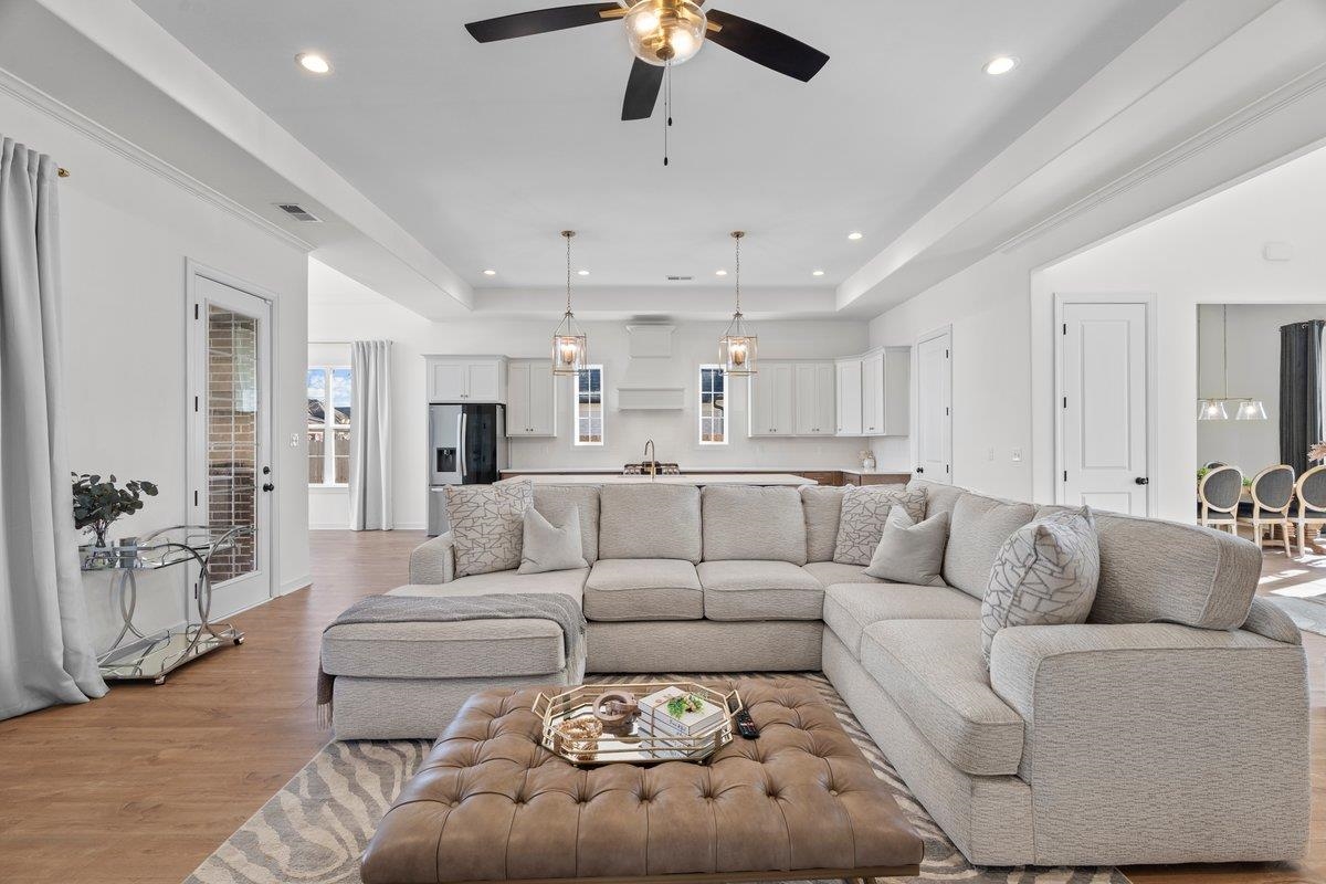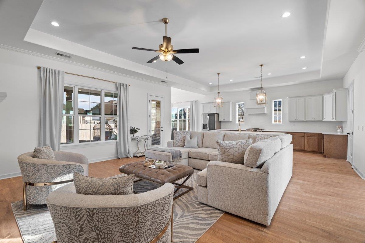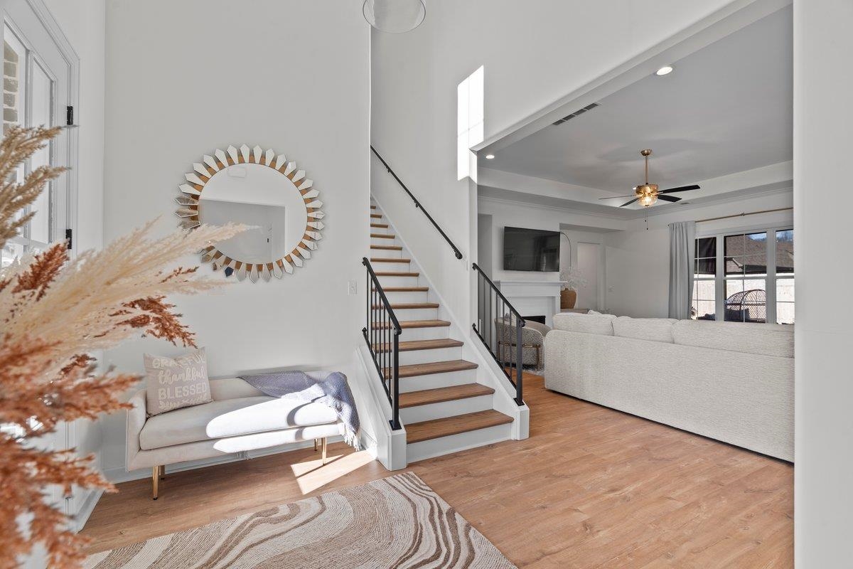 Better than new and less than 2 years old! Located in the desirable Grays Hollow community in Cordova, this stunning Abbott floor plan by Regency Homebuilders offers 3,356 square feet of beautifully designed living space. The home features 9-foot ceilings downstairs, 8-foot ceilings upstairs, and an open-concept layout ideal for both everyday living and entertaining. Upgrades include hardwood performance flooring throughout the entire first level, a custom dream closet in the primary suite, and motorized patio blinds that create the perfect setting for relaxing outdoor moments. The cedar privacy fence adds both charm and functionality, creating a warm, elevated outdoor space perfect for quiet evenings or entertaining. Don’t miss this exceptional opportunity. Owner/Agent.