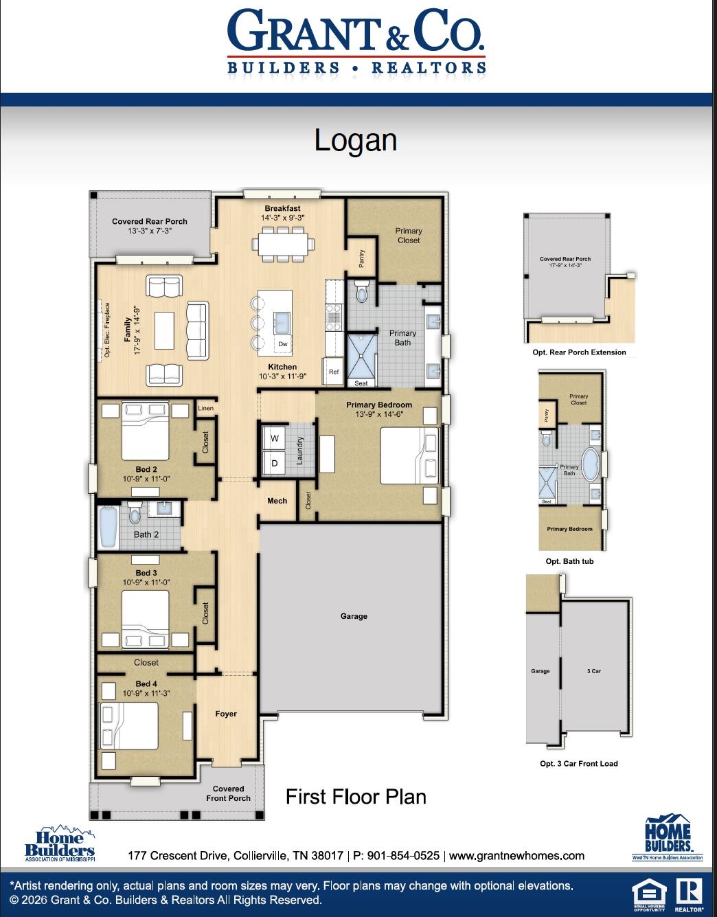 | First Floor | Den/Great Room, Kitchen, Primary Bedroom, 2nd Bedroom, 3rd Bedroom, 4th of More Bedrooms, 2 or More Baths, Laundry Room, Breakfast Room |