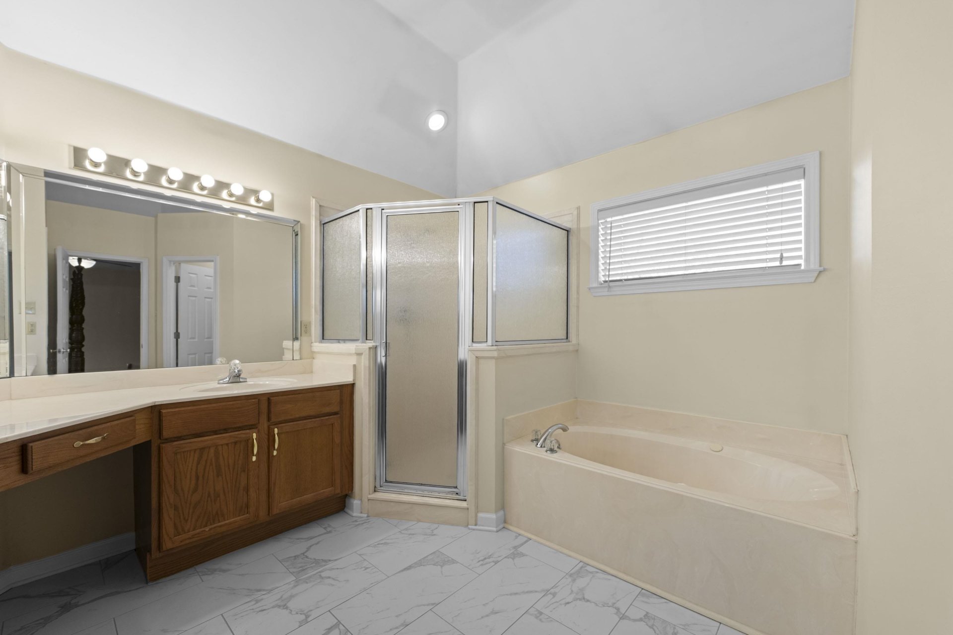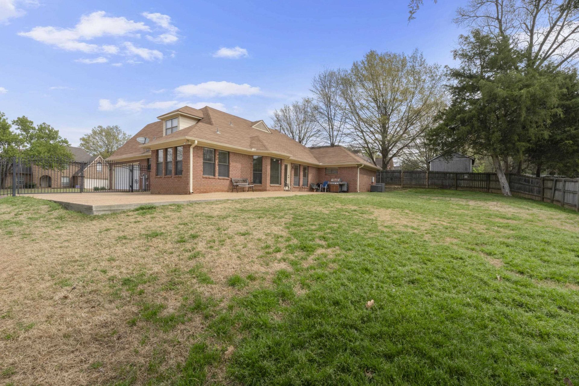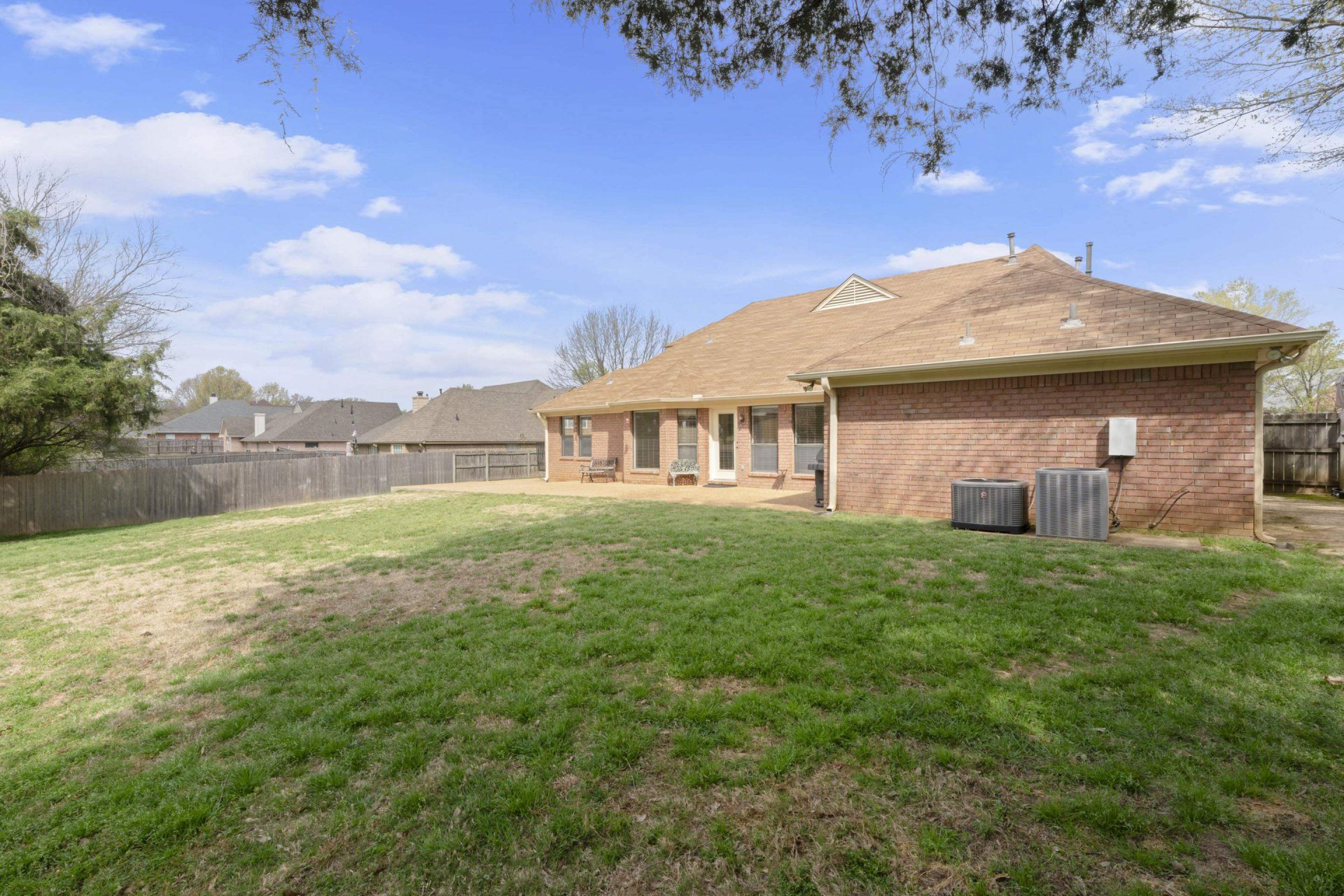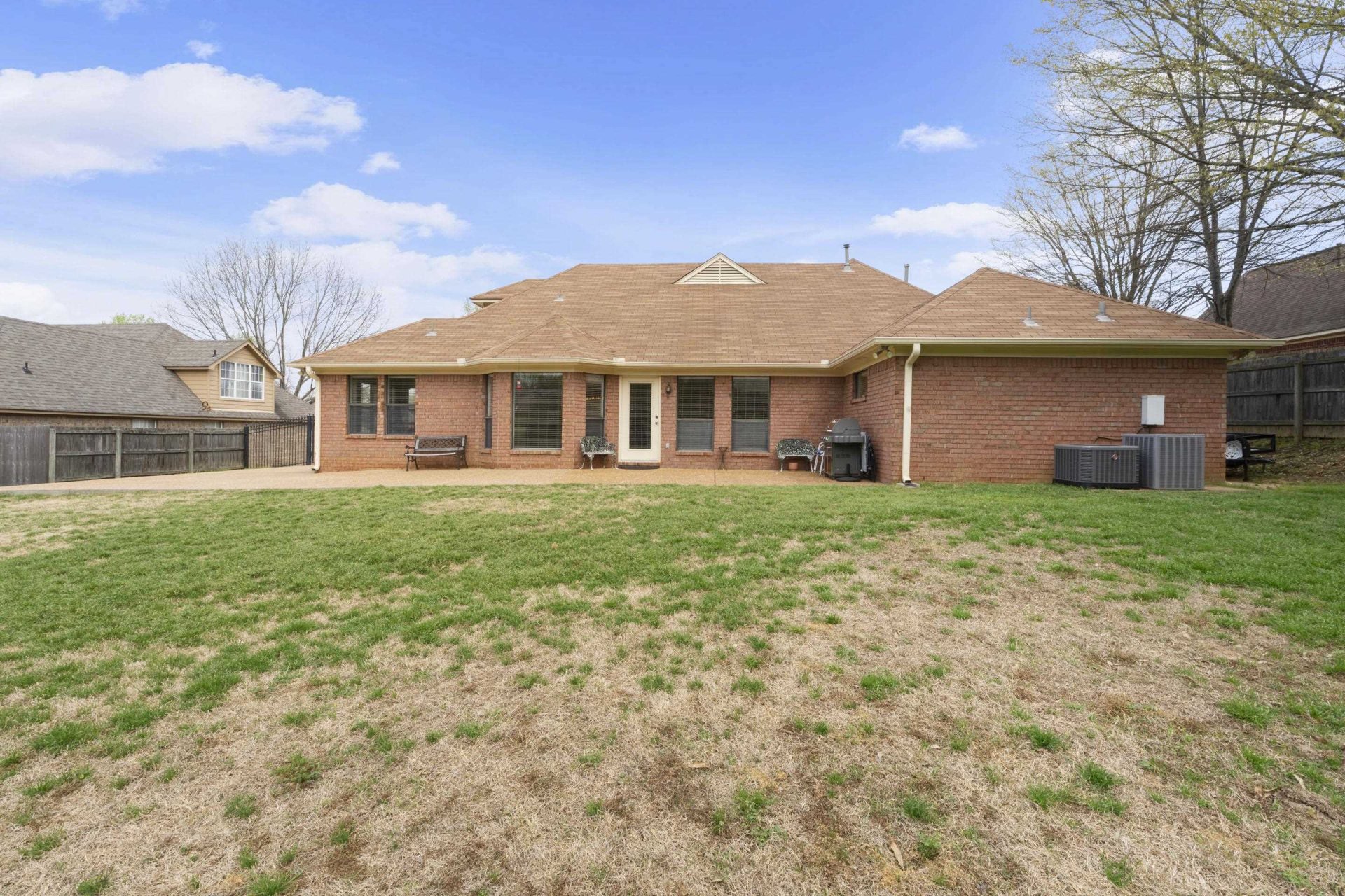 Welcome to 6767 Beagle Run Lane in Bartlett, TN—a home that just feels right the moment you walk in. The gracious entry opens to beautiful hardwood floors & smooth, high ceilings that make the space feel bright & inviting. The layout is all on one level, making everyday living easy & comfortable. The great room is the heart of the home, with a cozy fireplace & tons of windows that bring in natural light & overlook the fenced backyard. It flows perfectly into a sitting area & a formal dining room, giving you space to relax or entertain. The eat-in kitchen offers plenty of cabinet space, a pantry & room to gather for casual meals. The primary suite is a true retreat with a spacious layout, dual sink vanity with a makeup area, walk-in shower & whirlpool tub. You’ll also love the dedicated laundry room with cabinets & the huge floored attic for extra storage. Step outside to a large backyard with a patio that’s perfect for BBQs. Located in a desirable area with top-rated Bartlett schools.
