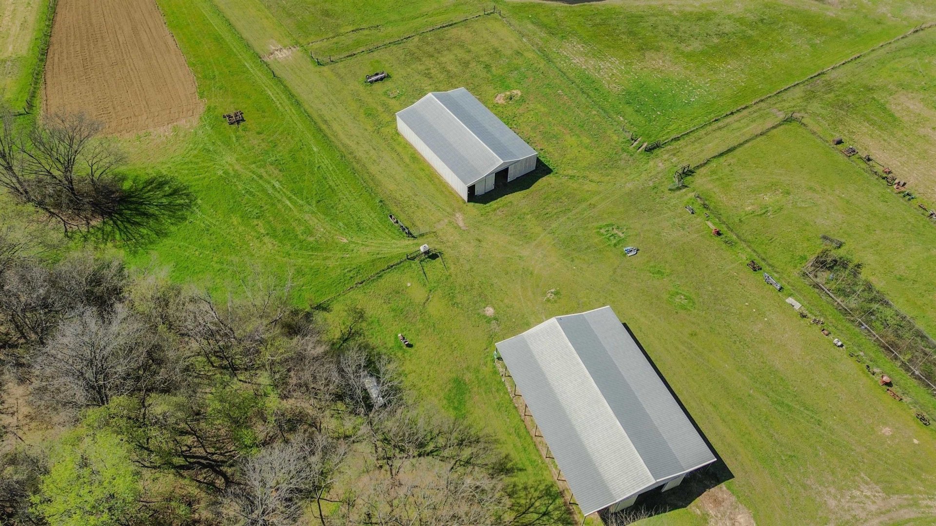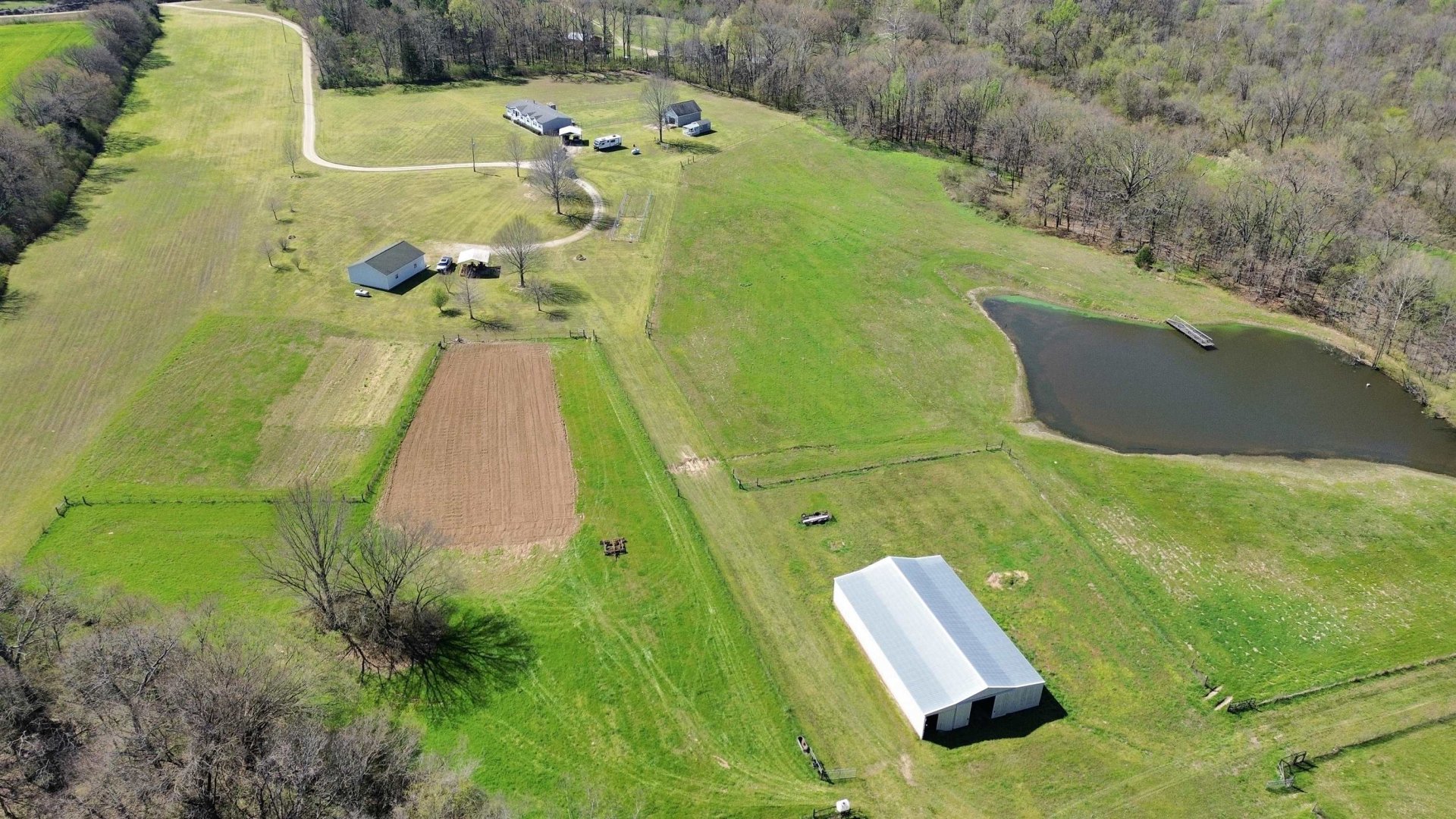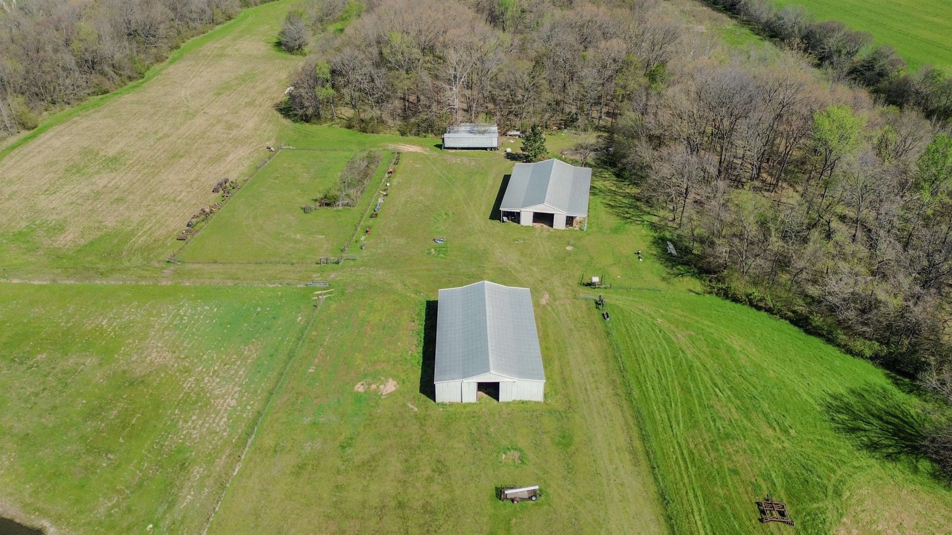 This exceptional 152.34-acre farm consists of three adjoining tracts and includes approximately 48 acres of income-producing cropland. The remaining acreage is well maintained with quality pasture, established fencing, maintained trails, ponds, creeks, wooded areas, and a blend of rolling hills and bottom ground offering both functionality and versatility. The property extends approximately 6,600 feet in depth (1.2 miles), providing a high level of privacy and ample usable space for a variety of uses, including livestock, recreation, hunting, and agriculture. Additional improvements include dog runs and training pens, multiple barns, sheds, workshops, and access to fiber internet. Two homes are located on the property, making it ideal for a family compound, guest accommodations, or potential rental income. There is also ample space to build a primary residence tailored to your vision.